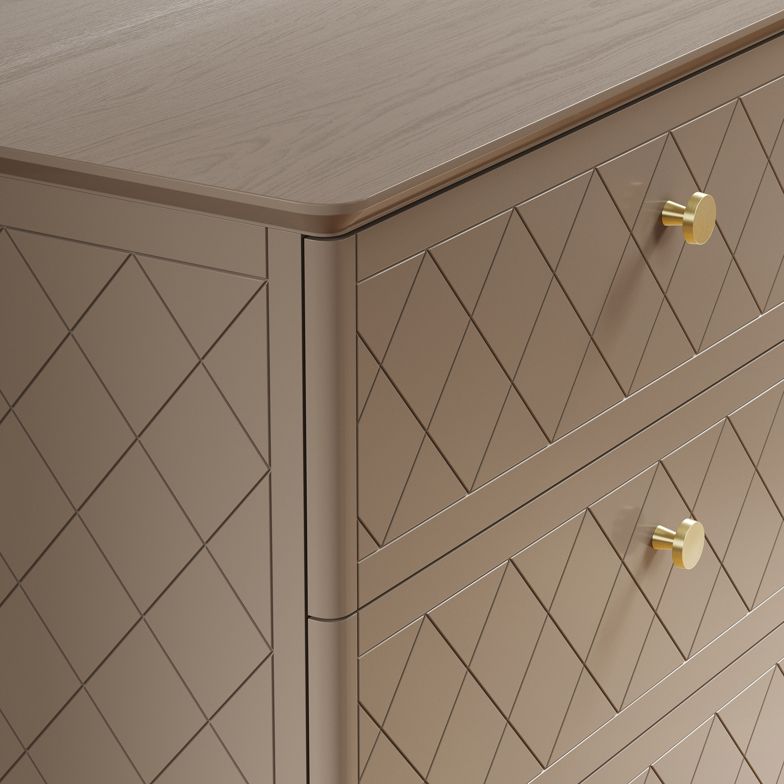 Шесть вместительных ящиков создают продуманную систему хранения. Усиленные каркасы выдерживают до 25 кг, а доводчики Hettich обеспечивают плавное закрывание. Регулировка фасадов гарантирует безупречное совпадение узора гравировки.