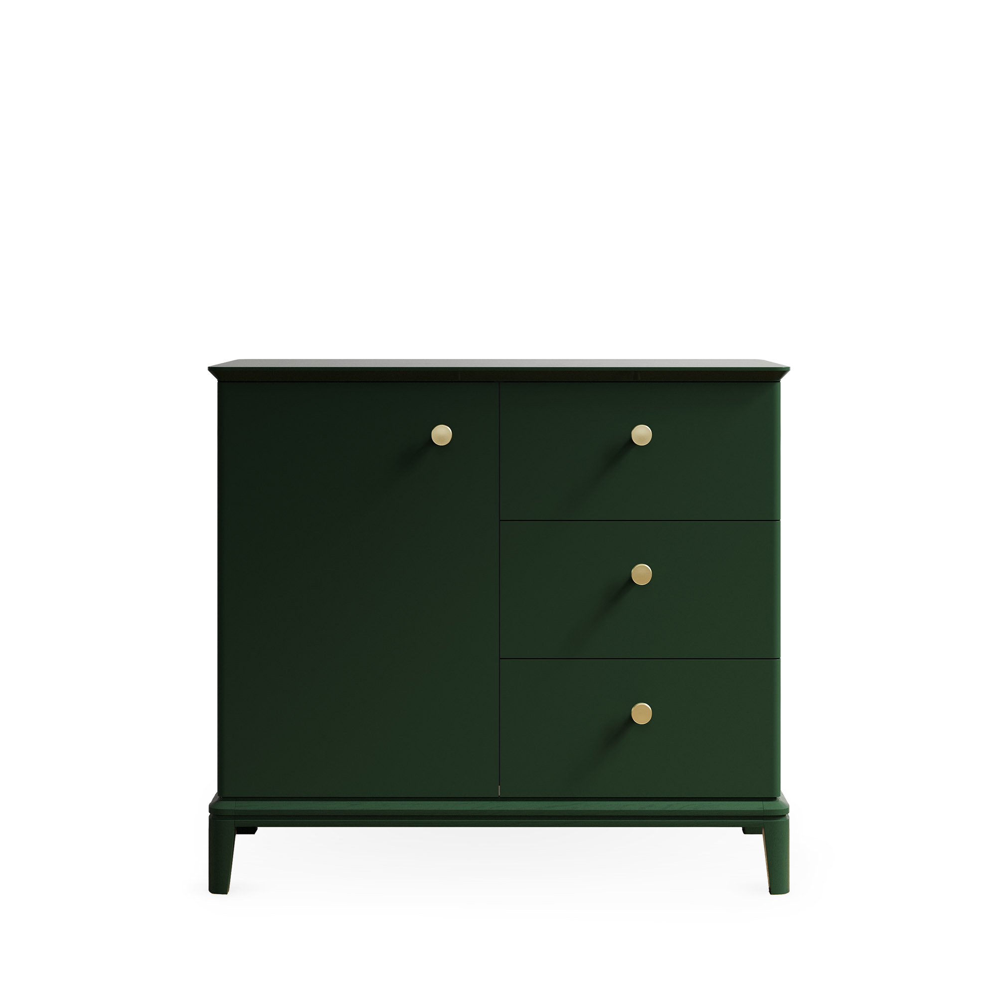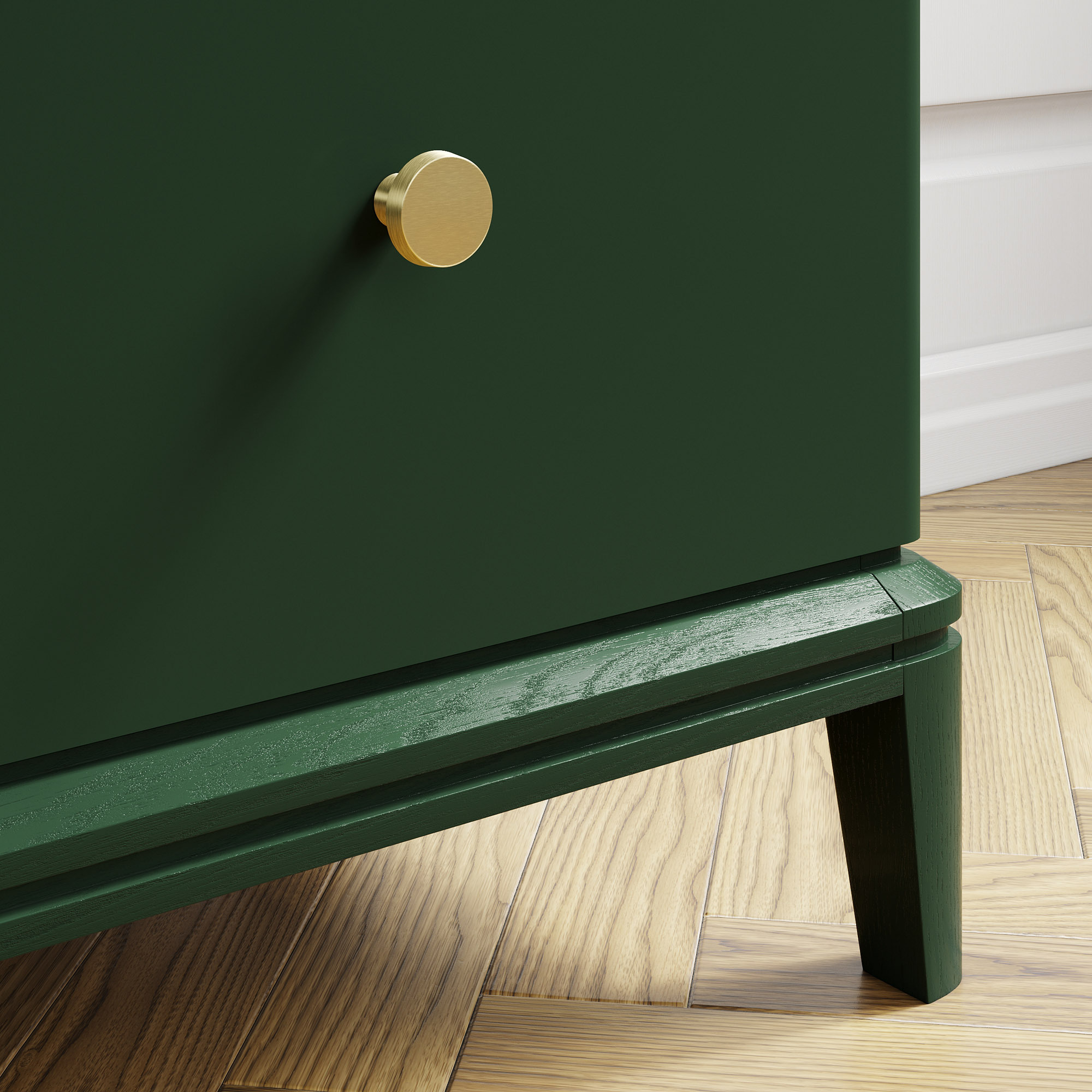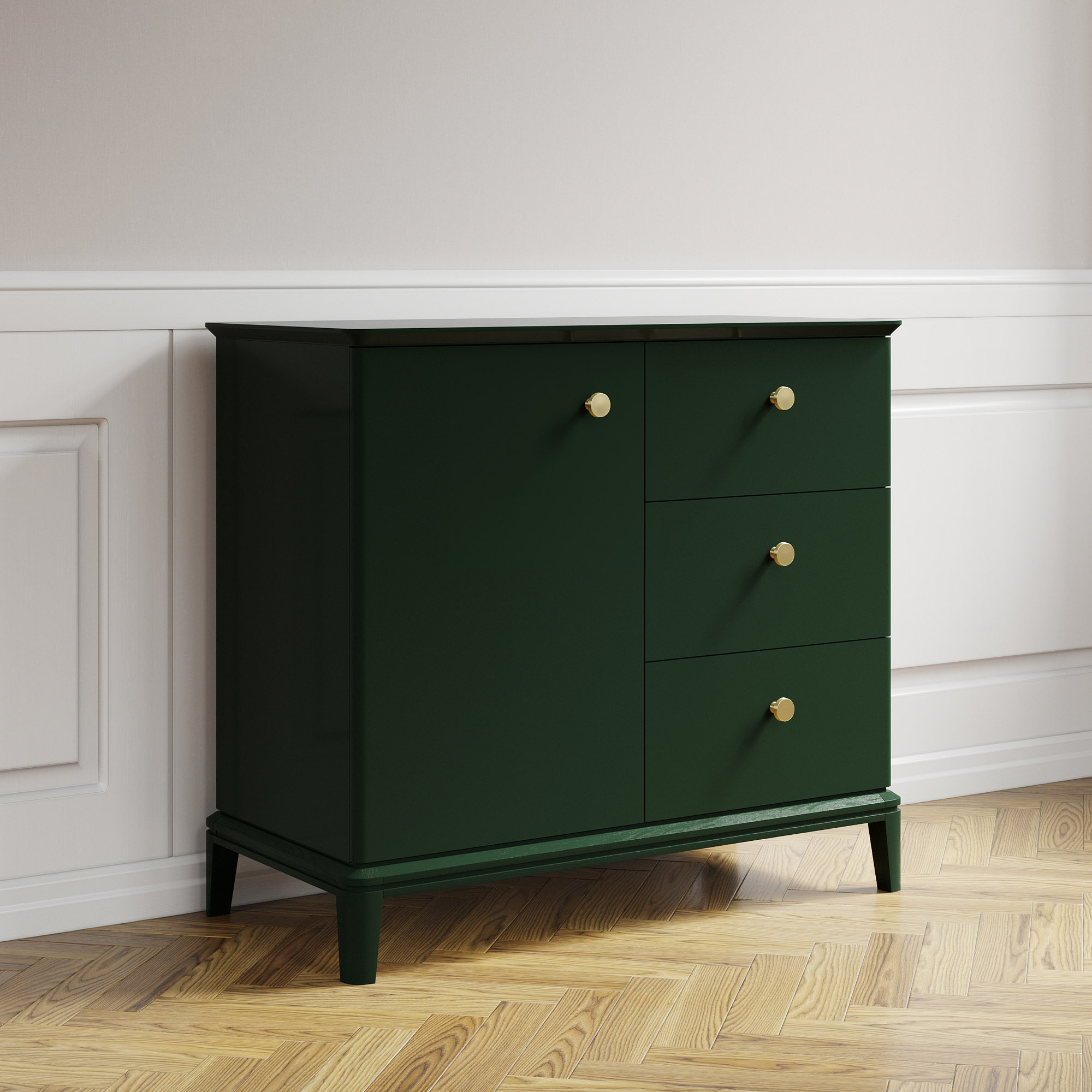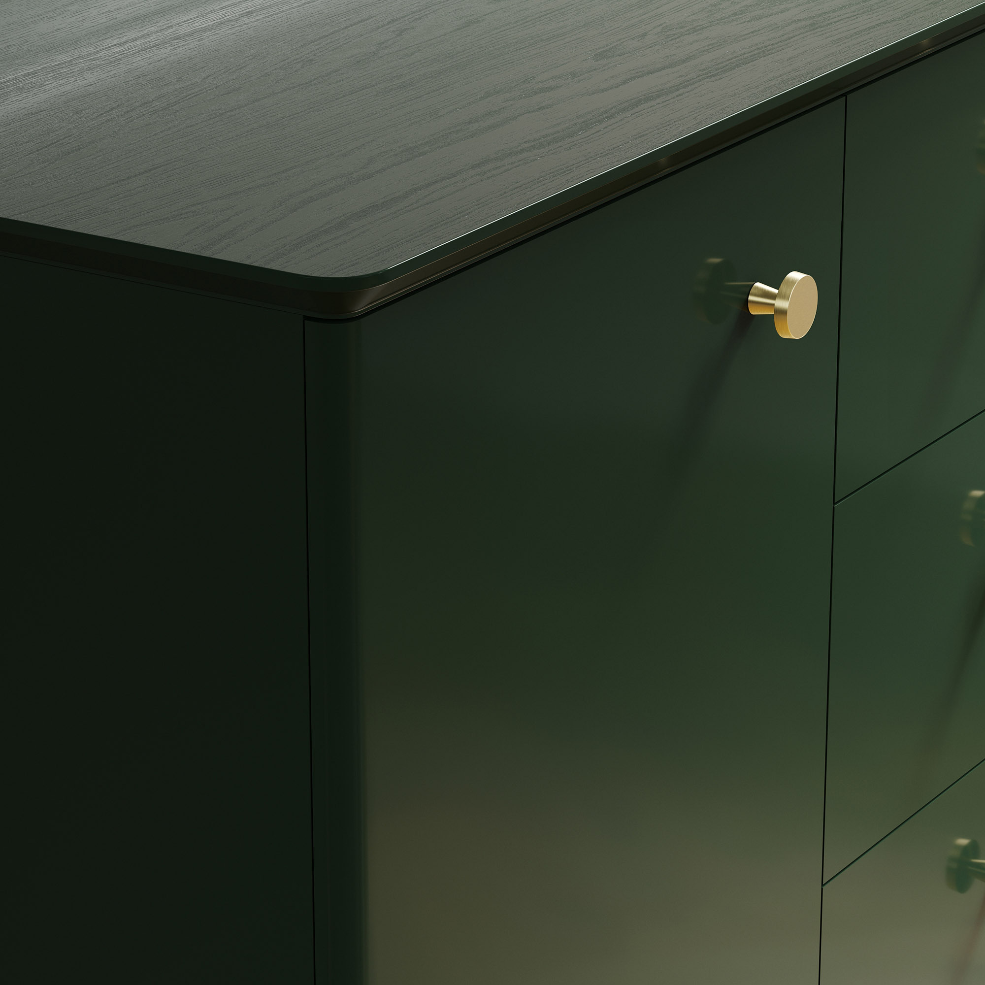 Вдохновленный ар-деко и северным модерном, этот комод сочетает плавные очертания, геометрические орнаменты и строгую элегантность современной классики. Многофункциональная конструкция с тремя ящиками и скрытой секцией с полками позволяет хранить множество вещей, не загромождая пространство. Утонченную изысканность дизайну придают ступенчатая фрезеровка столешницы и фасады, украшенные гравировкой.