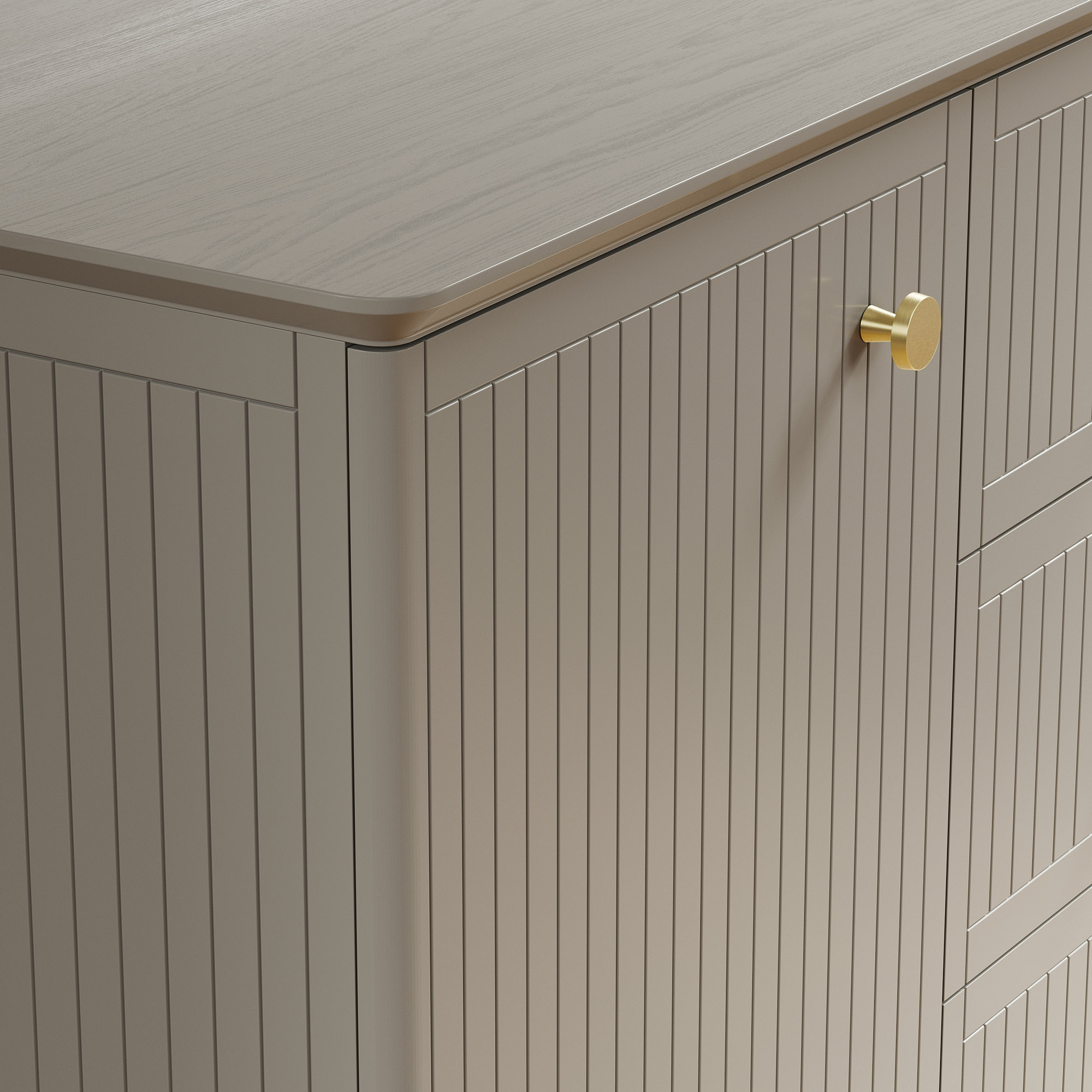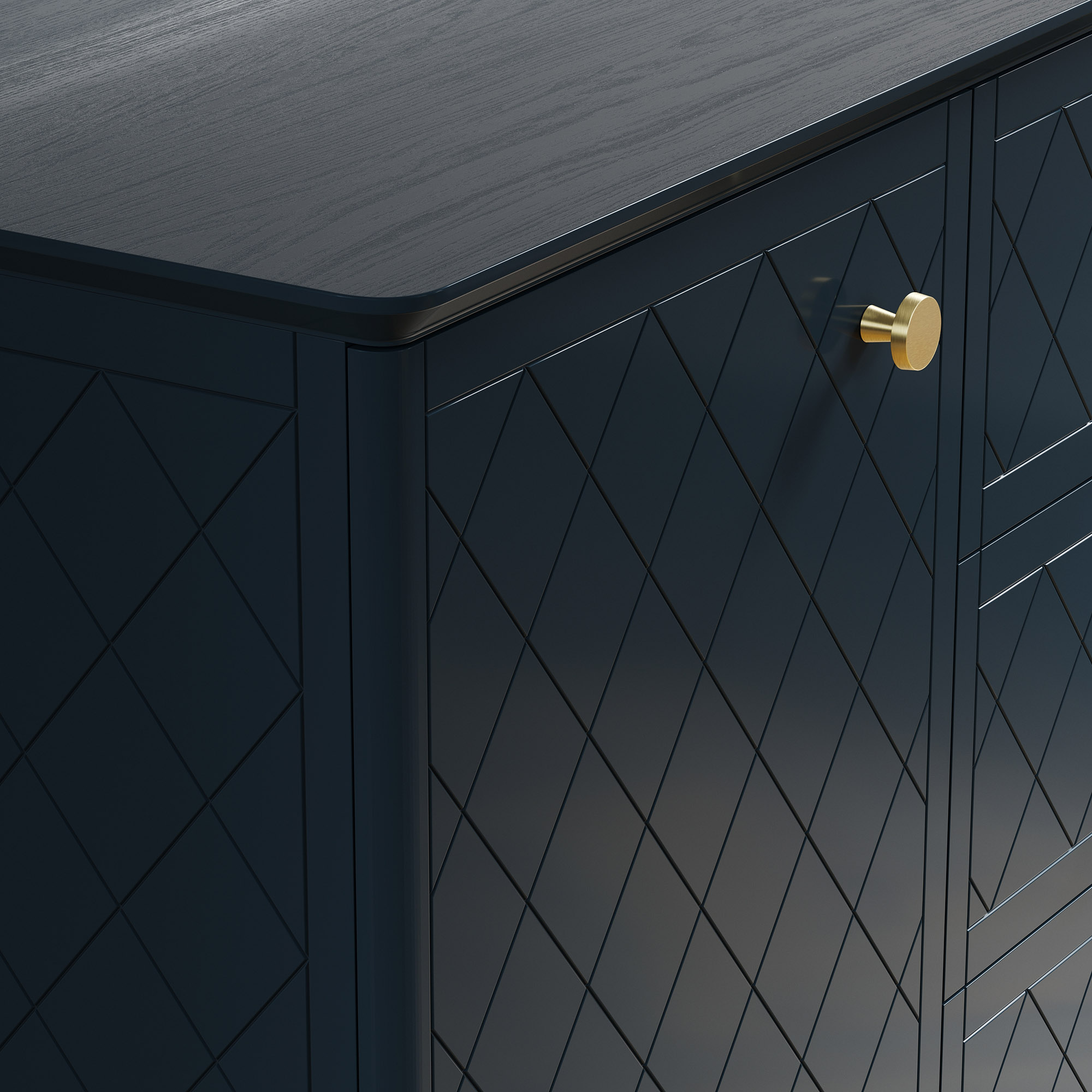 Вдохновленный ар-деко и северным модерном, этот комод воплощает лучшие черты современной классики. Плавные очертания, геометрические орнаменты и сложный декор создают выразительный образ без намека на китч. Модель оснащена тремя вместительными ящиками и секциями с полками, скрытыми за фасадами с гравировкой. Утонченную изысканность подчеркивают ступенчатая фрезеровка столешницы и тонированное основание из массива дуба.
