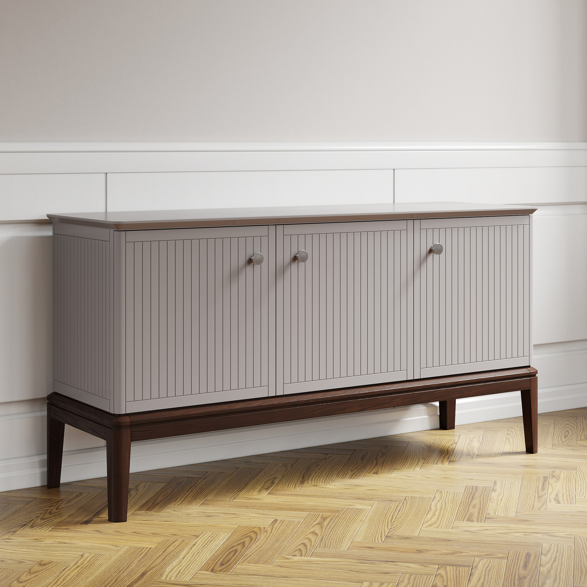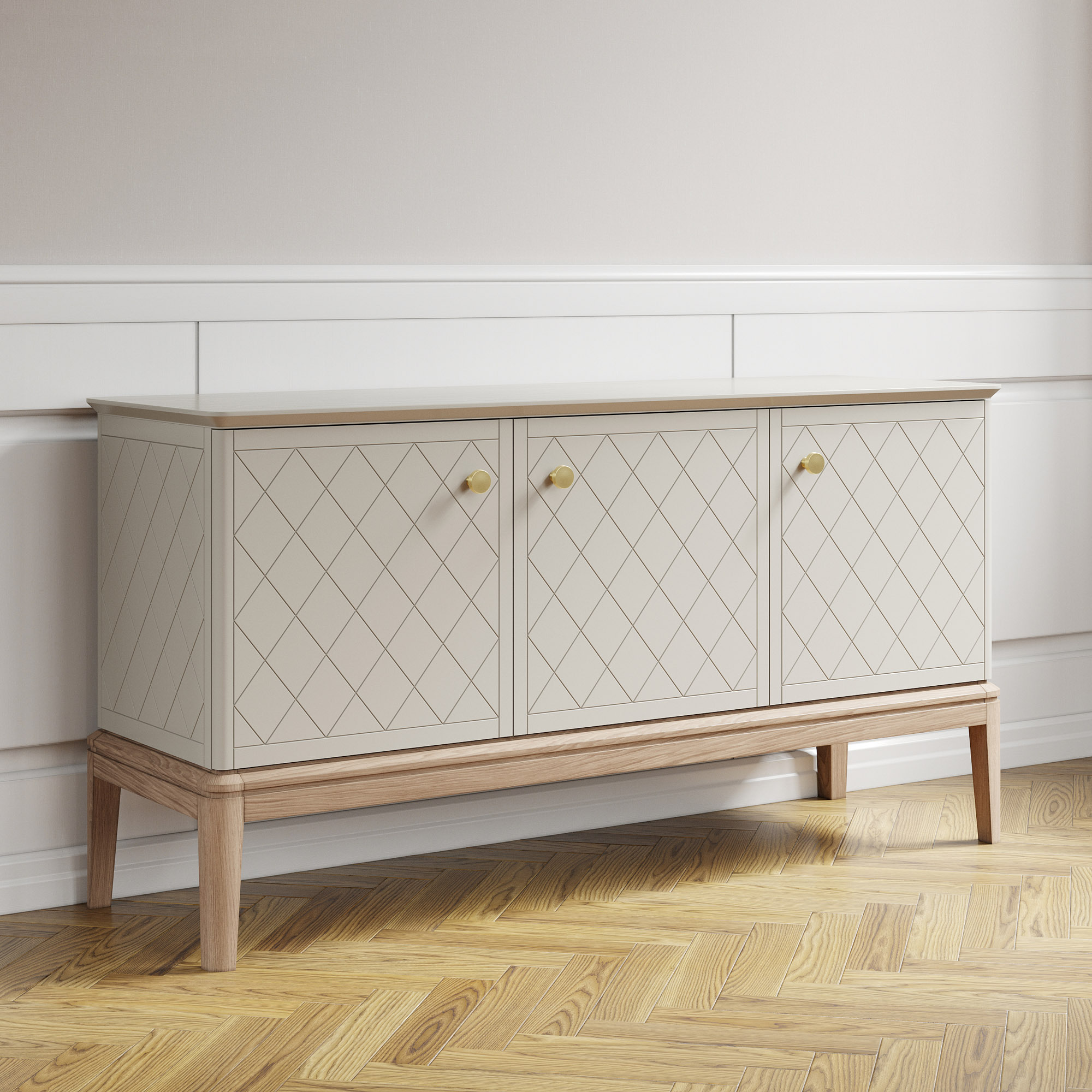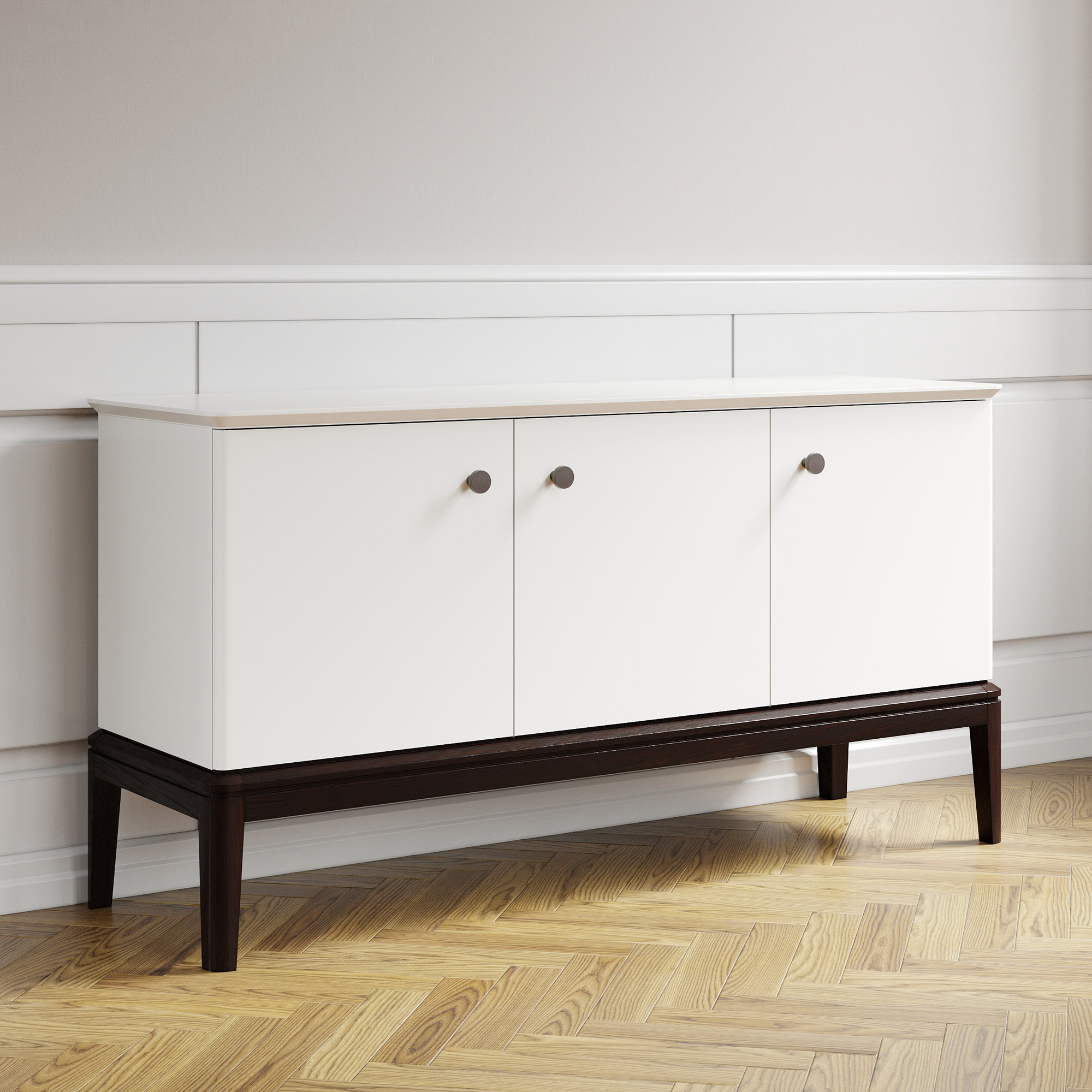 Вдохновленный ар-деко и северным модерном, этот комод воплощает лучшие черты современной классики. Плавные очертания, геометрические орнаменты и сложный декор создают выразительный образ без намека на китч. Модель оснащена тремя секциями с дверцами и полками — для организованного хранения всех ваших вещей. Утонченную изысканность подчеркивают ступенчатая фрезеровка столешницы и тонированное основание из массива дуба.