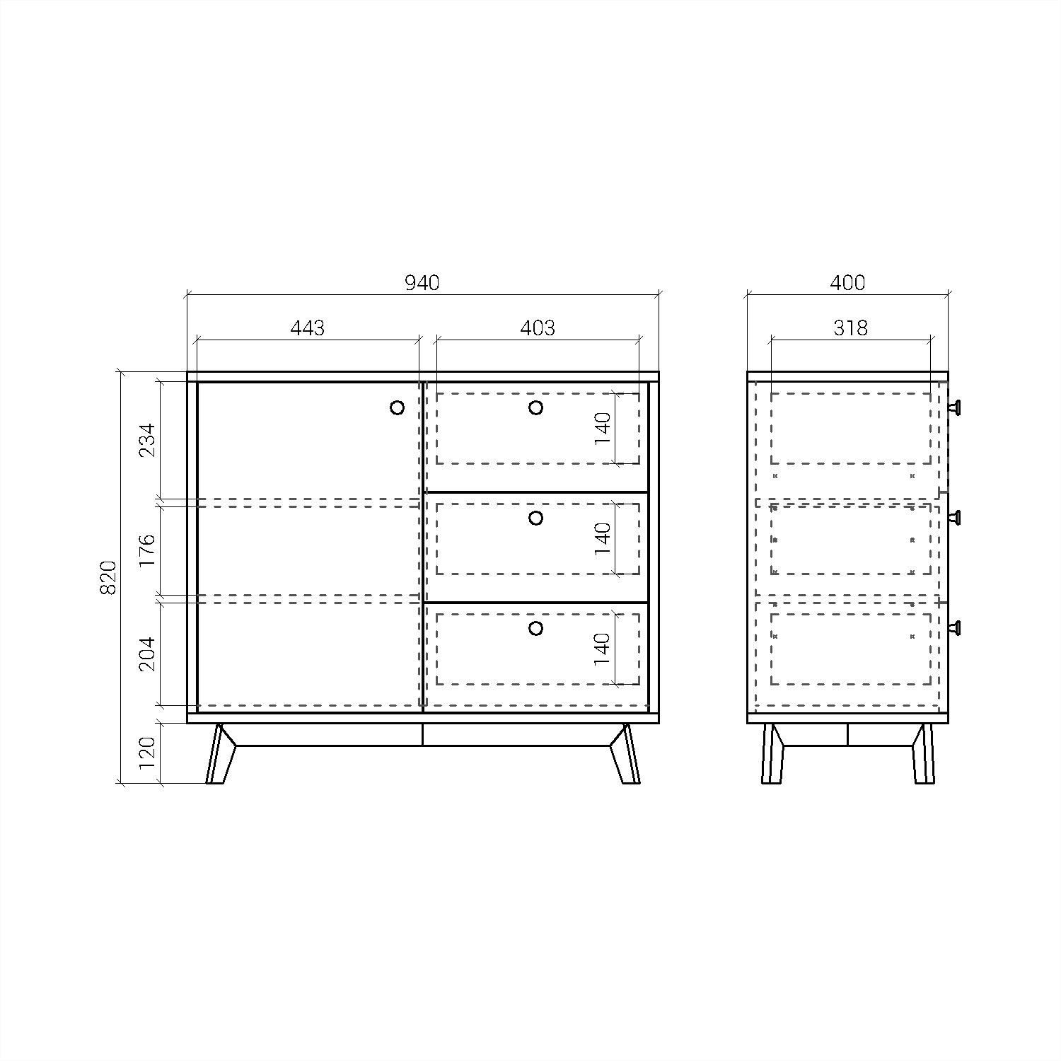 Компактный комод с тремя вместительными ящиками и секцией с полками — эффектный предмет интерьера, который точно не останется без внимания в любом интерьере.