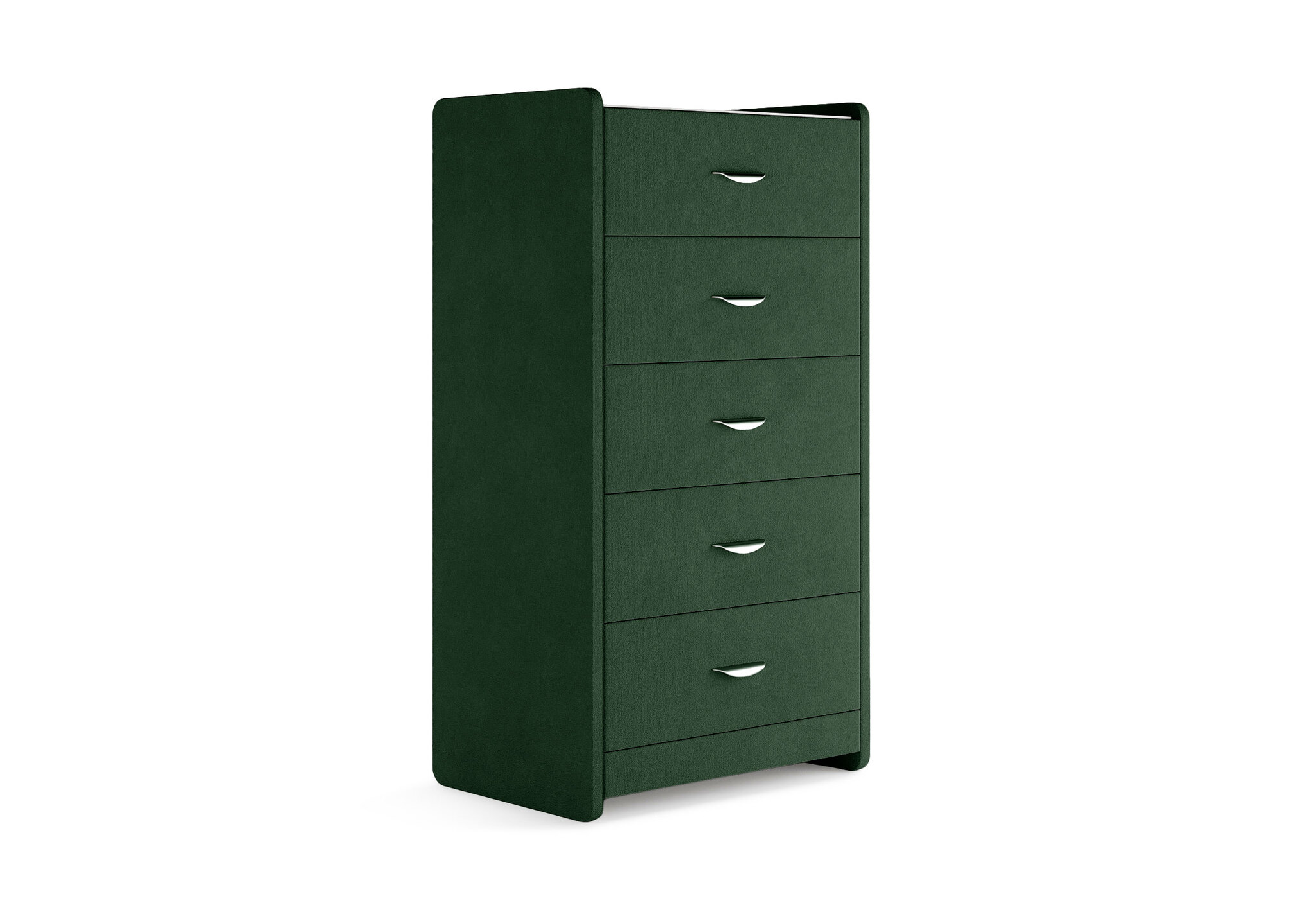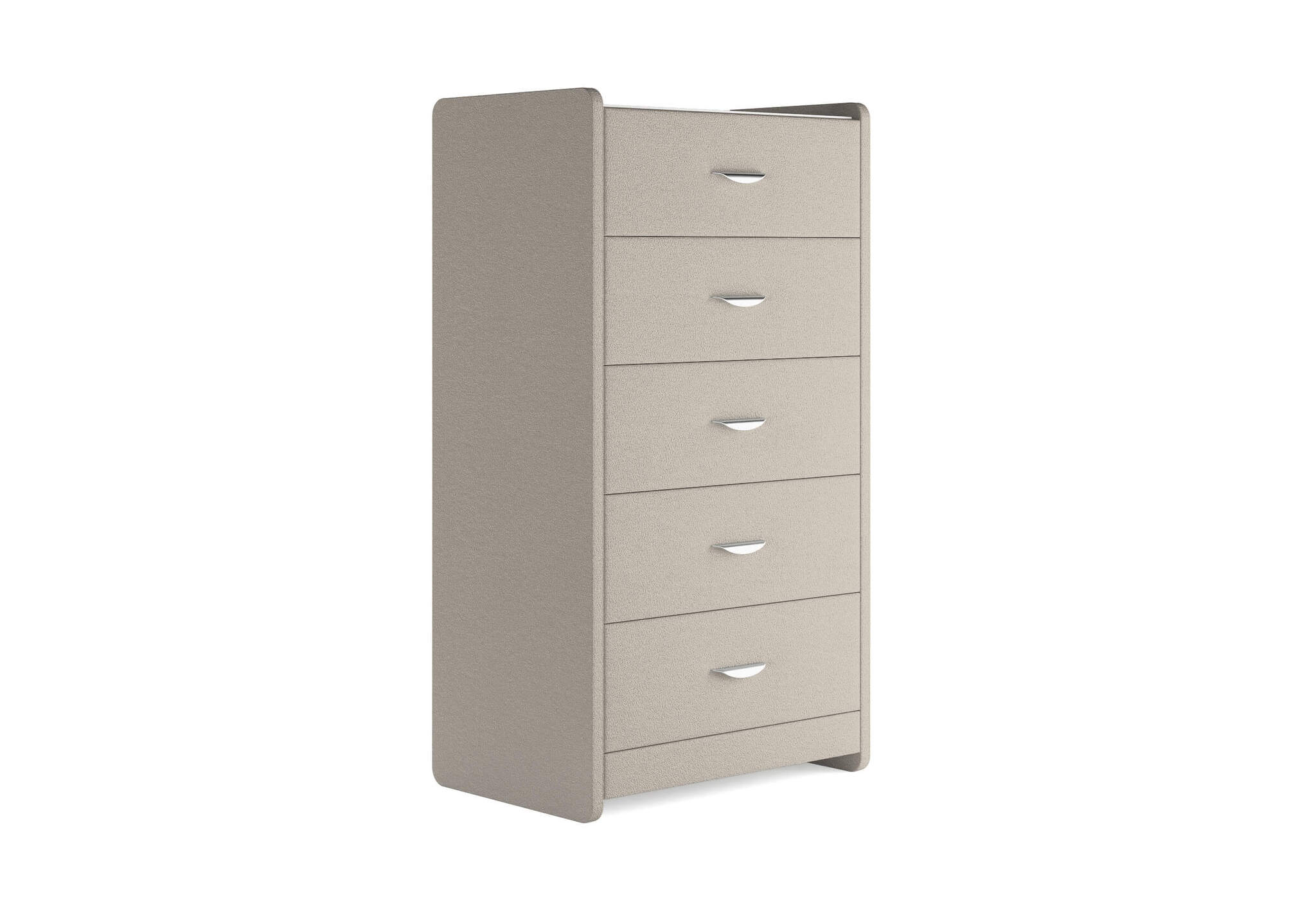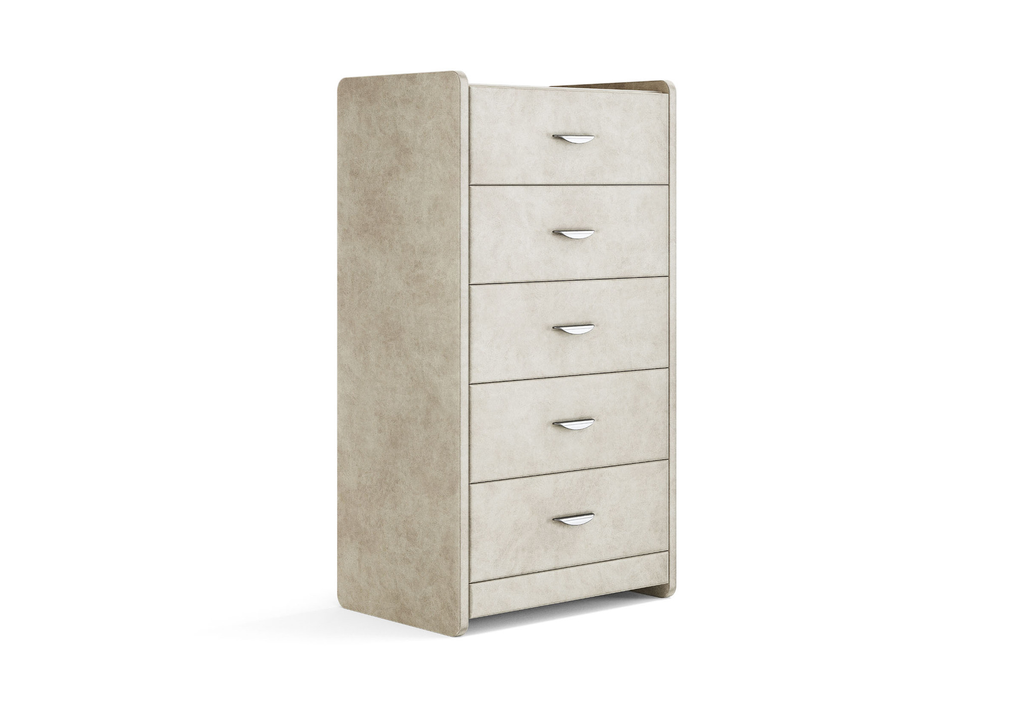 Комод с 5 ящиками сдержанного дизайна дополнит любой интерьер и сделает его более функциональным. Каркас комода и фасад ящиков покрыты обивочным материалом и выполняется в 43 вариантах цветового исполнения. Для удобства использования и продления срока эксплуатации, рекомендуется использовать стеклянную накладку. Накладка используется в качестве столешницы для тумбы и защищает ее от повреждений и загрязнений.