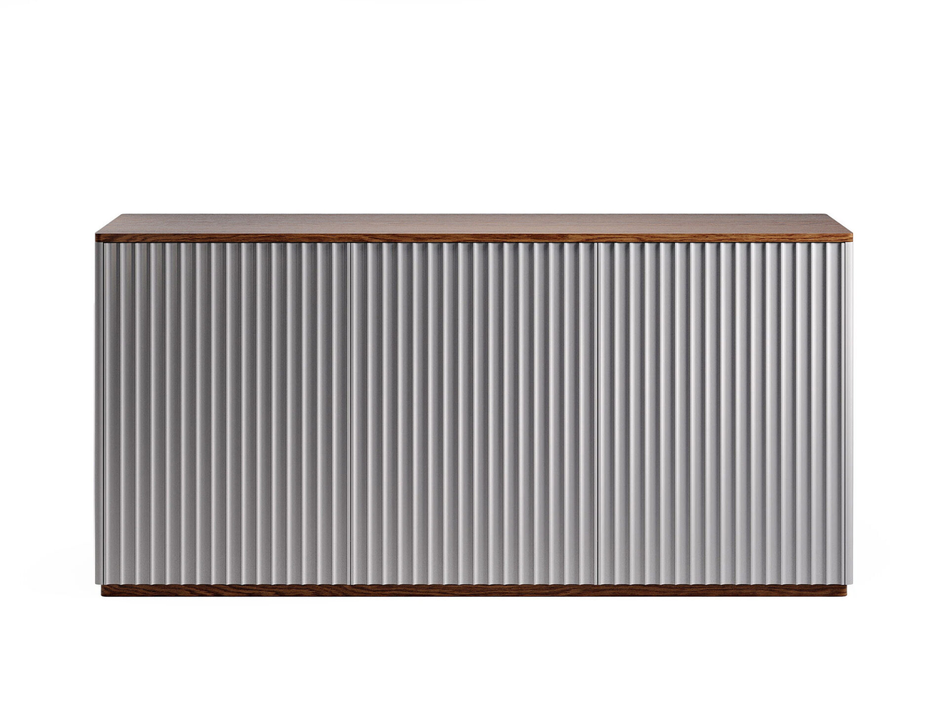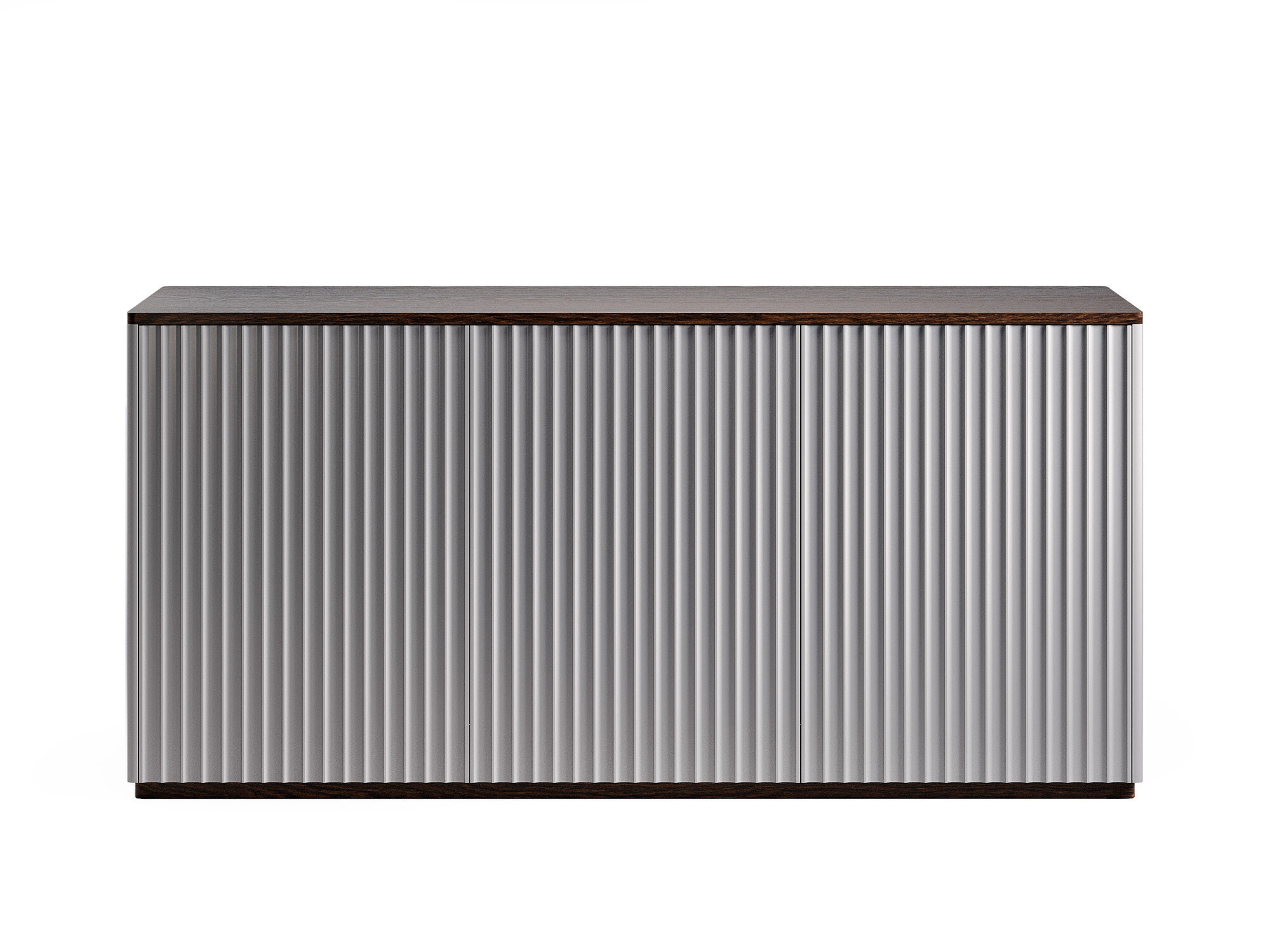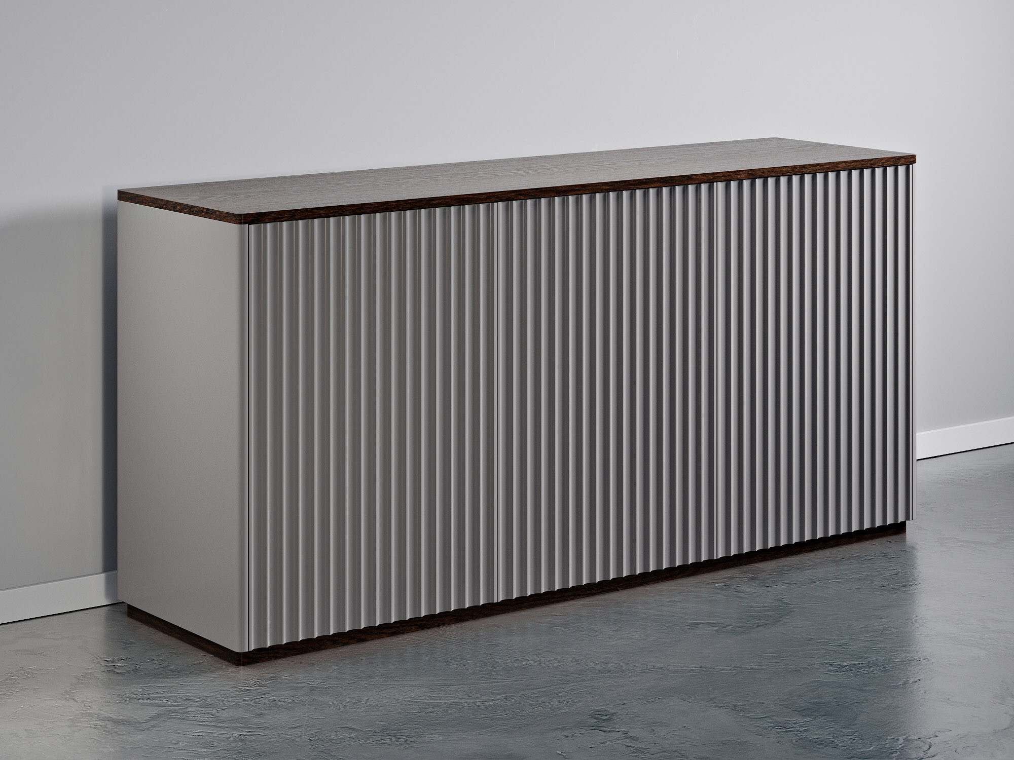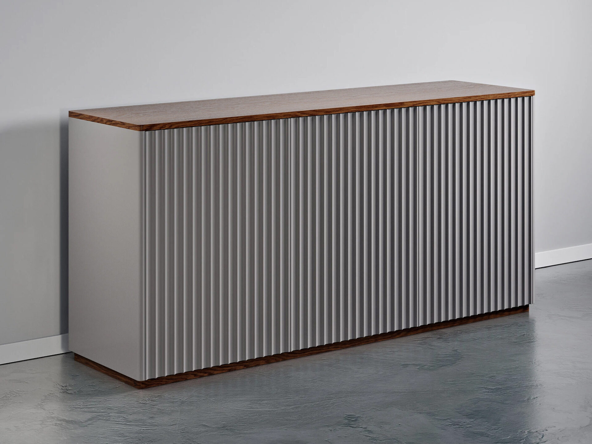 Модель для тех, кто ценит продуманную организацию и безупречную эстетику. Глубокая вертикальная фрезеровка на фасадах создает динамичную игру света и тени, а система push-to-open позволяет открывать дверцы и ящики легким нажатием. Универсальная конструкция сочетает разные форматы хранения, идеально подходя для спальни, прихожей или гостиной. Комод на цоколе из массива дуба, что обеспечивает ему максимальную стабильность и визуальную легкость.