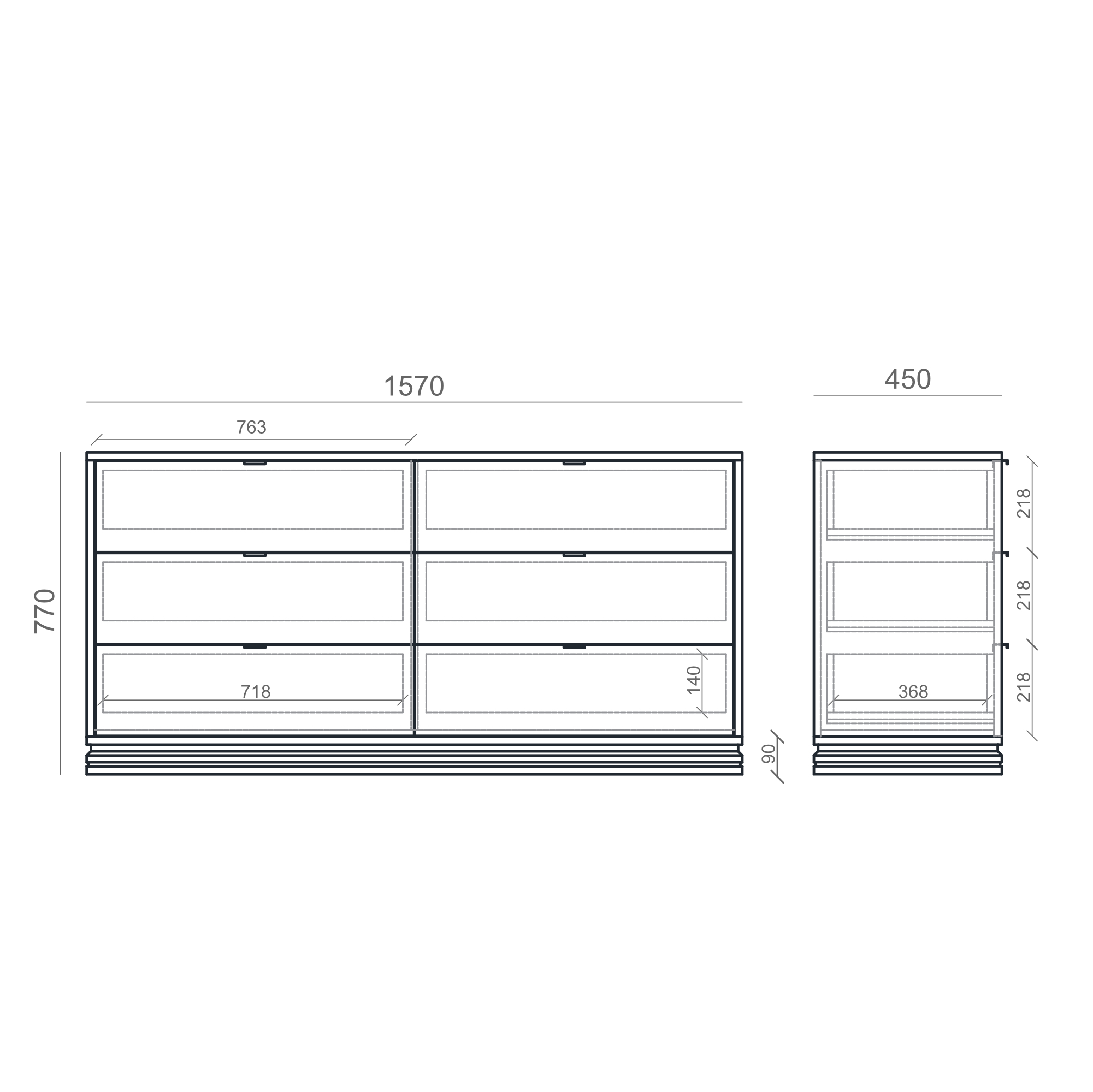 Элегантность, функциональность и художественная выразительность гармонично сочетаются в этой модели. Авторские принты на фасадах превращают комод в арт-объект, сохраняя лаконичную элегантность TIMELESS. Шесть полноразмерных ящиков обеспечивают безупречную организацию пространства, создавая идеальное решение для систематичного хранения.