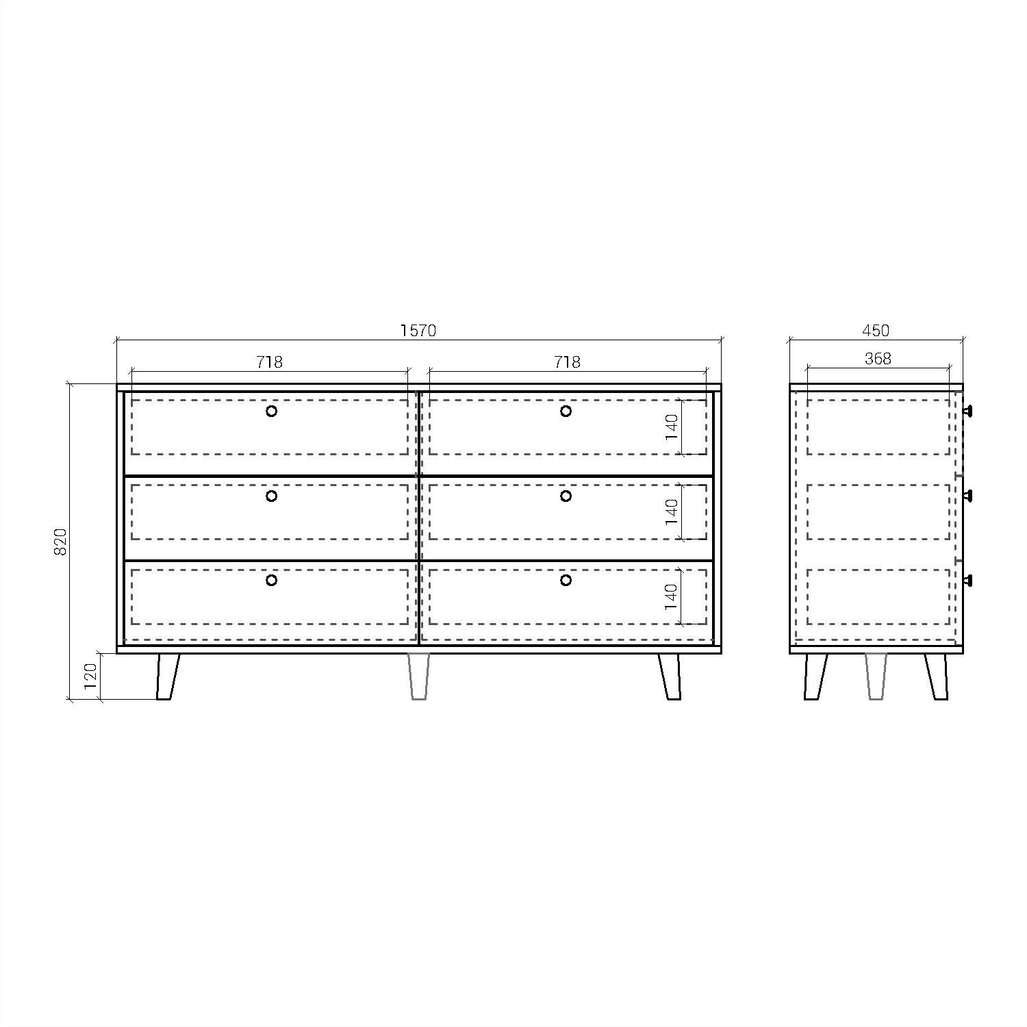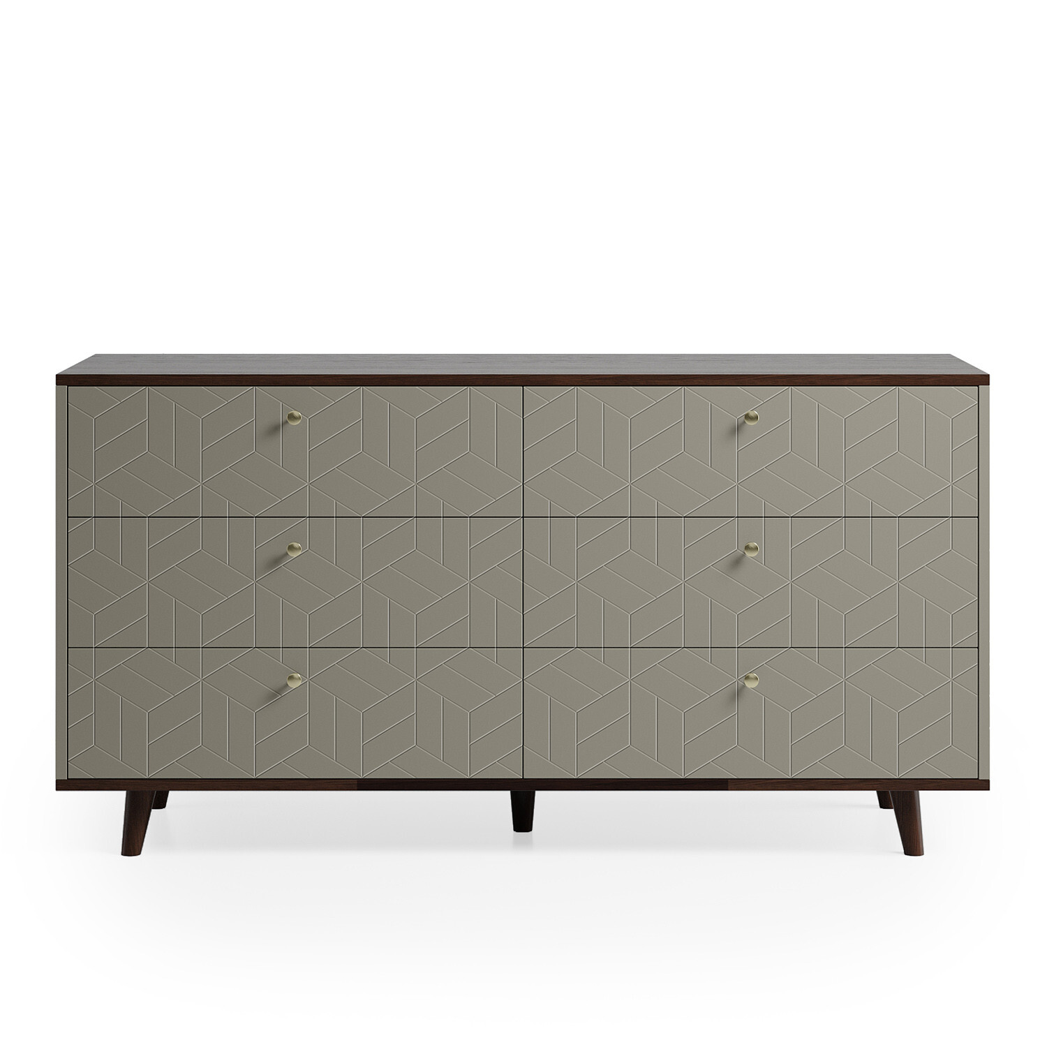 Комод TWIN TW059 с 6 ящиками в стиле mid-century для спальни, гостиной или прихожей