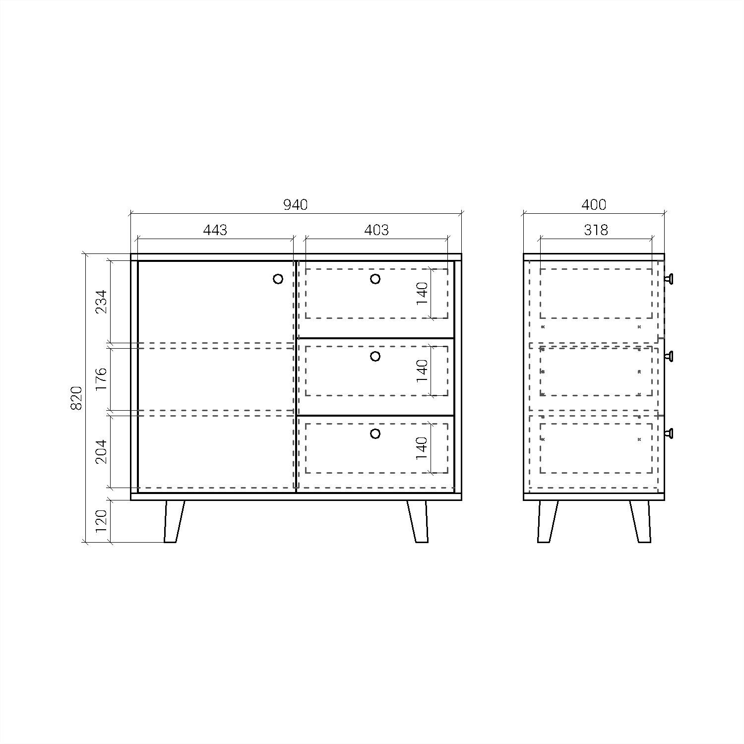 Комод TWIN в стиле mid-century для спальни, гостиной или прихожей