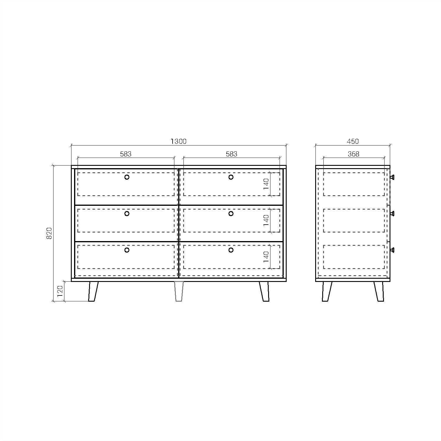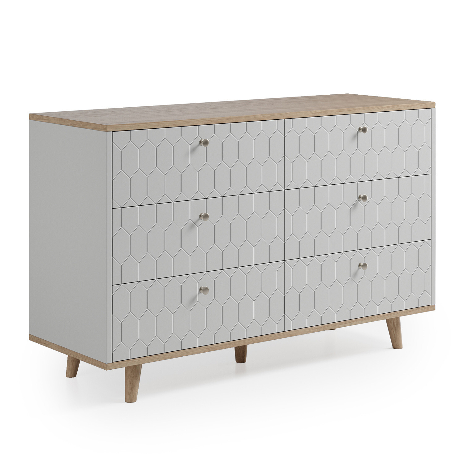 Комод TWIN с 6 ящиками в стиле mid-century для спальни, гостиной или прихожей