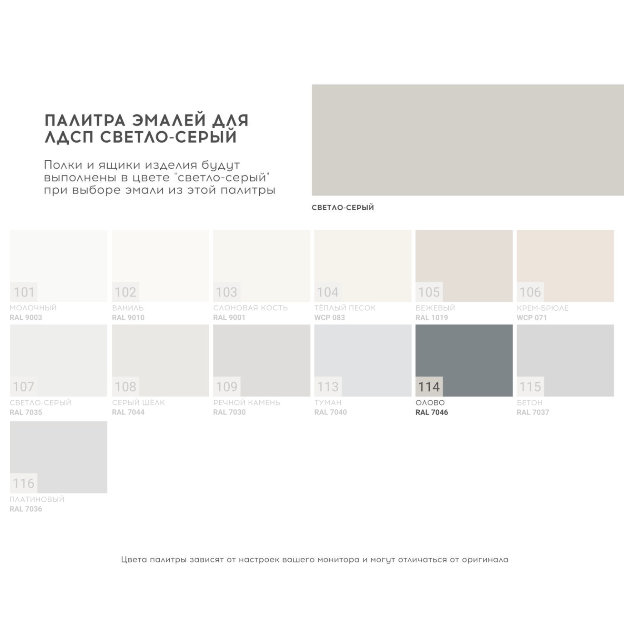 Все ящики открываются легким нажатием благодаря системе push-to-open. Ход бесшумный и плавный, обеспечиваемый скрытыми направляющими Hettich с доводчиками. Вместительные выдвижные ящики обеспечивают удобное хранение мелочей, освобождая поверхности от лишних предметов. Усиленные каркасы выдерживают нагрузку до 25 кг.