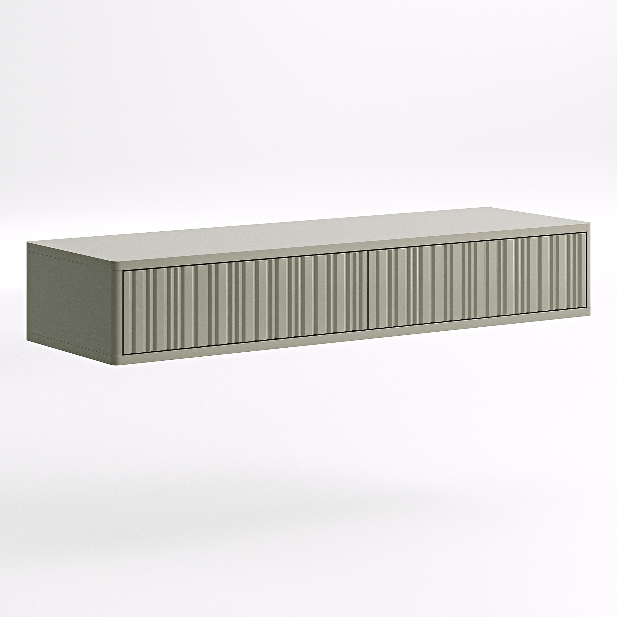 Модель для тех, кто ценит строгую современную эстетику и визуальную легкость. Глубокая вертикальная фрезеровка на фасадах создает динамичную игру света и тени, а система push-to-open позволяет открывать ящики легким нажатием. Подвесная конструкция парит над полом, создавая ощущение невесомости и порядка, идеально подходя для прихожей, гостиной или любого другого помещения.
