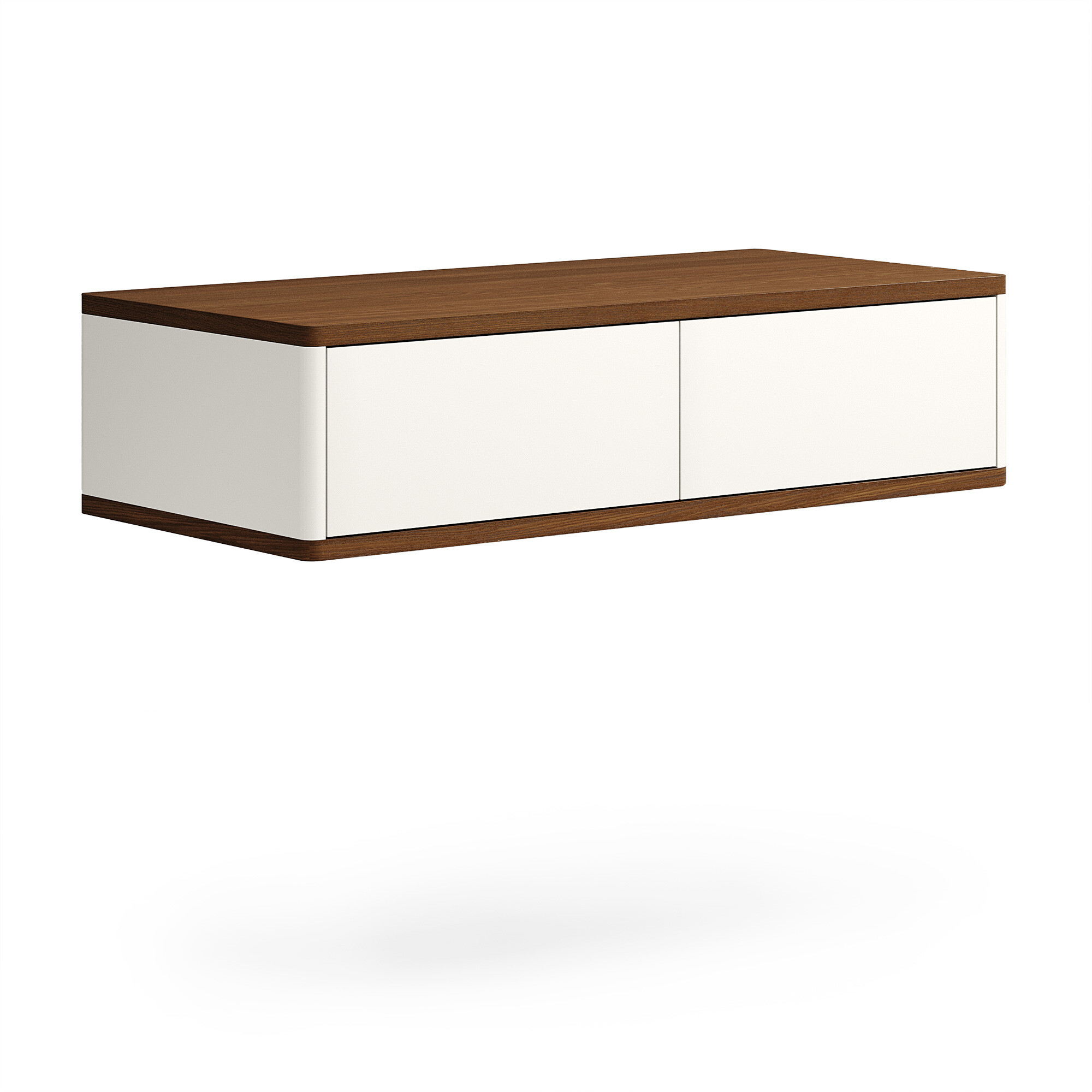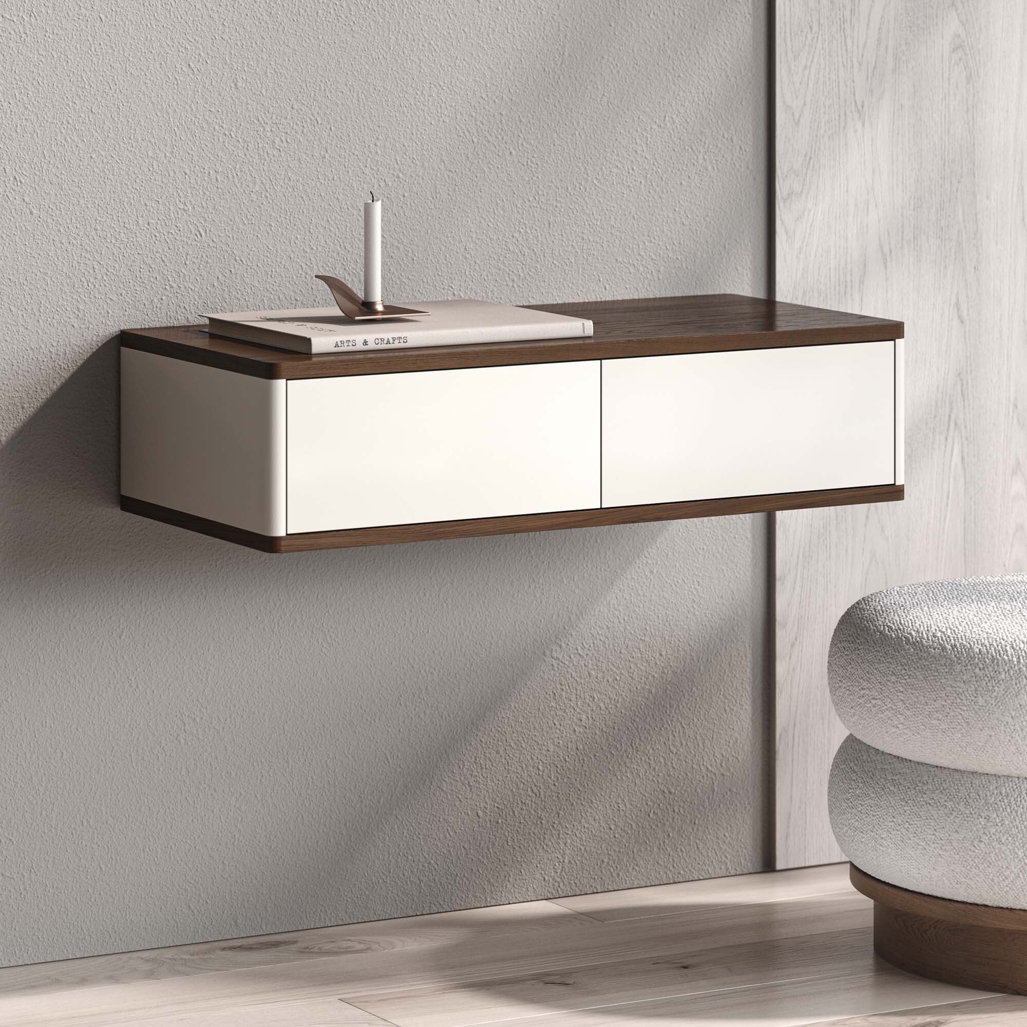 а система push-to-open позволяет открывать ящики легким нажатием. Подвесная конструкция парит над полом, создавая ощущение невесомости и порядка, идеально подходя для прихожей,