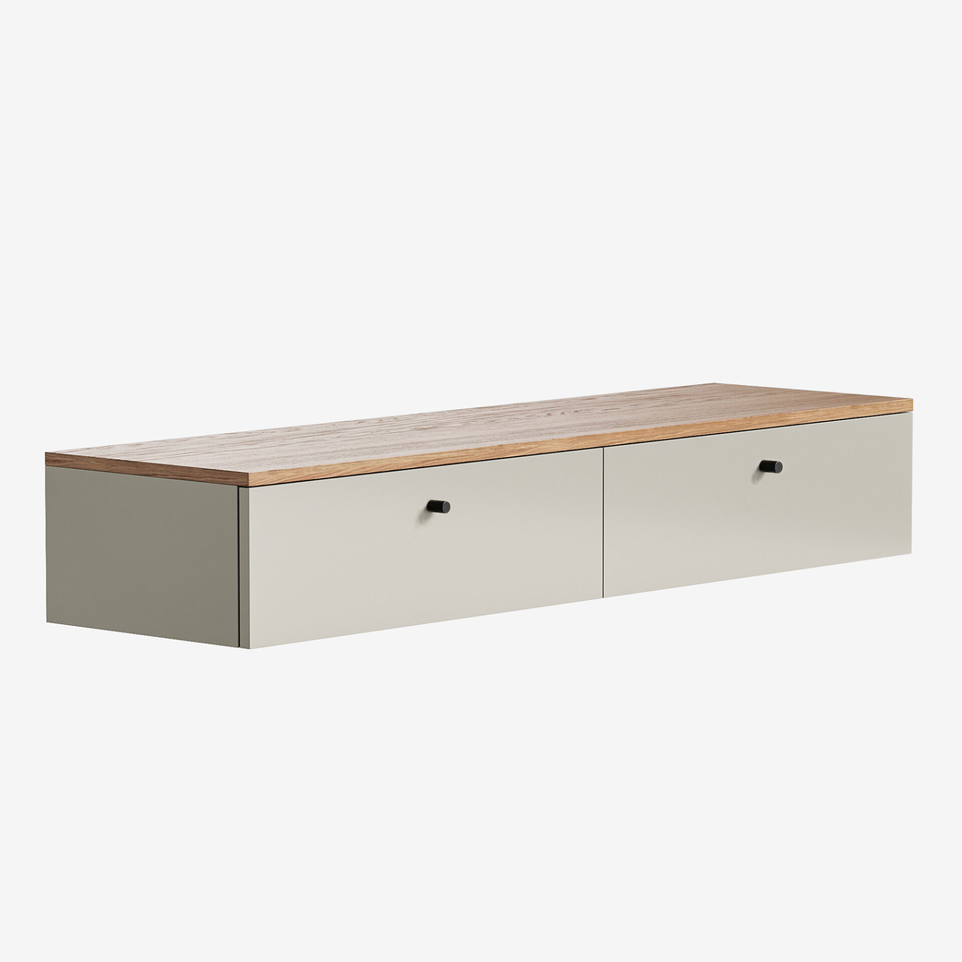 Подвесная консоль с выдвижными ящиками буквально парит в воздухе благодаря