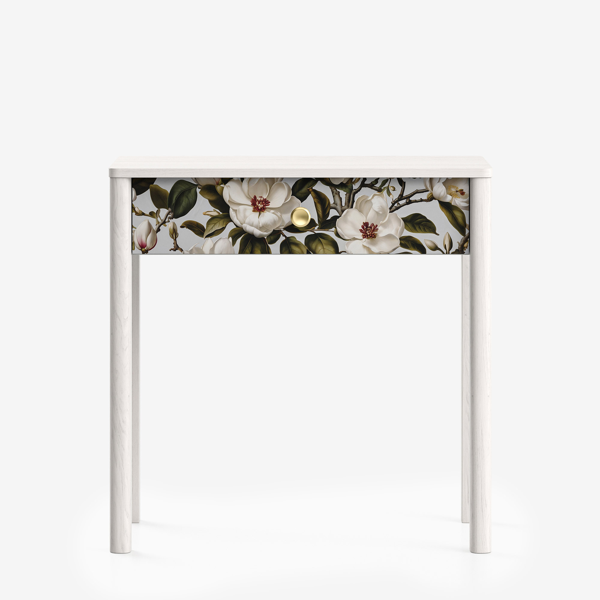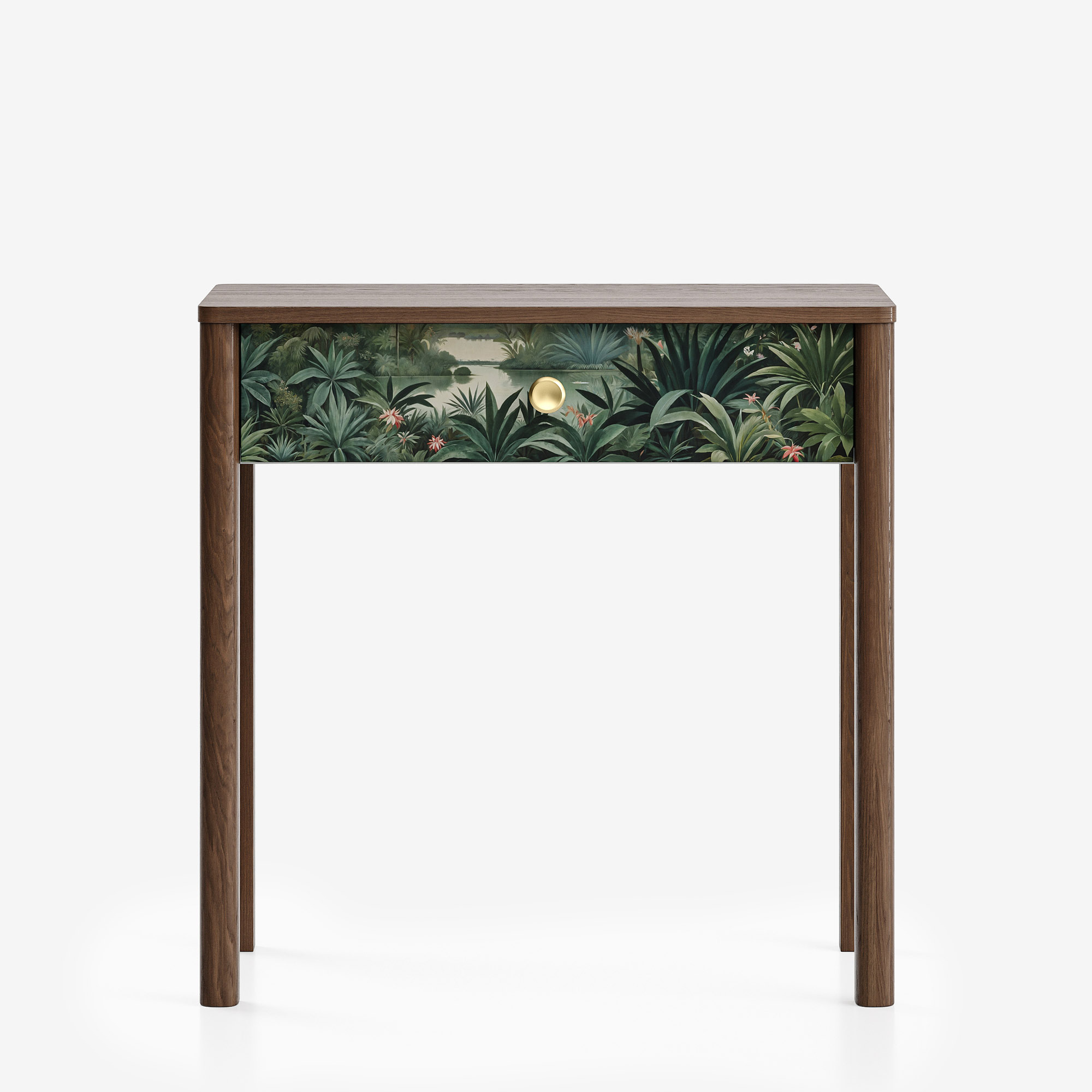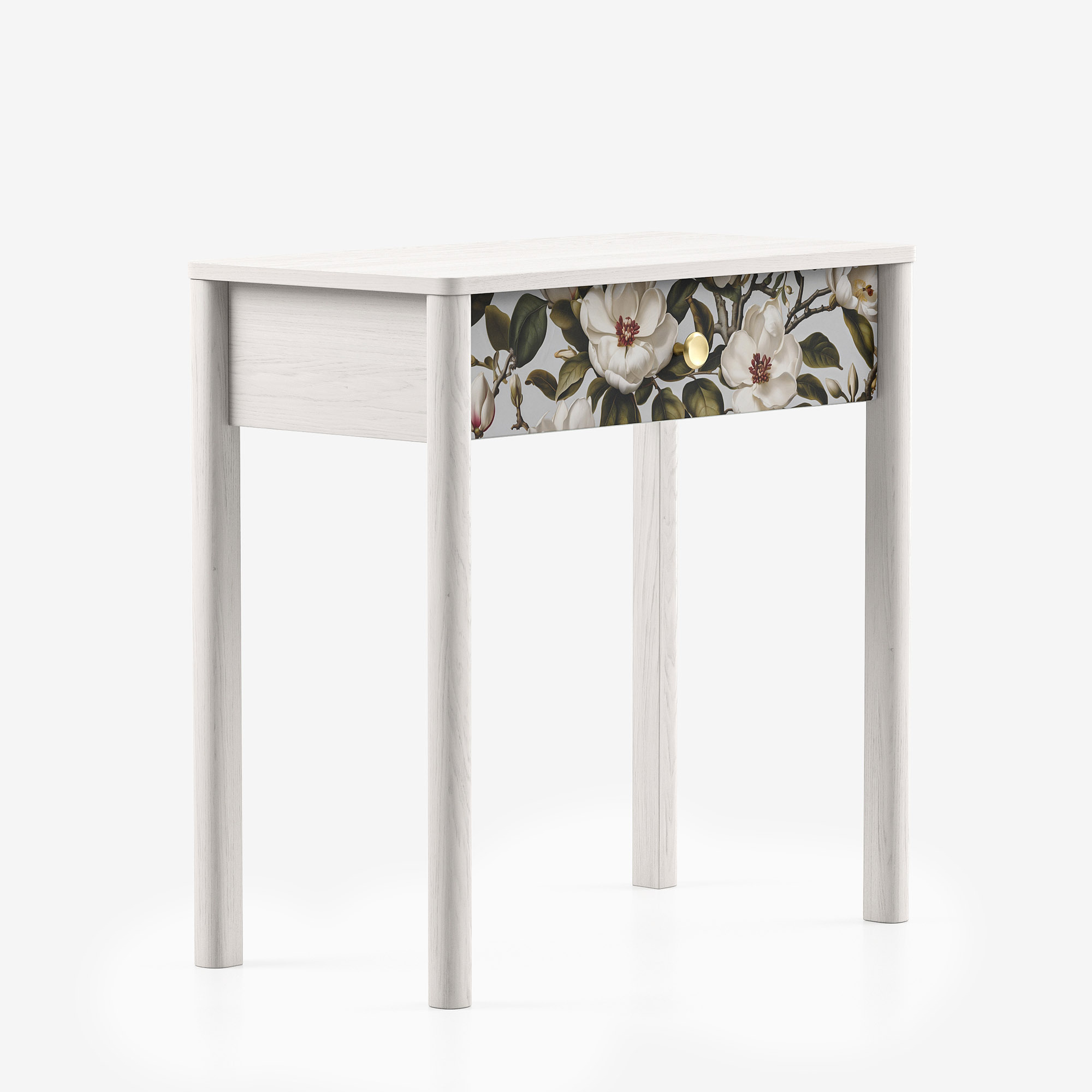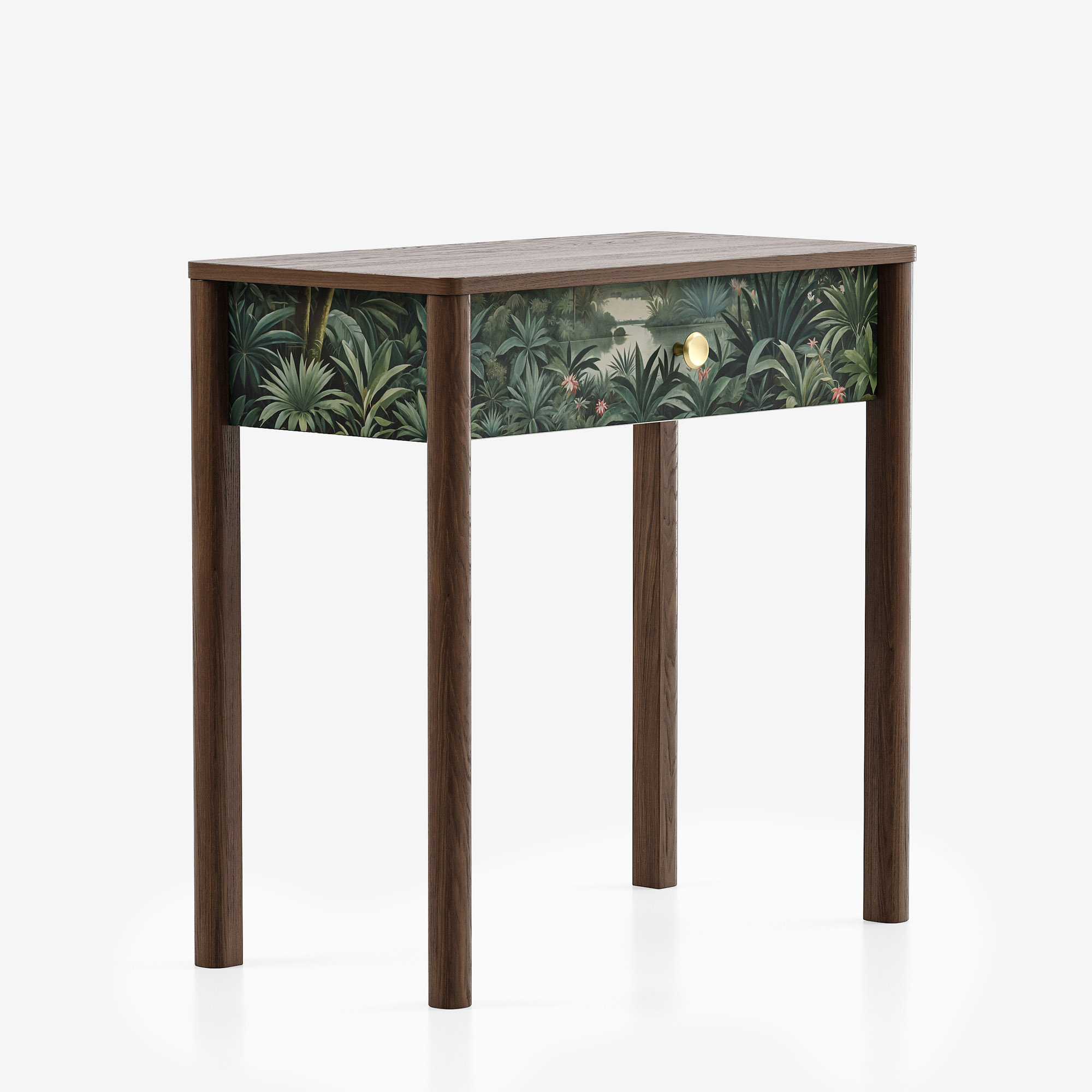 Уникальное сочетание скандинавской эстетики mid-century и цифрового искусства. Узнаваемые каплевидные ножки из массива дуба и эксклюзивные принты коллекции INSPIRE создают предмет, который станет изящным акцентом в прихожей или гостиной. Это больше, чем стол — это законченное художественное высказывание, добавляющее пространству глубины и характера.