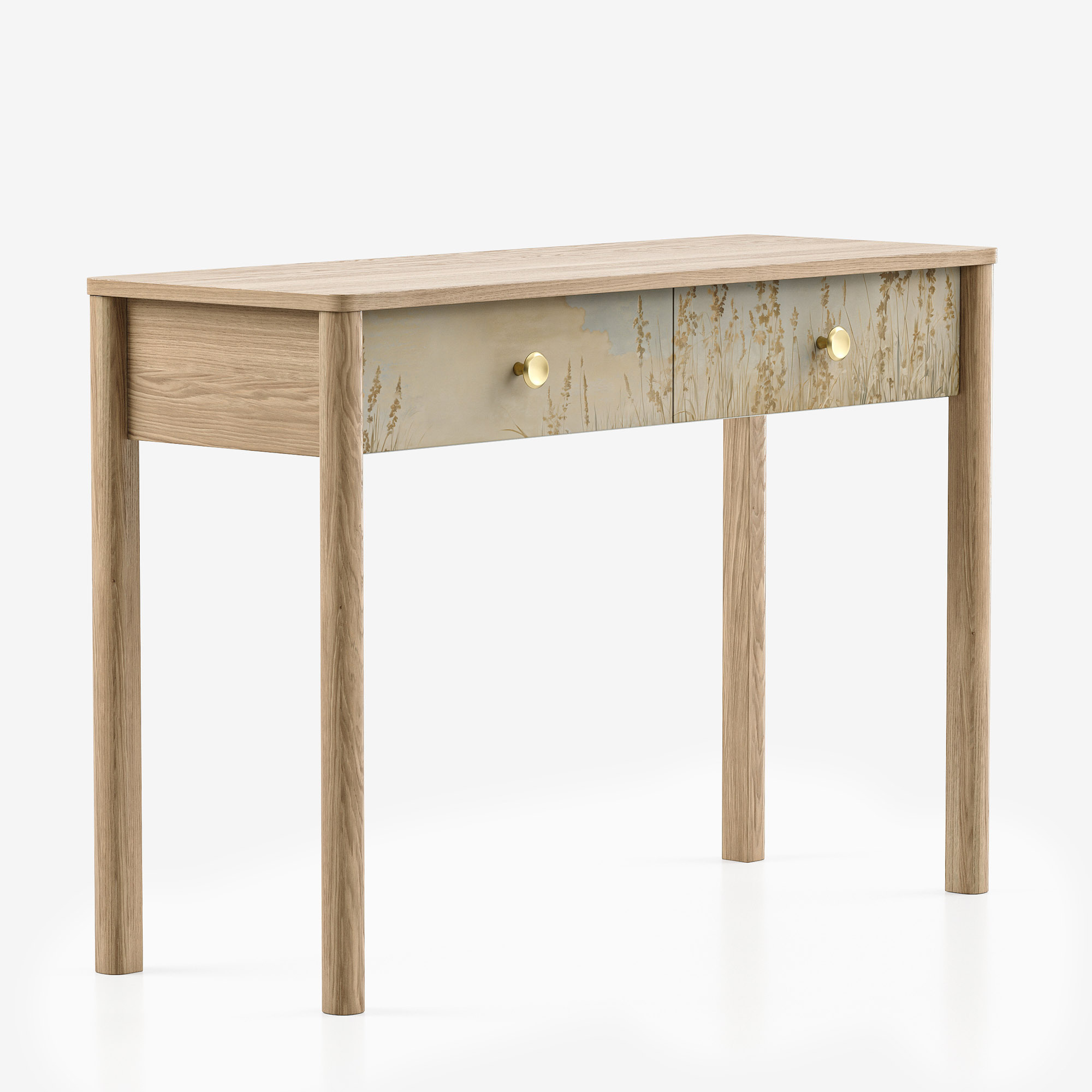 Уникальное сочетание скандинавской эстетики mid-century и цифрового искусства. Узнаваемые каплевидные ножки из массива дуба и эксклюзивные принты коллекции INSPIRE создают предмет, который станет изящным акцентом в прихожей или гостиной. Это больше, чем стол — это законченное художественное высказывание, добавляющее пространству глубины и характера.