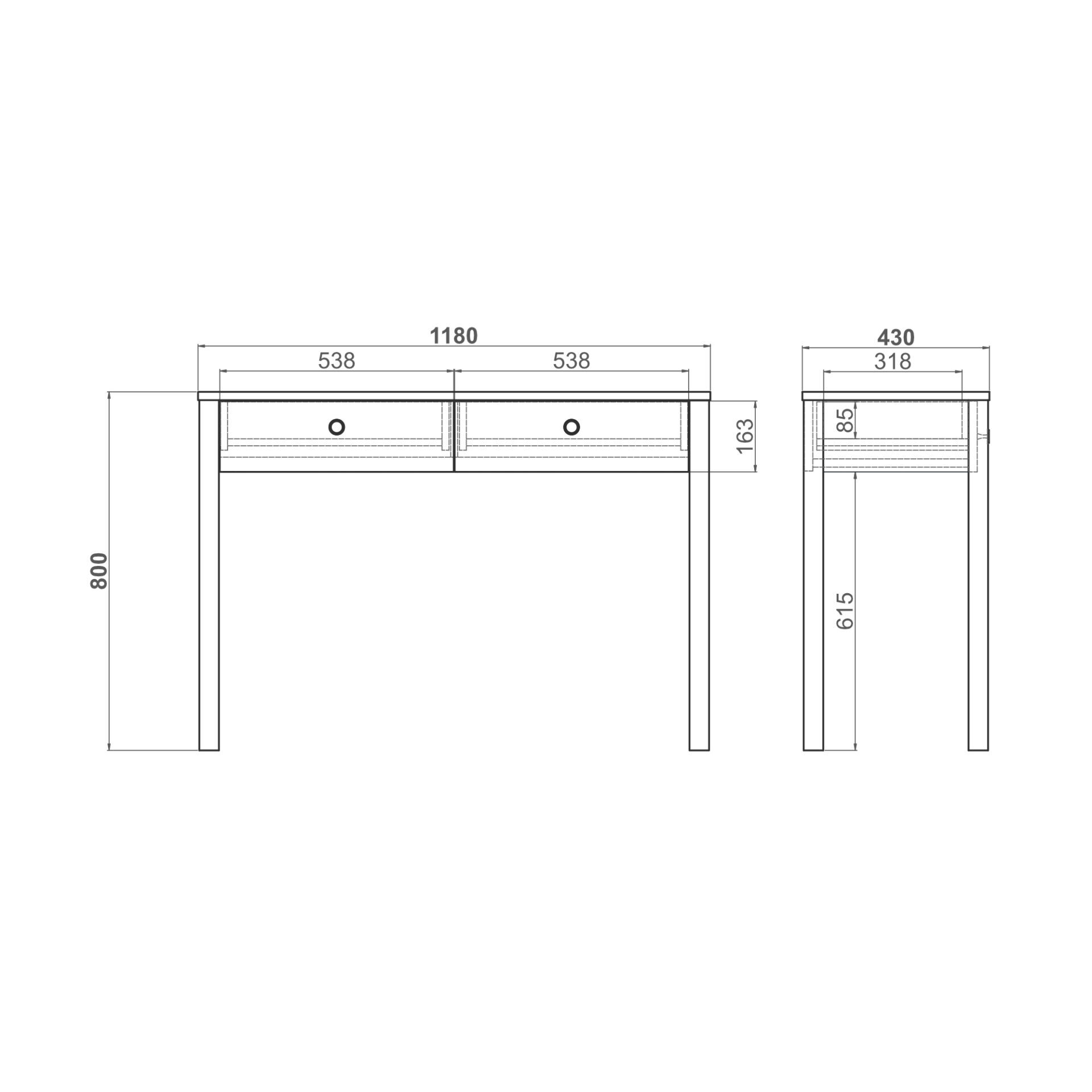 Два вместительных ящика с плавными доводчиками помогают организовать хранение аксессуаров, документов и мелочей.