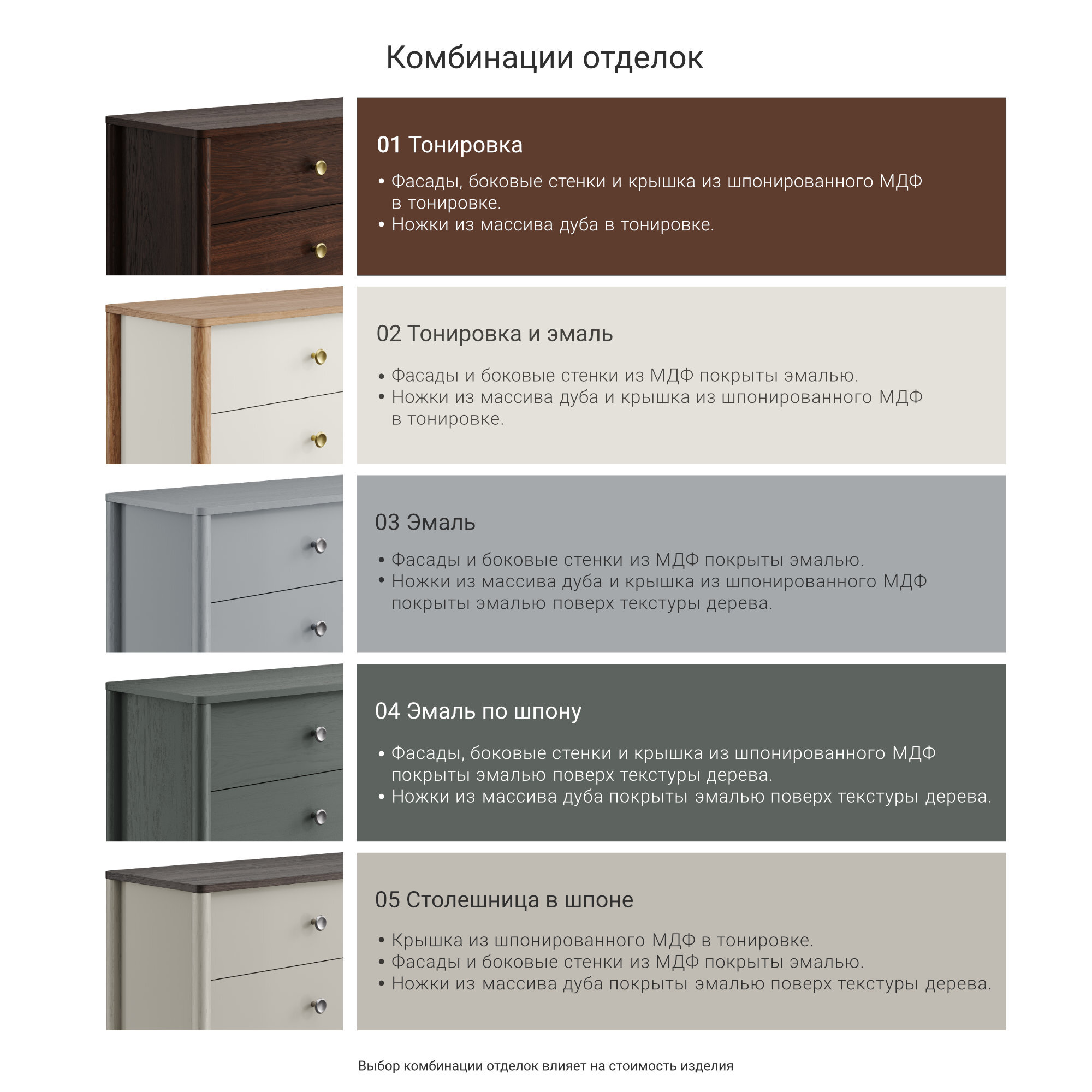 Более 2500 вариантов дизайна: сочетайте материалы, цвет эмали (30+ оттенков) с цветом тонировки дуба и отделкой ручек.