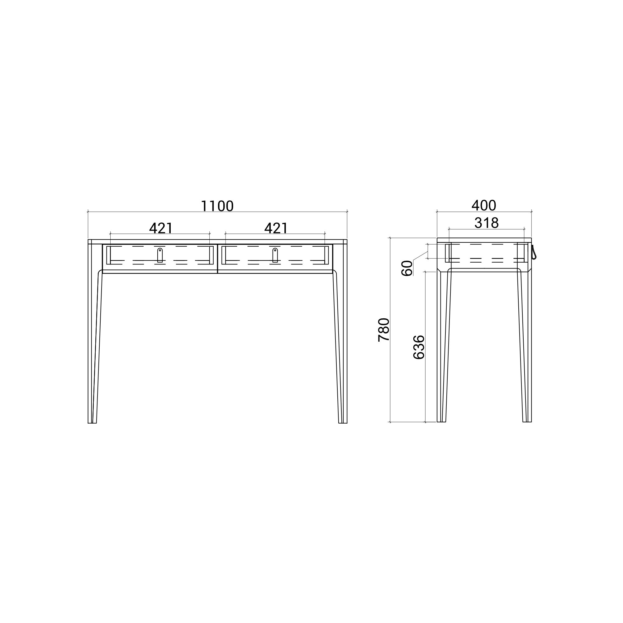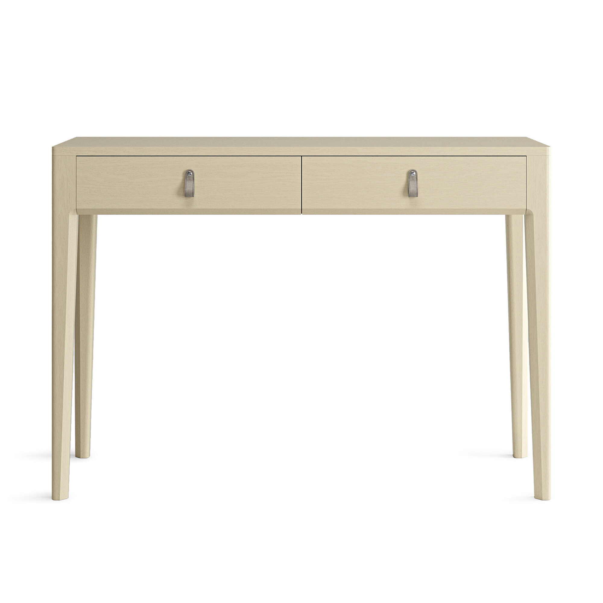 Идеален в качестве туалетного или учебного столика, а также для зонирования прихожей. Компактная глубина (40-50 см) позволяет разместить его даже в самом узком помещении, не загромождая пространство. Утонченный дизайн с фрезеровкой ножек и ручками из натуральной кожи делает его изысканной деталью интерьера.