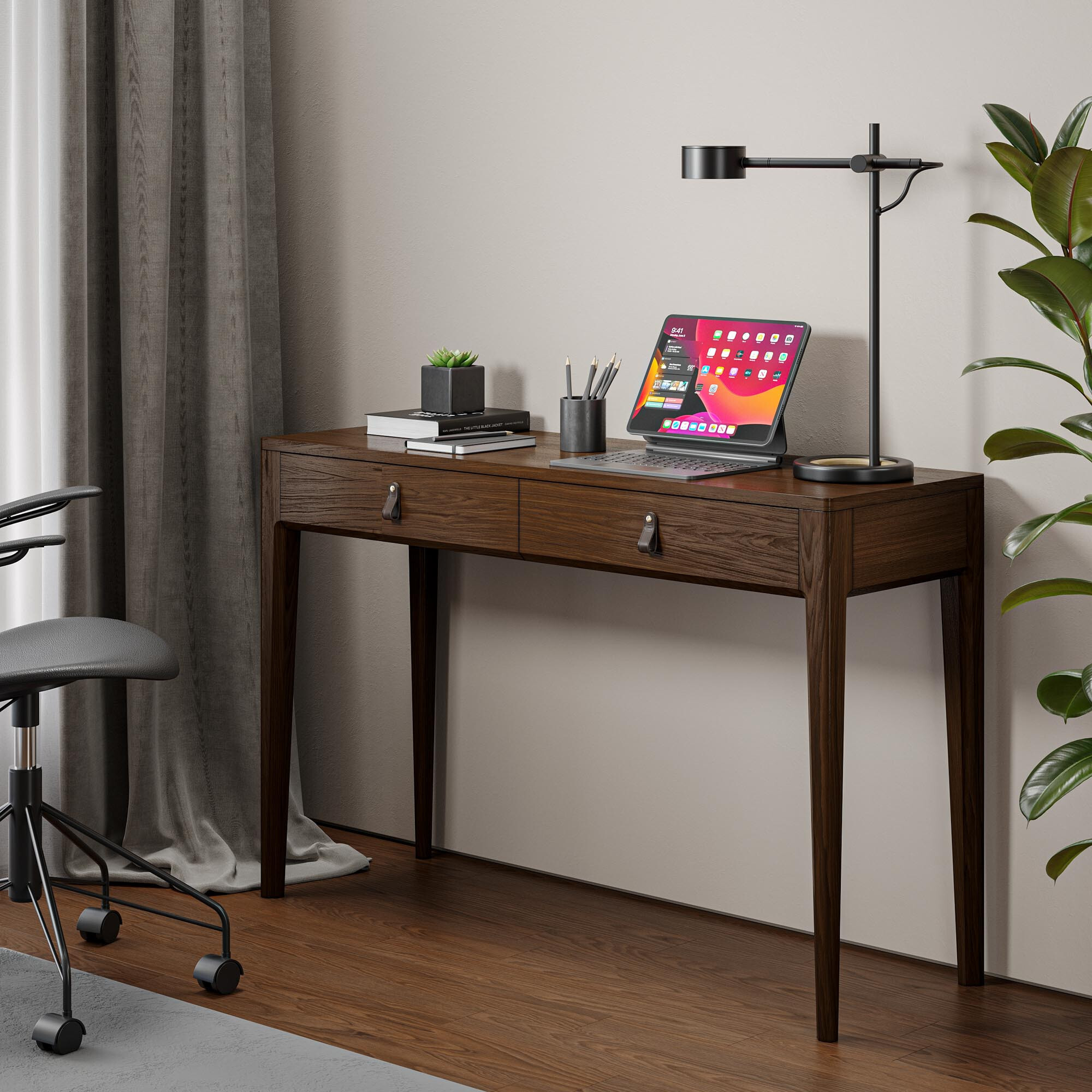 Идеален в качестве туалетного или учебного столика, а также для зонирования прихожей. Компактная глубина (40-50 см) позволяет разместить его даже в самом узком помещении, не загромождая пространство. Утонченный дизайн с фрезеровкой ножек и ручками из натуральной кожи делает его изысканной деталью интерьера.