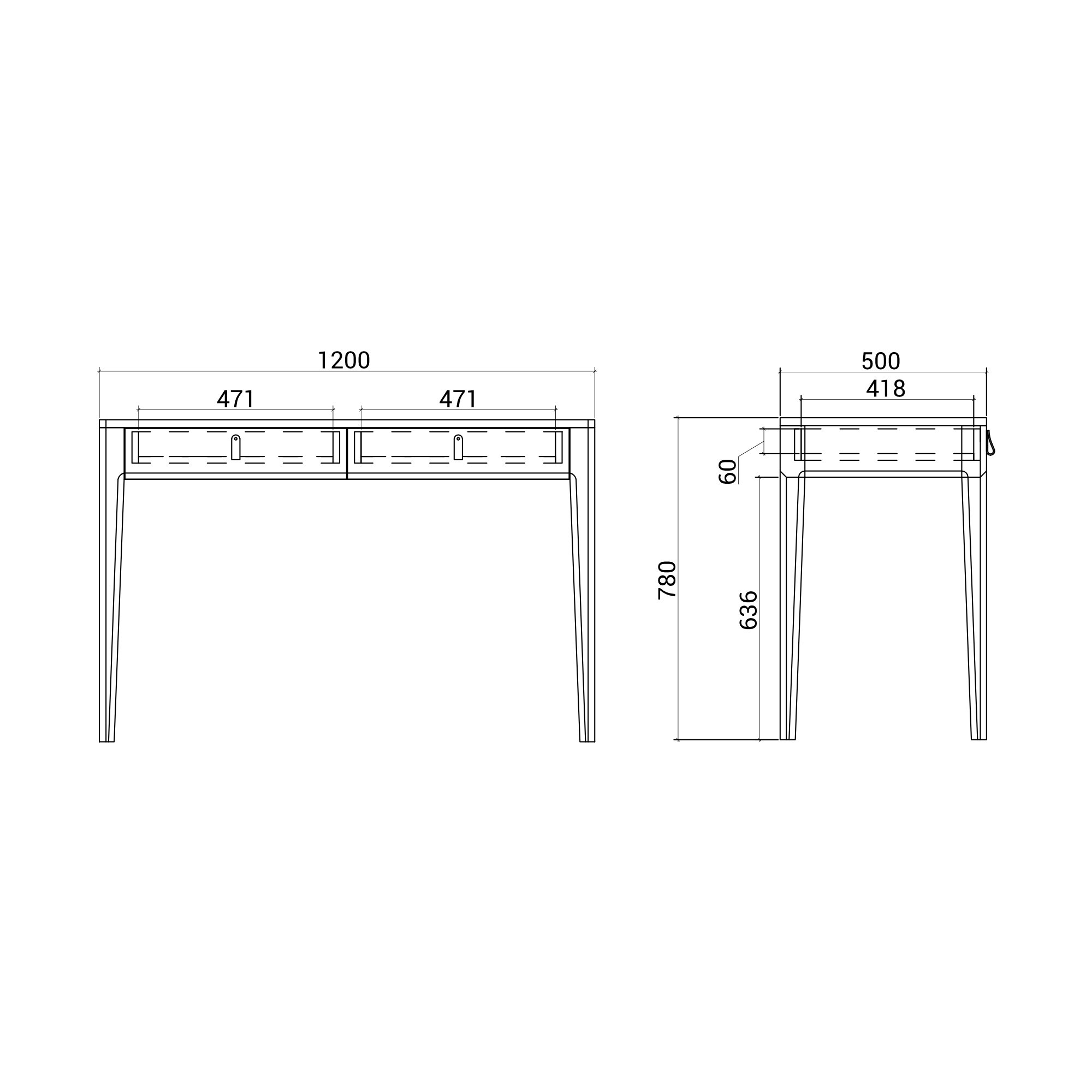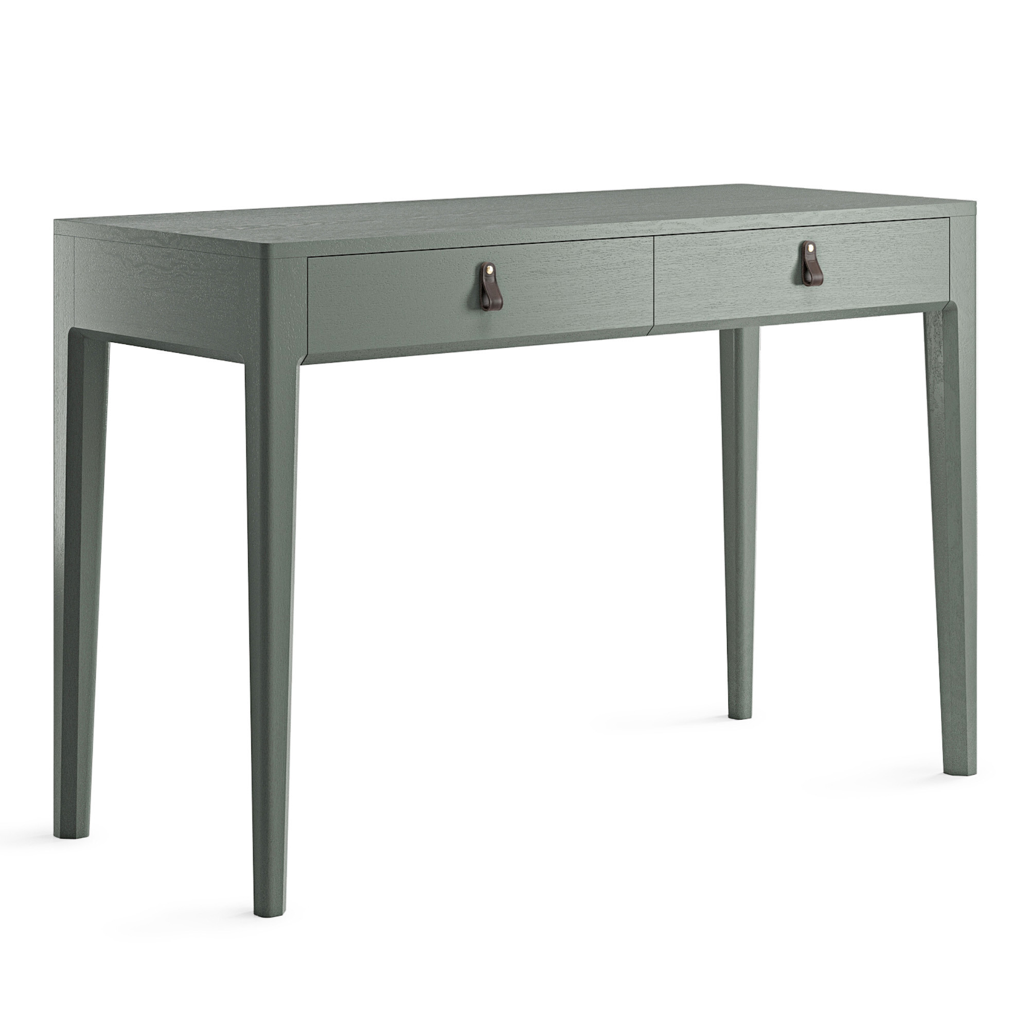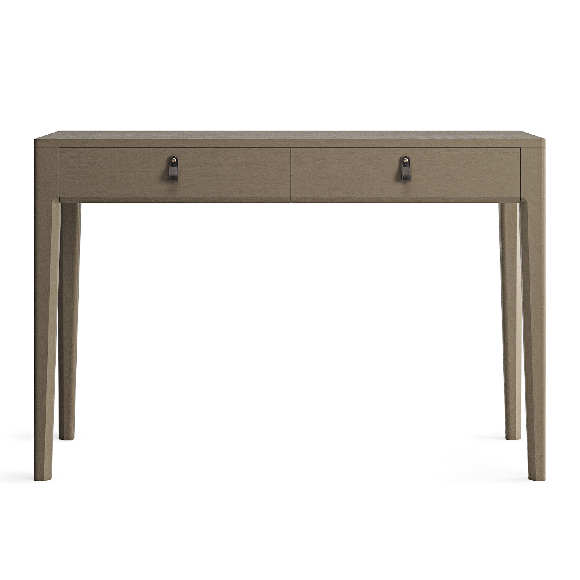 Идеален в качестве туалетного или учебного столика, а также для зонирования прихожей. Компактная глубина (40-50 см) позволяет разместить его даже в самом узком помещении, не загромождая пространство. Утонченный дизайн с фрезеровкой ножек и ручками из натуральной кожи делает его изысканной деталью интерьера.