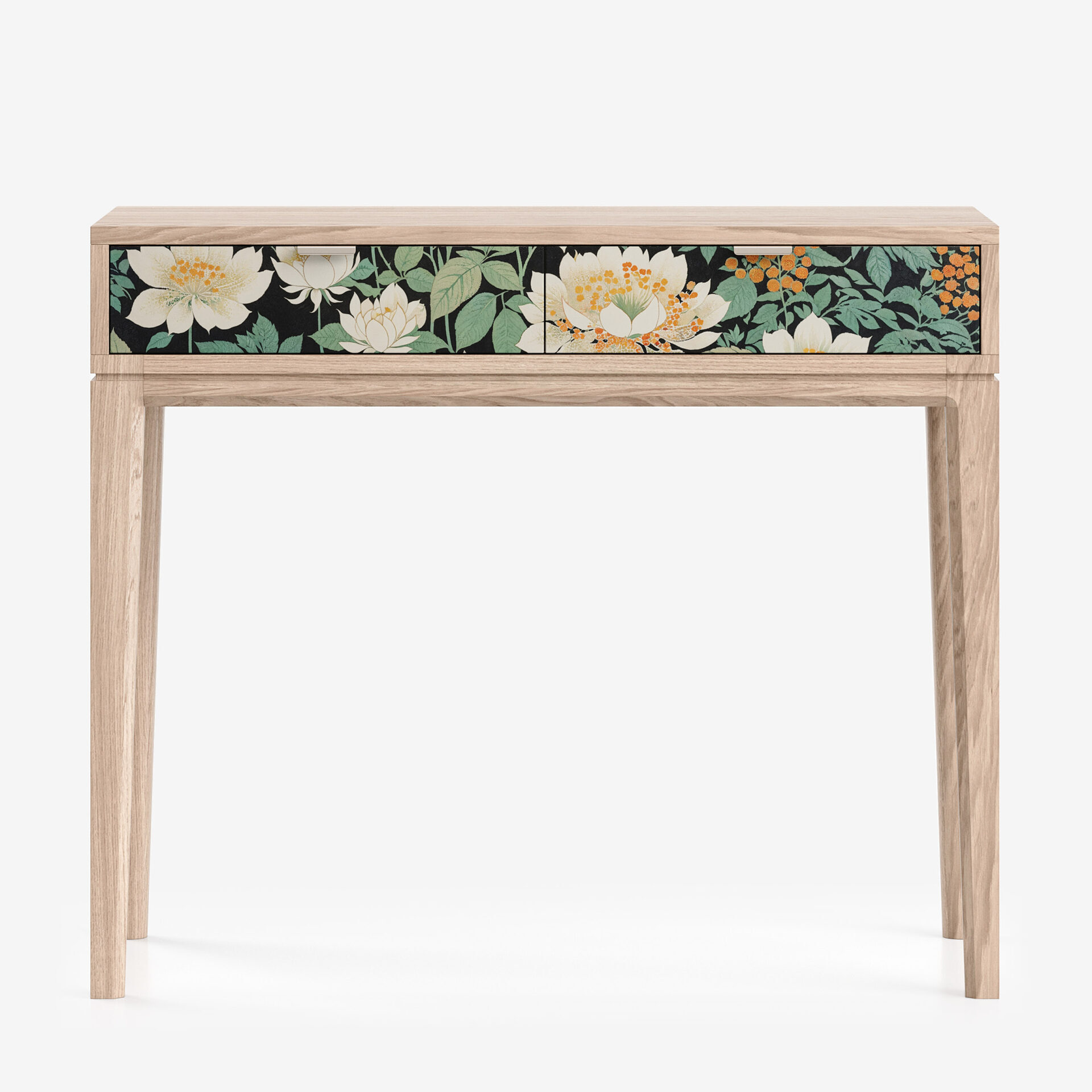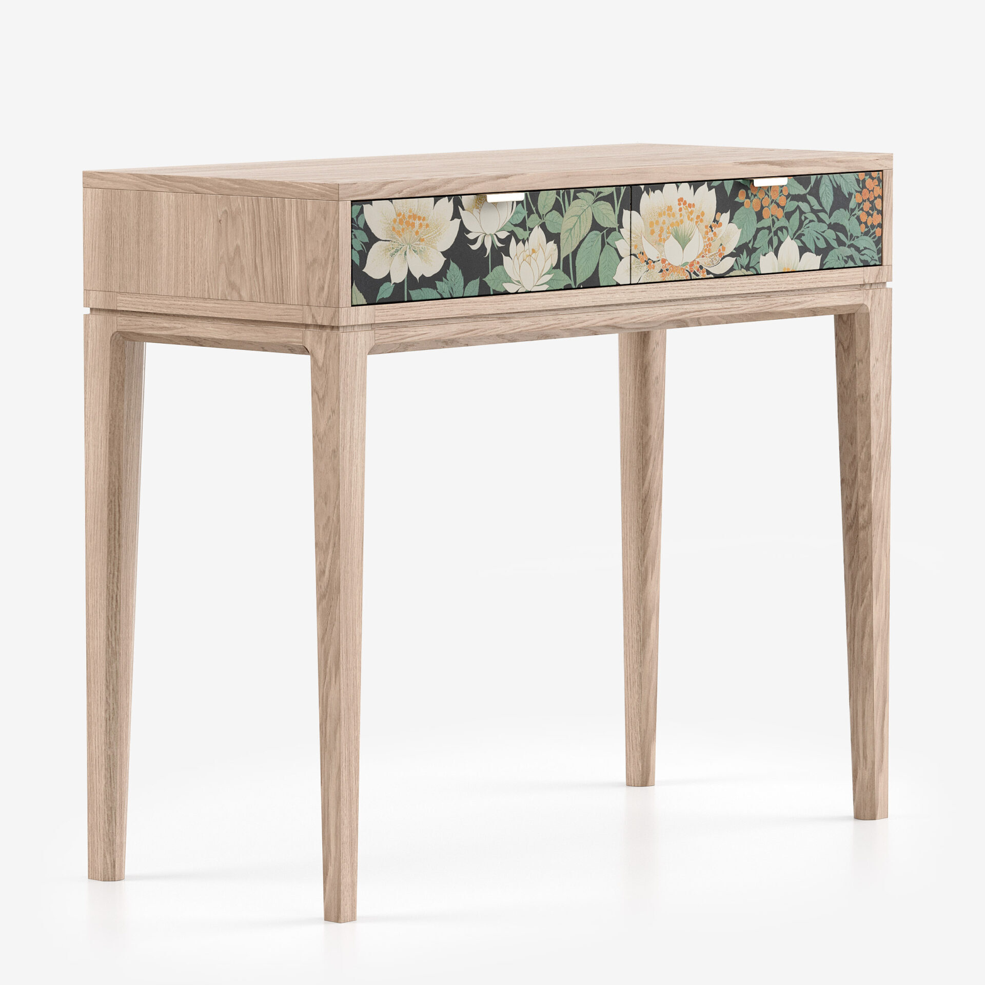 Элегантность, функциональность и художественная выразительность гармонично сочетаются в этой модели. Авторские принты на фасадах превращают консольный стол в арт-объект, сохраняя лаконичную элегантность TIMELESS. Стол станет акцентным элементом вашей прихожей, гостиной или спальни, где может использоваться как туалетный столик.
