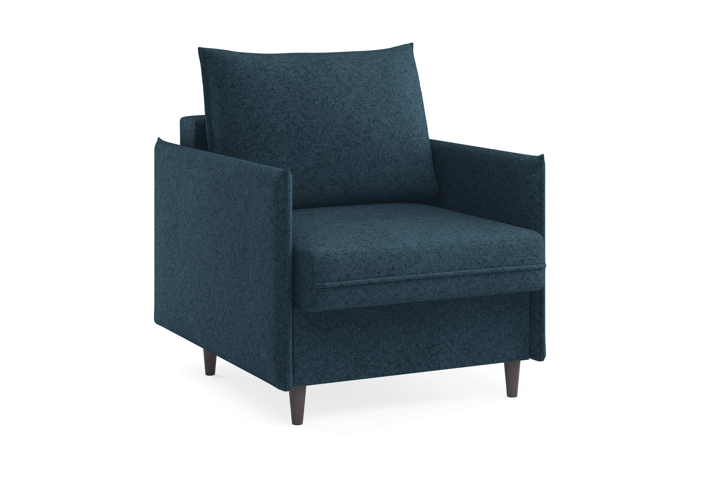 Идеальный выбор для тех, кто ценит эстетику и функциональность в равной степени. Его лаконичный дизайн гармонично впишется в любой современный интерьер — как в минимализм, так и в скандинавский стиль. Благодаря трёхсекционному механизму трансформации (МТД), кресло легко превращается в полноценное спальное место. Узкие подлокотники не занимают лишнего пространства, позволяя креслу легко вписаться даже в небольшие комнаты. Высокие опоры придают изделию лёгкость и изящество, облегчая уборку и позволяя роботу-пылесосу беспрепятственно двигаться под ним.