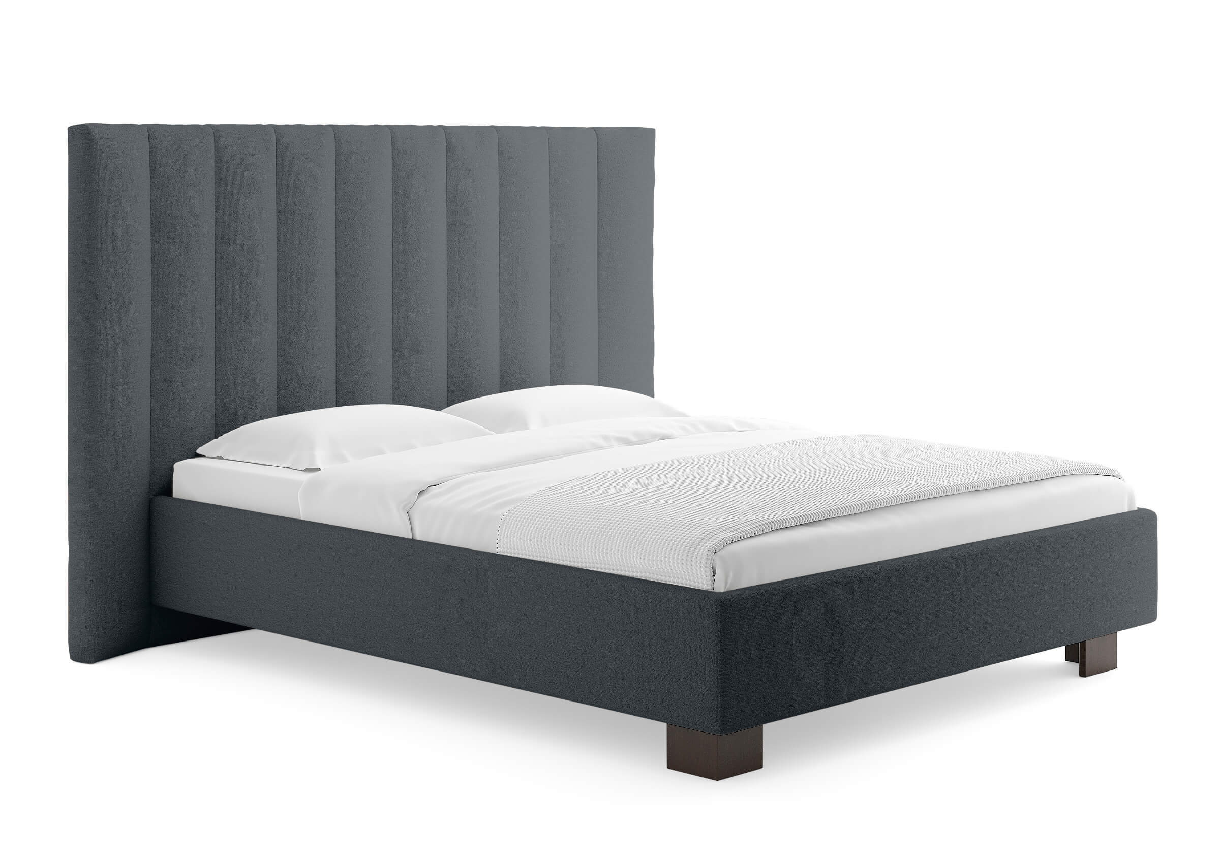 Кровать соответствует самым модным тенденциям и прекрасно впишется в современный интерьер просторной спальни. Высокая спинка с мягкими элементами выглядит эффектно. Поворотный механизм боковых элементов изголовья меняет форму, создавая более уютную атмосферу в спальне. Увеличенная прочность кровати достигается за счет металлического каркаса по периметру. Массивные ножки, выполнены из бука цвета венге. Расстояние от пола до царг способствует легкой уборке под кроватью, в том числе роботом – пылесосом. Модель укомплектована ортопедическим основанием, при желании возможно установить подъемный механизм с бельевым коробом либо трансформируемое основание Aquarius.