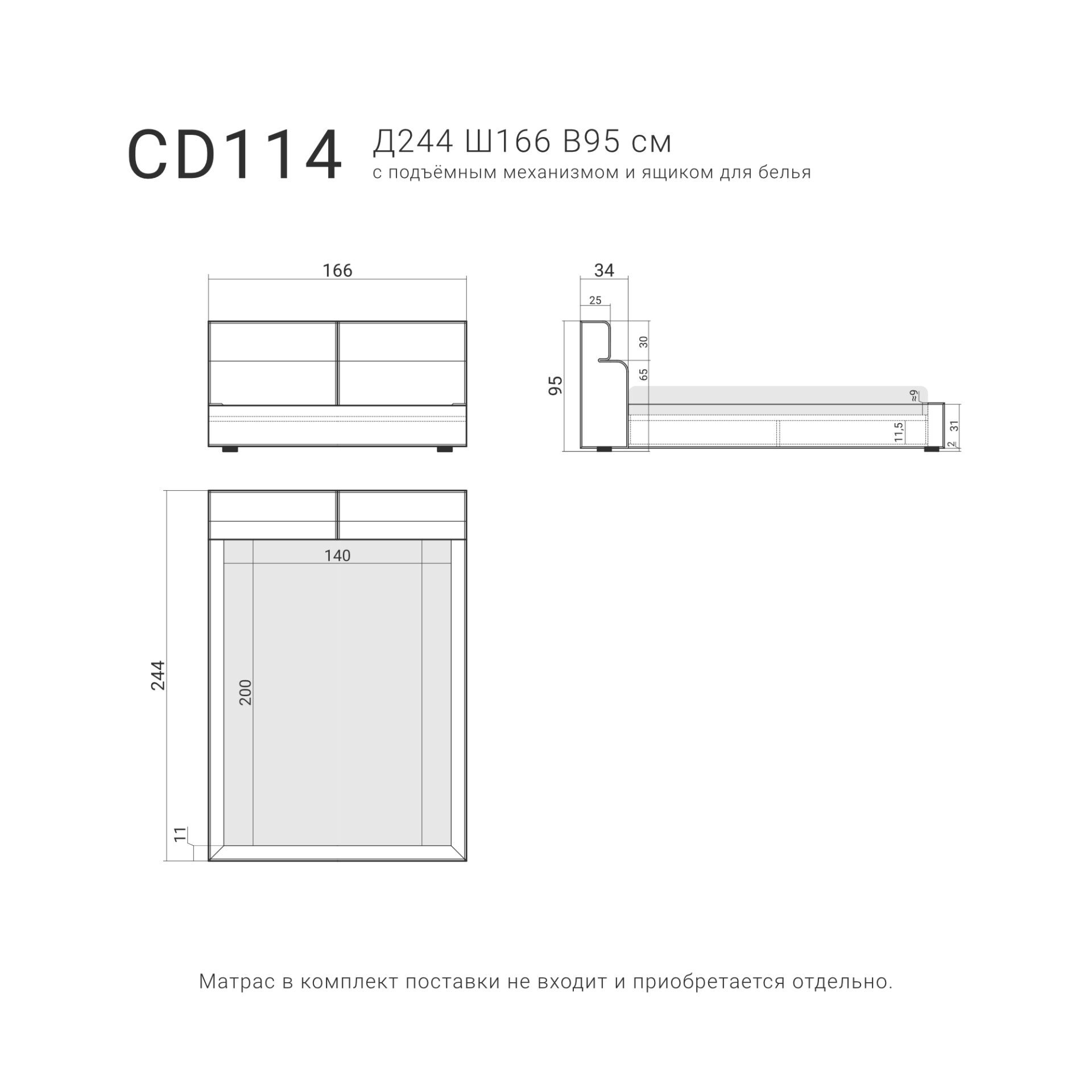 Кровать CASCADE CD114 с подъемным механизмом на матрас размером 1400*2000