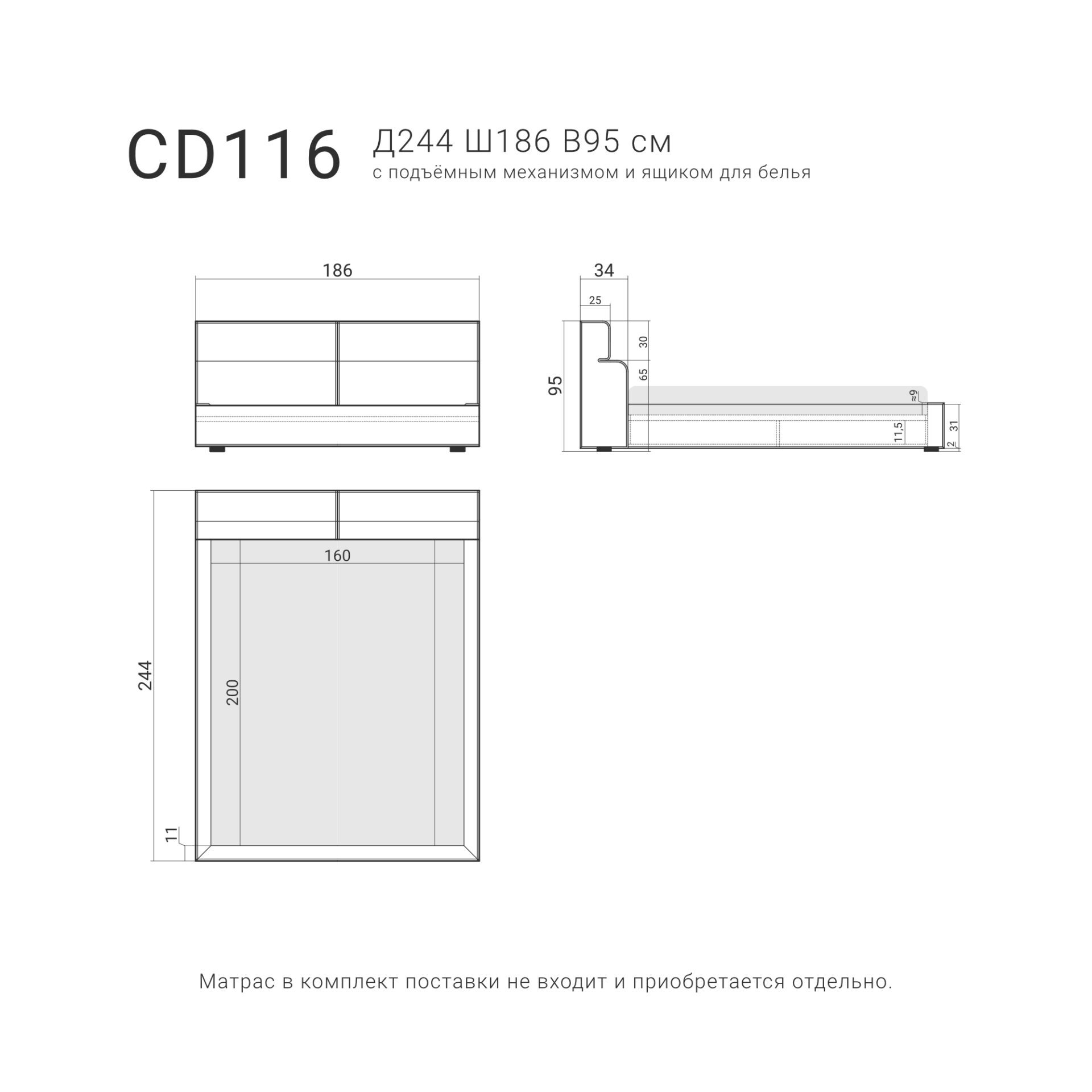 Кровать CASCADE CD116 с подъемным механизмом на матрас размером 1600*2000