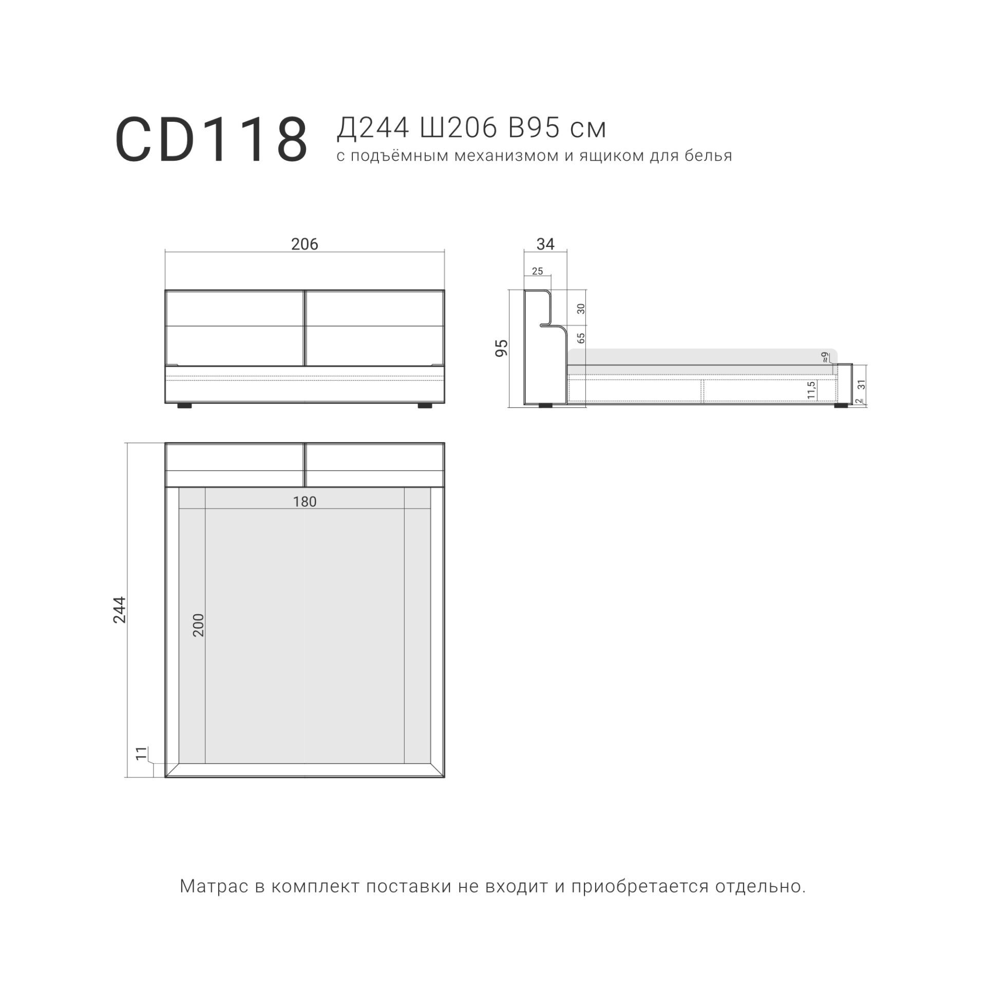 Кровать CASCADE CD118 с подъемным механизмом на матрас размером 1800*2000