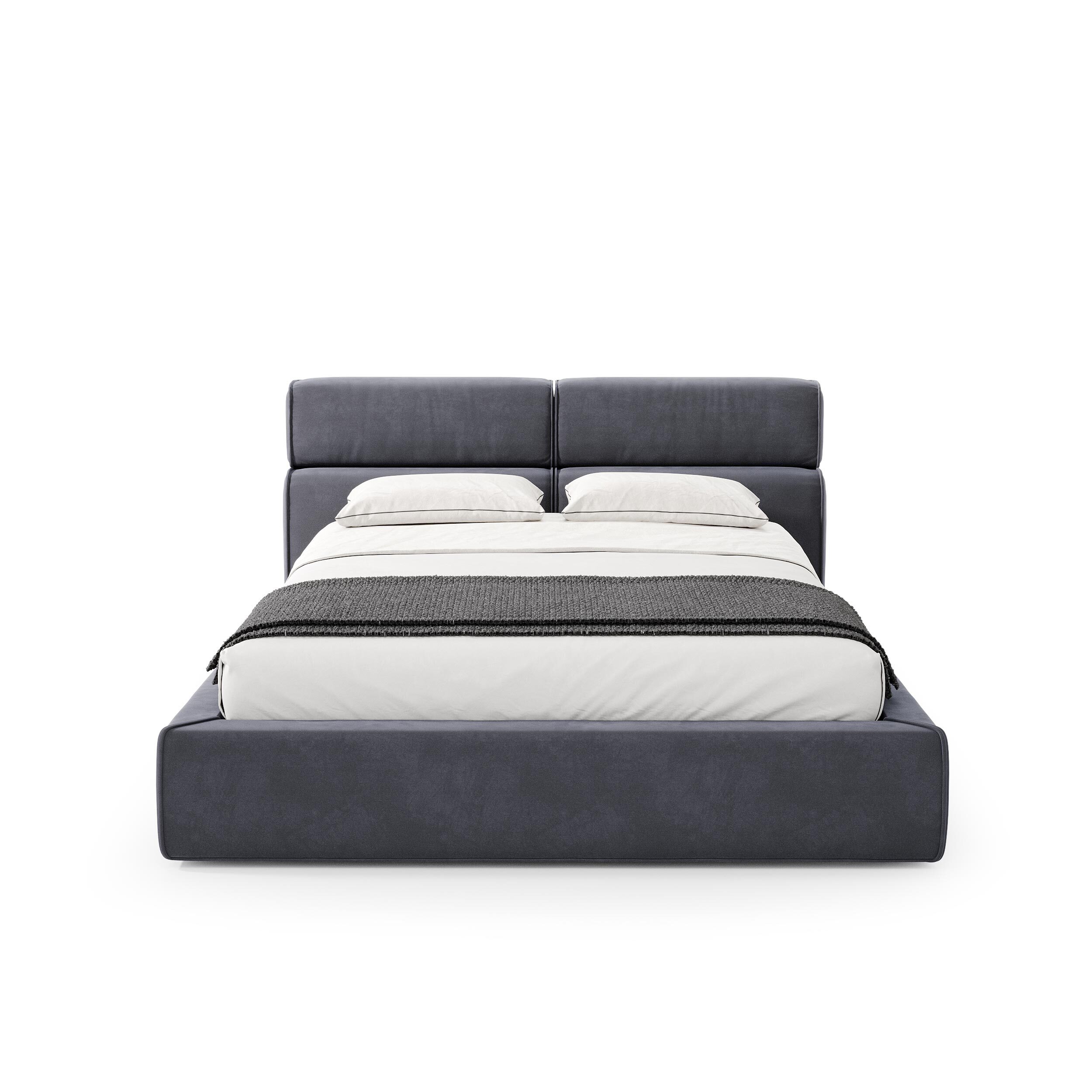 Мягкое изголовье кровати выполнено из прямоугольных блоков обтекаемой формы с эффектом «каскада». Продуманная до мелочей эргономика позволяет максимально удобно расположиться на кровати в любом положении.