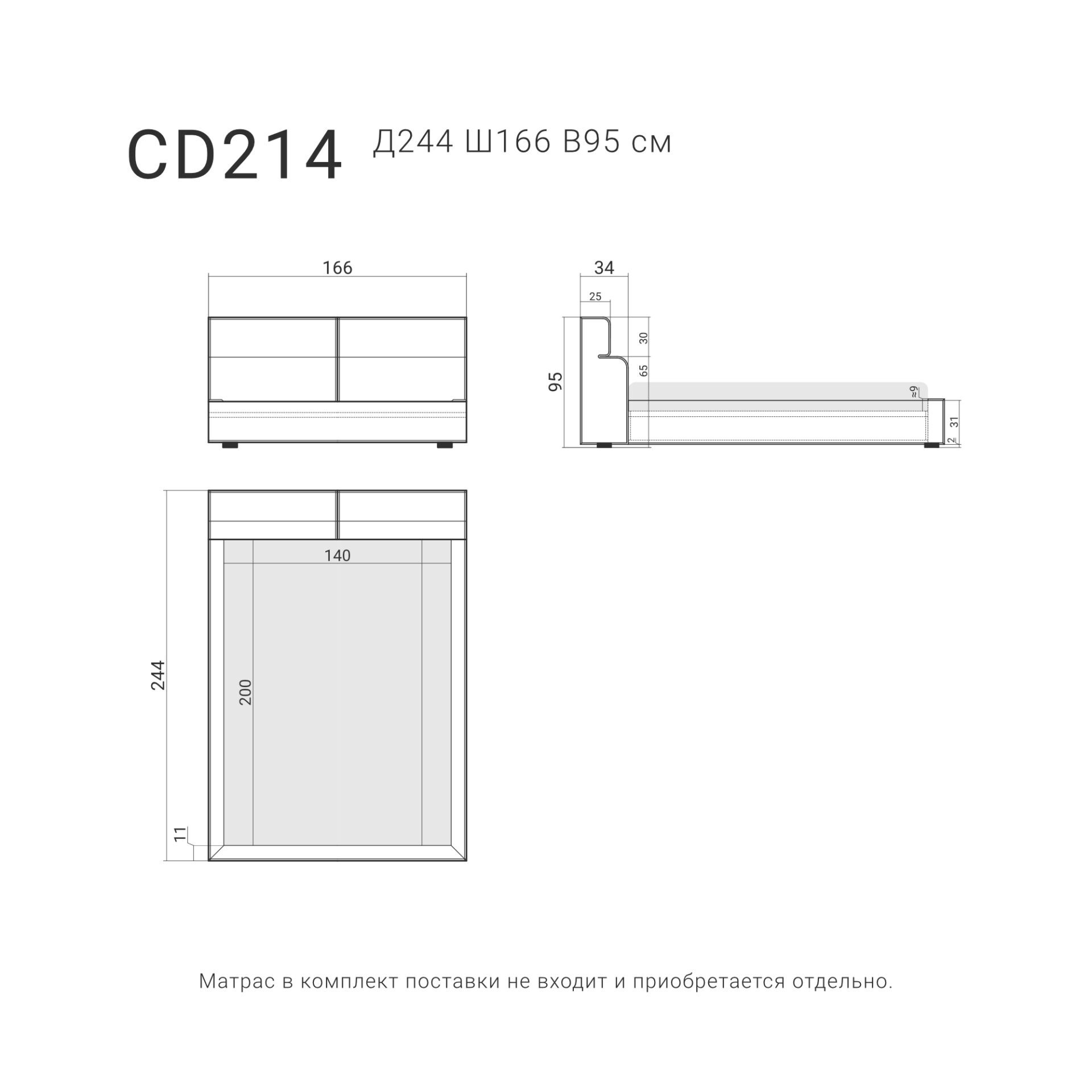 Кровать CASCADE CD214 на матрас размером 1400*2000