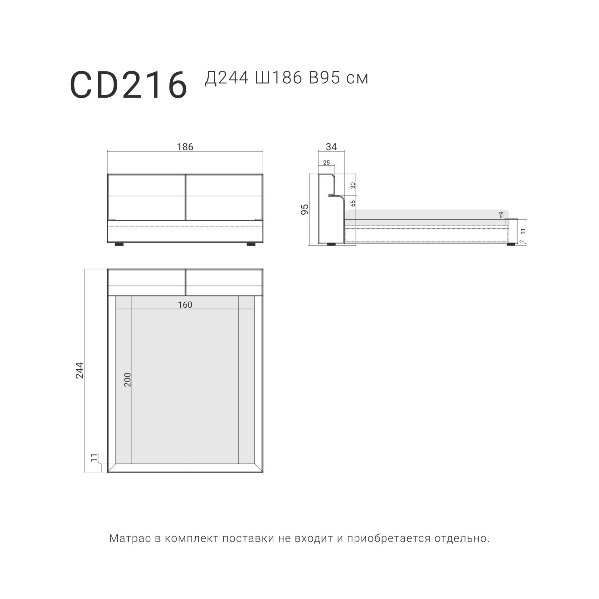 Кровать CASCADE CD216 на матрас размером 1600*2000
