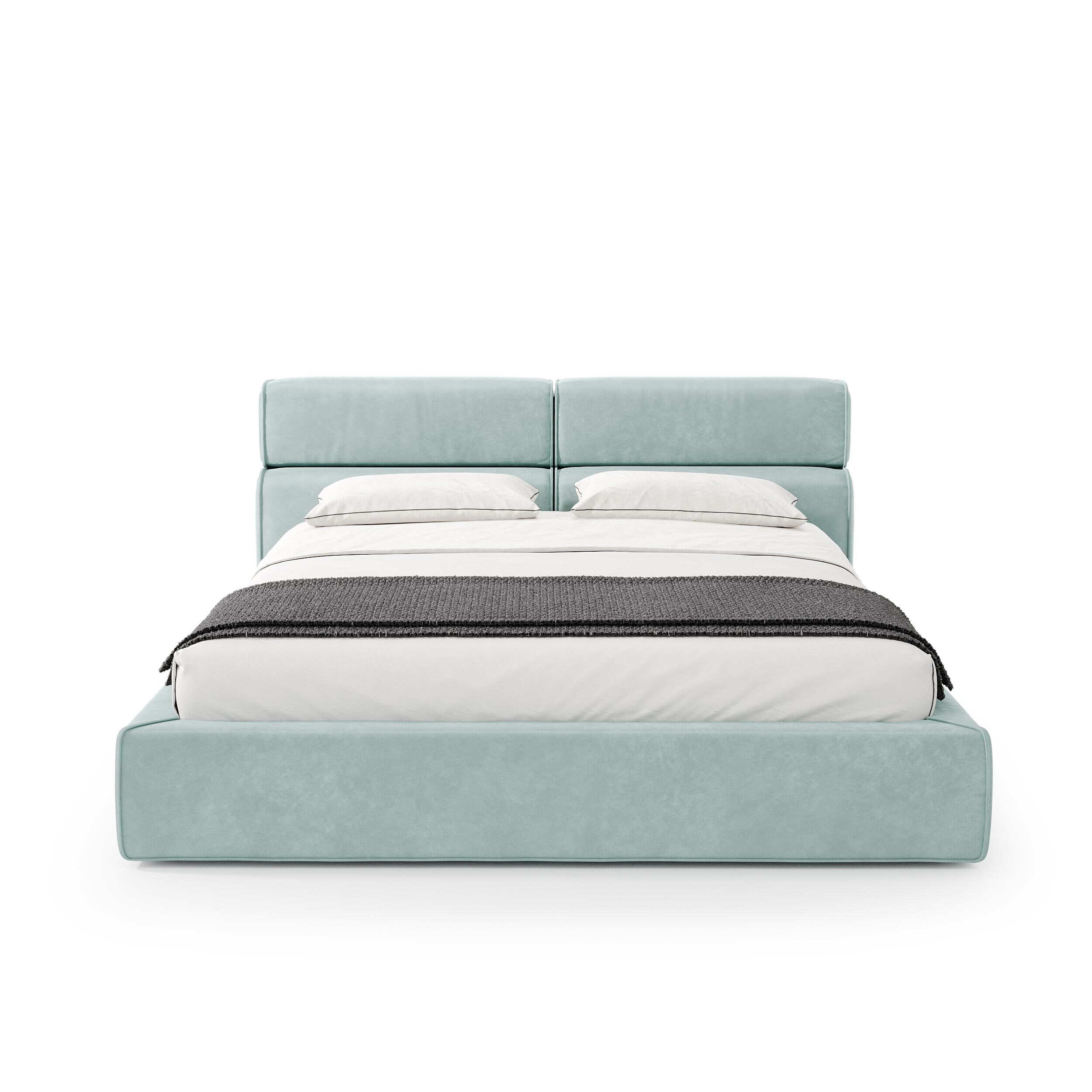 Мягкое изголовье кровати выполнено из прямоугольных блоков обтекаемой формы с эффектом «каскада». Продуманная до мелочей эргономика позволяет максимально удобно расположиться на кровати в любом положении.