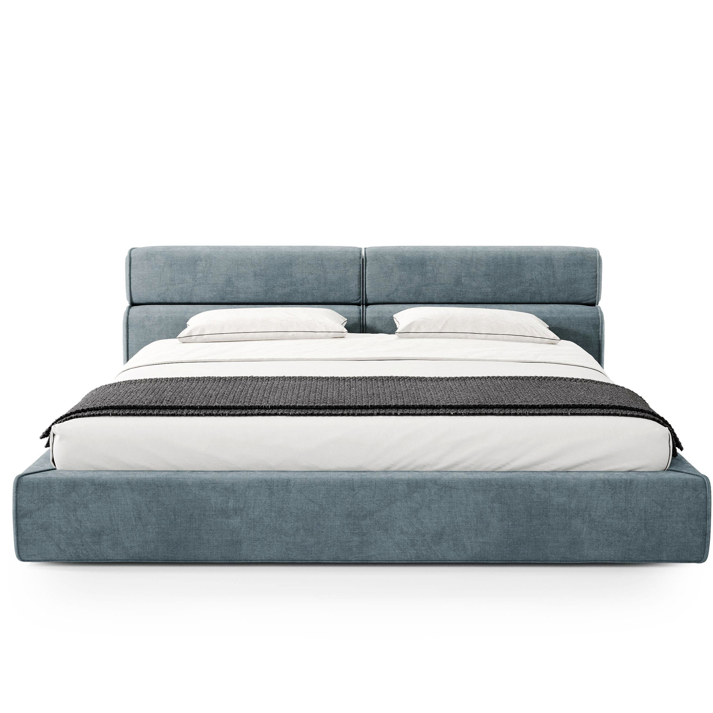 Мягкое изголовье кровати выполнено из прямоугольных блоков обтекаемой формы с эффектом «каскада». Продуманная до мелочей эргономика позволяет максимально удобно расположиться на кровати в любом положении.