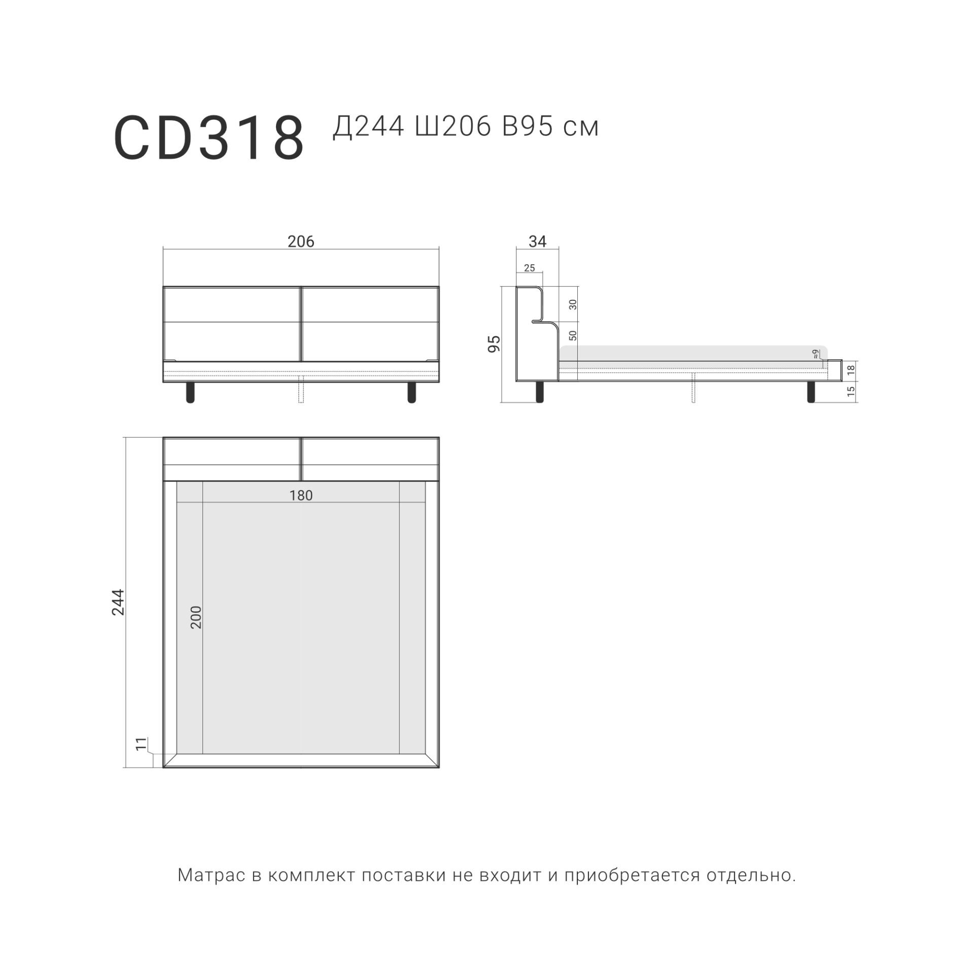Кровать CASCADE CD318 на матрас размером 1800*2000