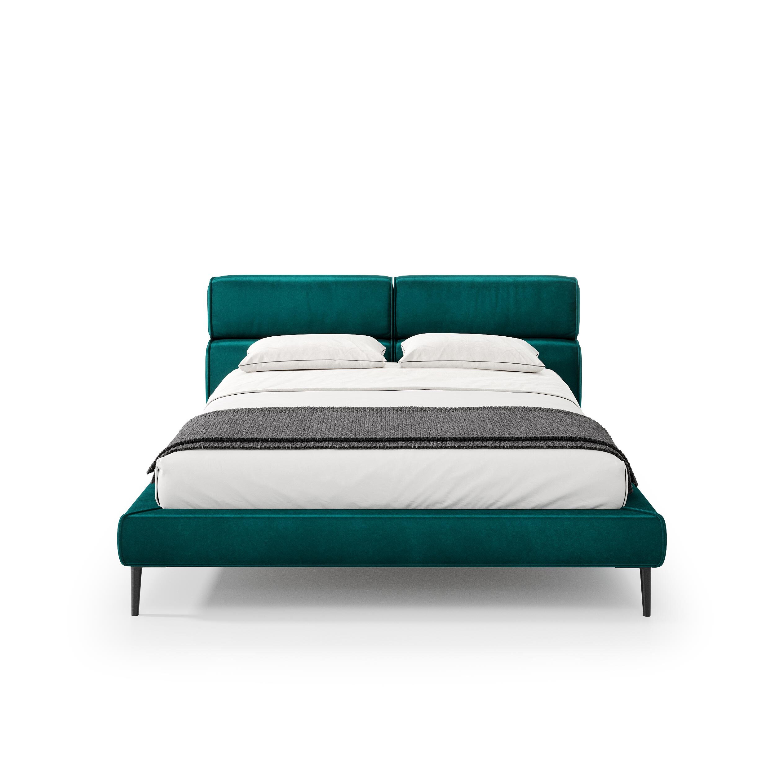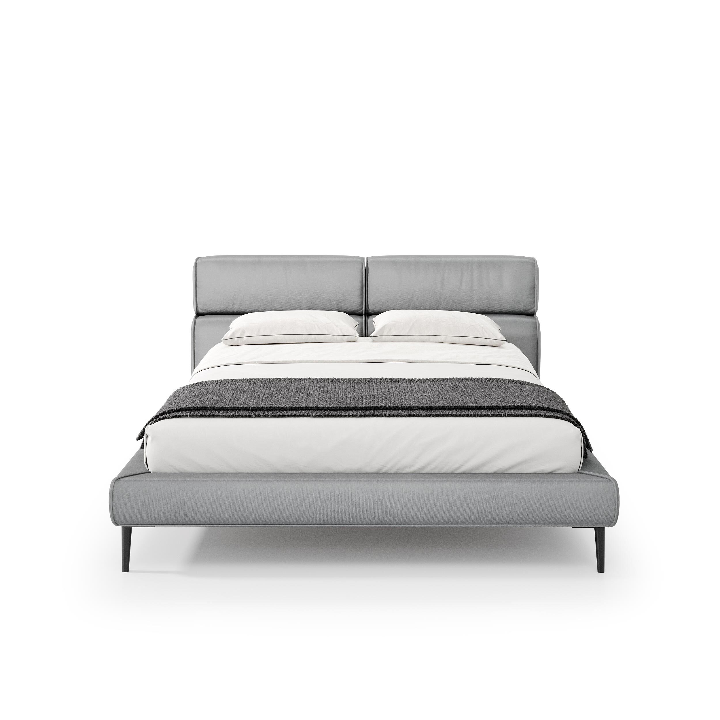 Мягкое изголовье кровати выполнено из прямоугольных блоков обтекаемой формы с эффектом «каскада». Продуманная до мелочей эргономика позволяет максимально удобно расположиться на кровати в любом положении.