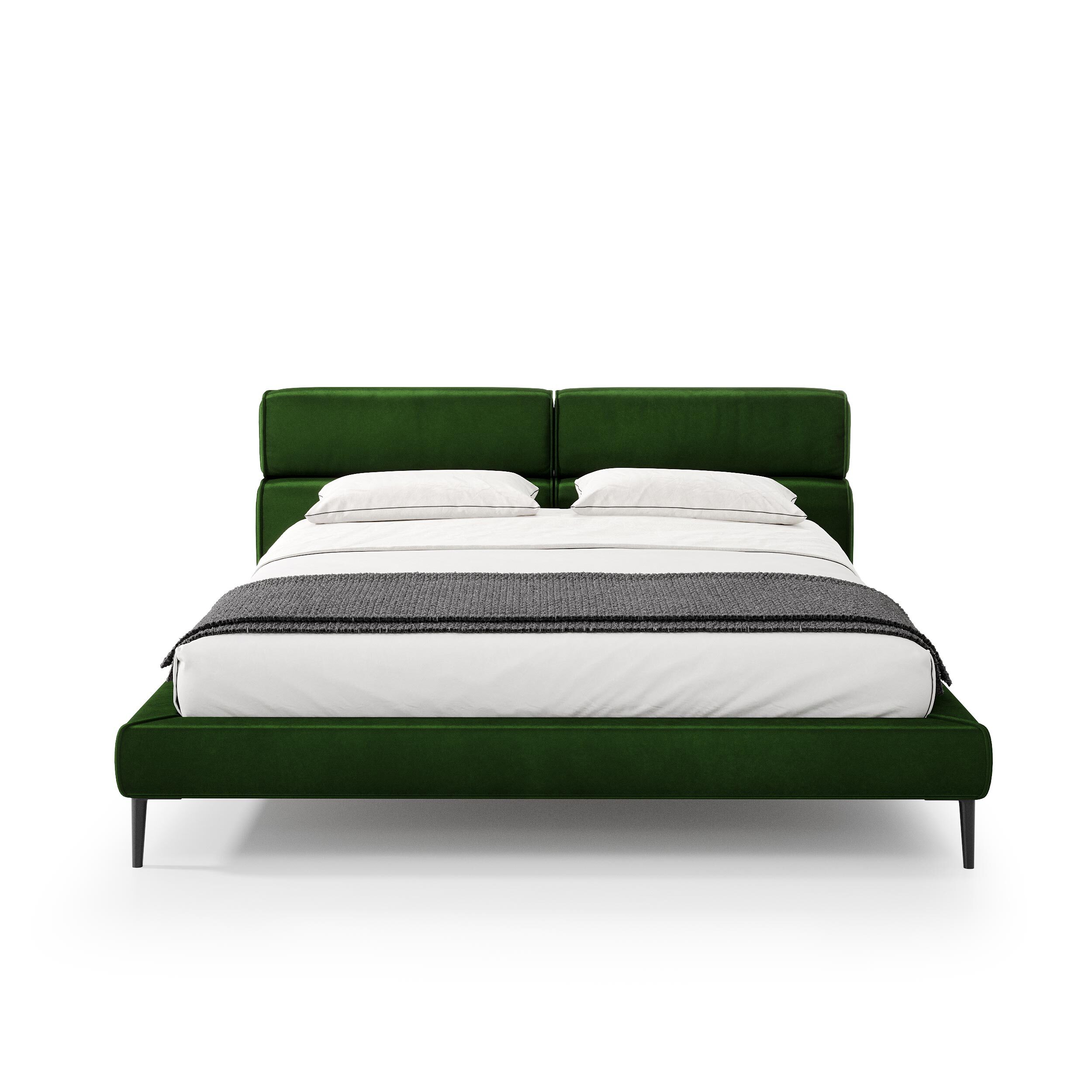 Мягкое изголовье кровати выполнено из прямоугольных блоков обтекаемой формы с эффектом «каскада». Продуманная до мелочей эргономика позволяет максимально удобно расположиться на кровати в любом положении.