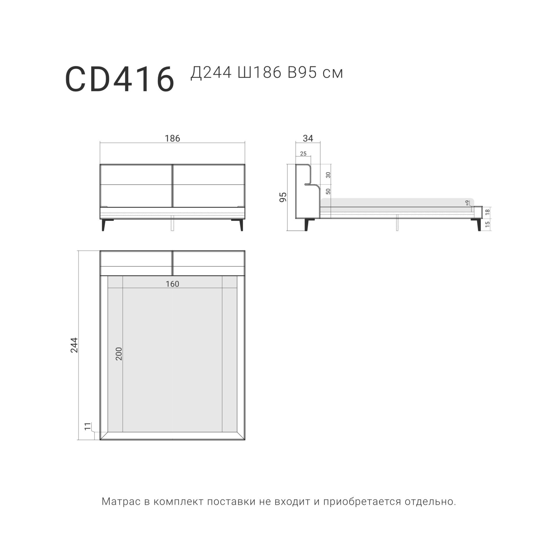 Кровать CASCADE CD416 на матрас размером 1600*2000