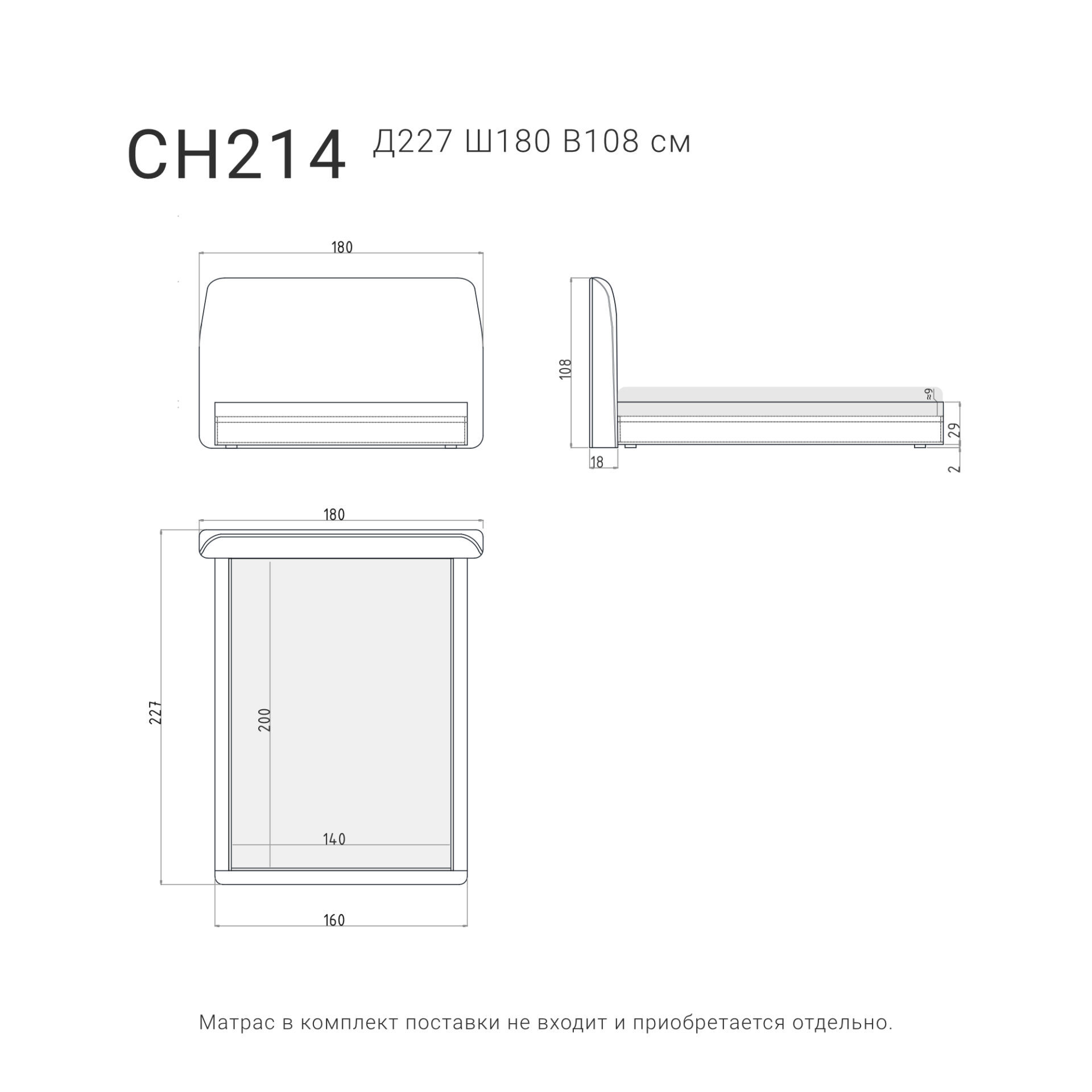 Модель поставляется в фабричной упаковке в разобранном виде. Матрас приобретается отдельно, что дает возможность подобрать идеальный вариант для комфортного сна. CHARM станет центральным элементом вашей спальни, подчеркивая индивидуальность и гармонию пространства.