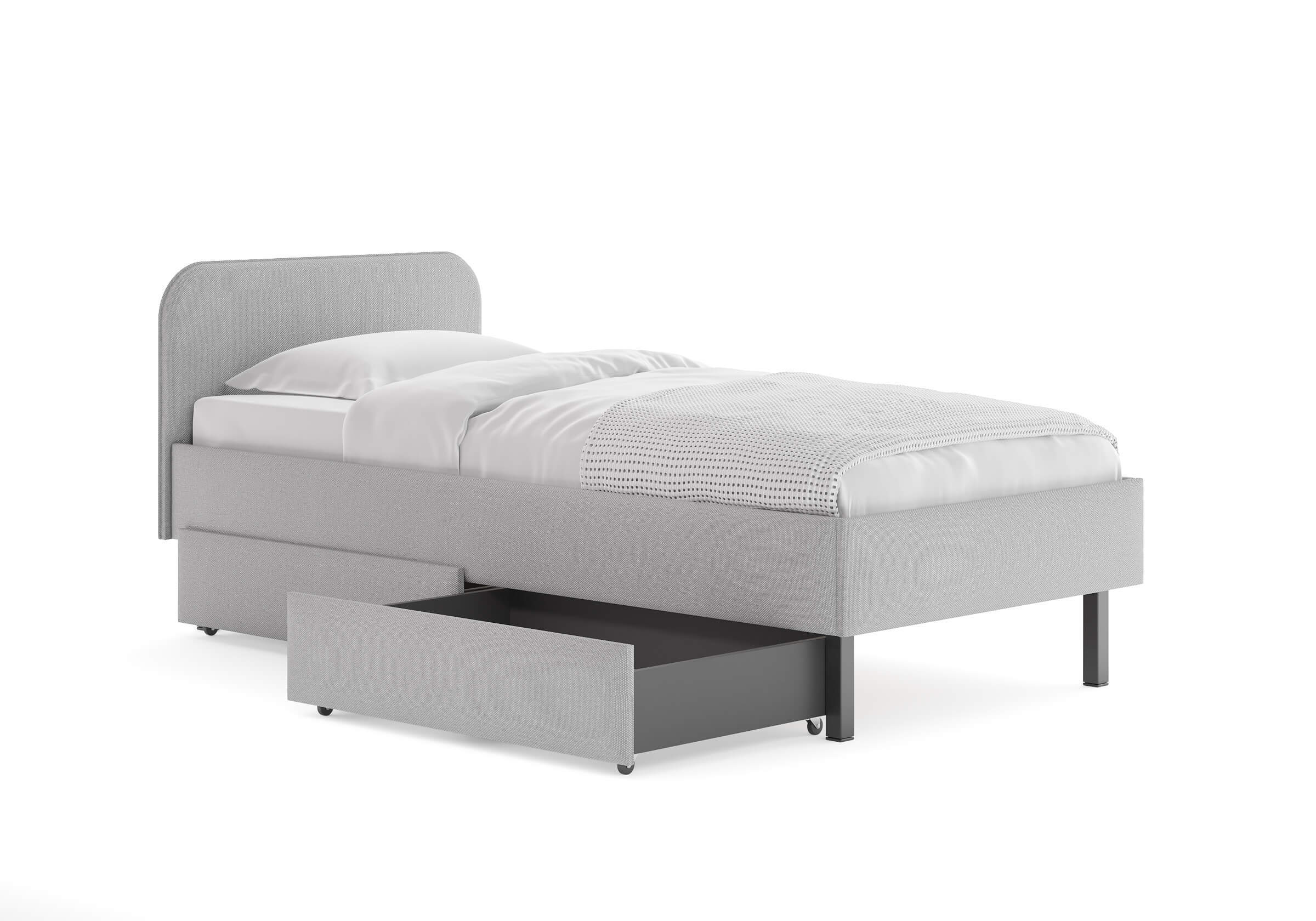 Лаконичная кровать Hanna подойдет для спален в скандинавском стиле и стиле минимализм. Мягкое изголовье в рогожке актуальных цветов, закругленные углы, декоративный кант, узкие царги делают кровать универсальной для большинства современных интерьеров. Увеличенное расстояние до царг способствует легкой уборке под кроватью роботом – пылесосом. Модель может комплектоваться только неразборным ортопедическим основанием с ламелями. Основание выполняет роль металлического каркаса кровати, изголовье и царги надежно крепятся между собой, обеспечивая прочность и устойчивость.Опционально устанавливаются ящики для хранения в ткани (приобретаются дополнительно) и тумбы выкатные(приобретаются дополнительно)