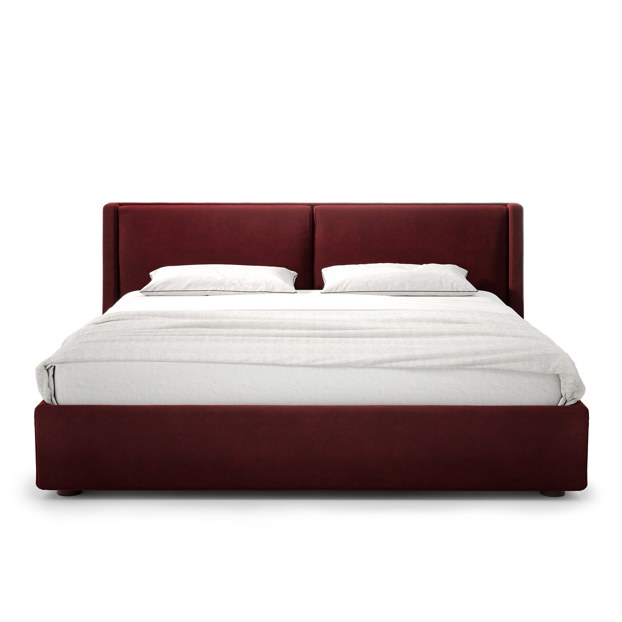 Высокое изголовье украшено двумя мягкими подушками, на которые удобно опереться, чтобы почитать перед сном или посмотреть любимый фильм.