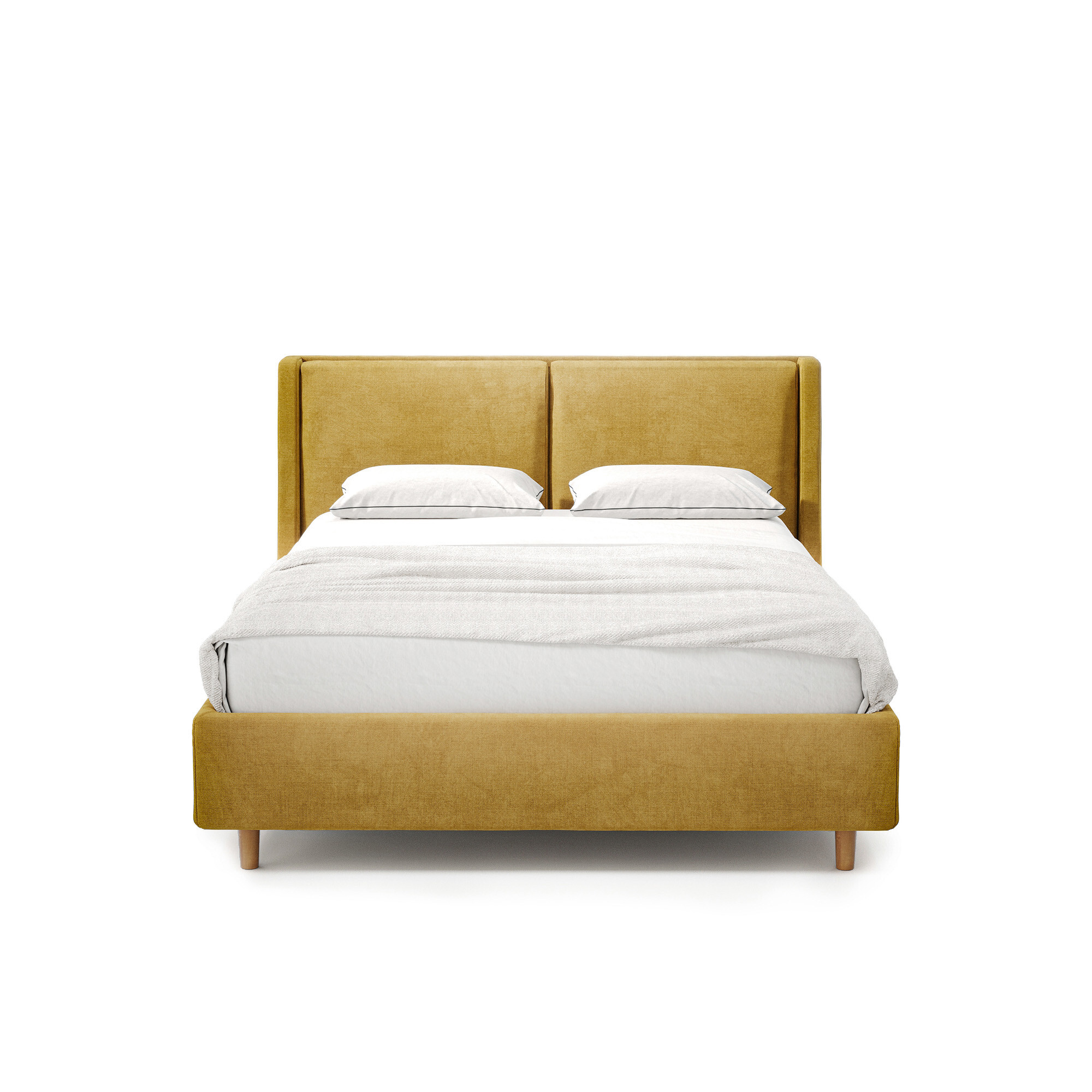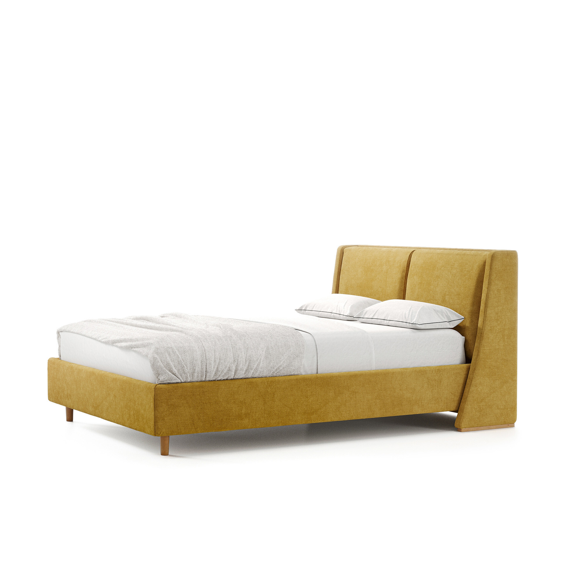 Утонченные изгибы линий изголовья и плавный переход от боковой части к приспинной делают эту кровать изящной и легкой. Аккуратные деревянные ножки и отсутствие видимых стыков деталей каркаса подчеркивают уникальный стиль этой кровати.