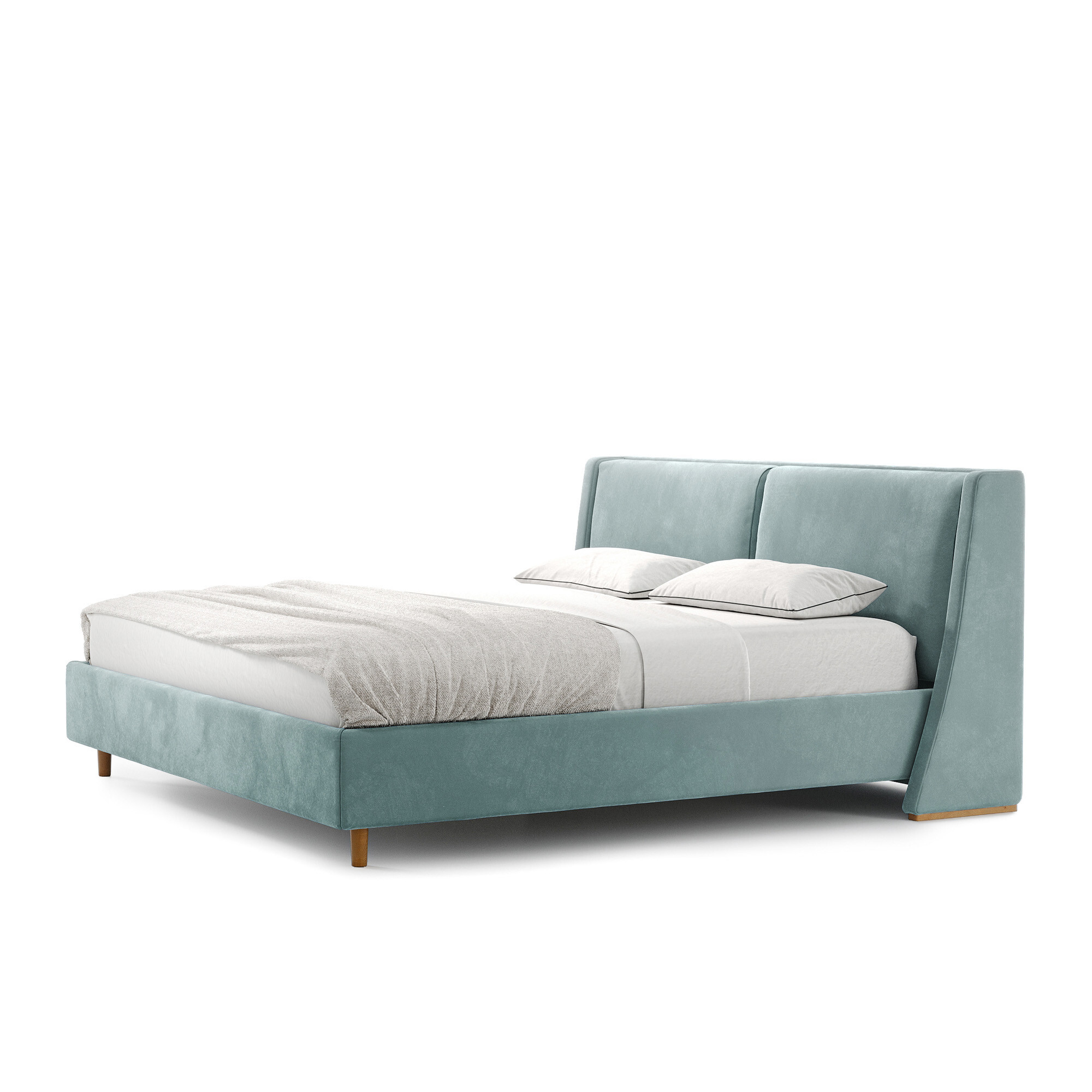 Утонченные изгибы линий изголовья и плавный переход от боковой части к приспинной делают эту кровать изящной и легкой. Аккуратные деревянные ножки и отсутствие видимых стыков деталей каркаса подчеркивают уникальный стиль этой кровати.