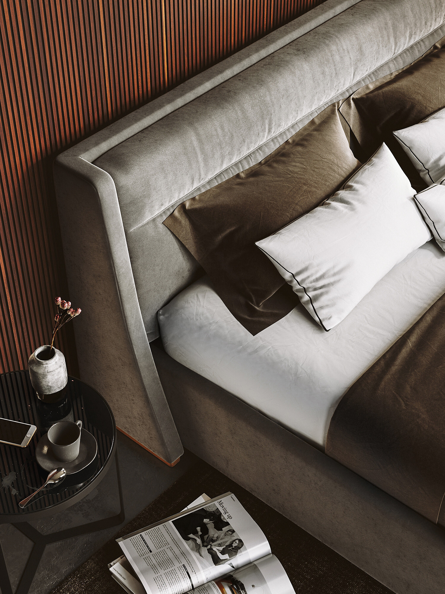 Стильная и удобная кровать Iris станет украшением разных интерьерных решений.