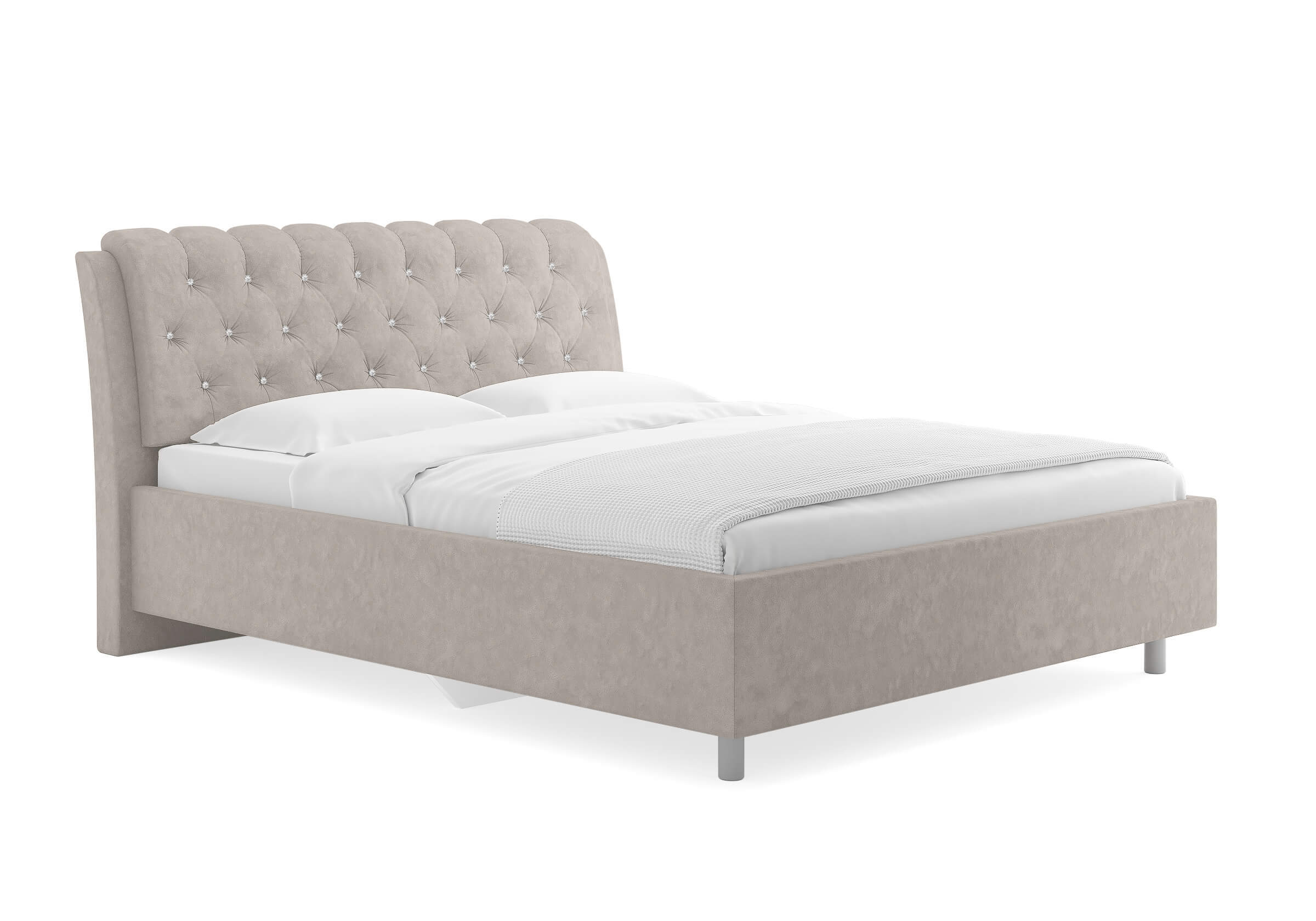 Элегантная интерьерная кровать с изголовьем, украшенным декоративными пуговицами и глубокой пиковкой. Модель изготовлена из ДСП. При необходимости кровать может быть укомплектована разборным или неразборным металлическим основанием с ламелями, подъемным механизмом с бельевым ящиком, трансформируемым основанием Aquarius.
