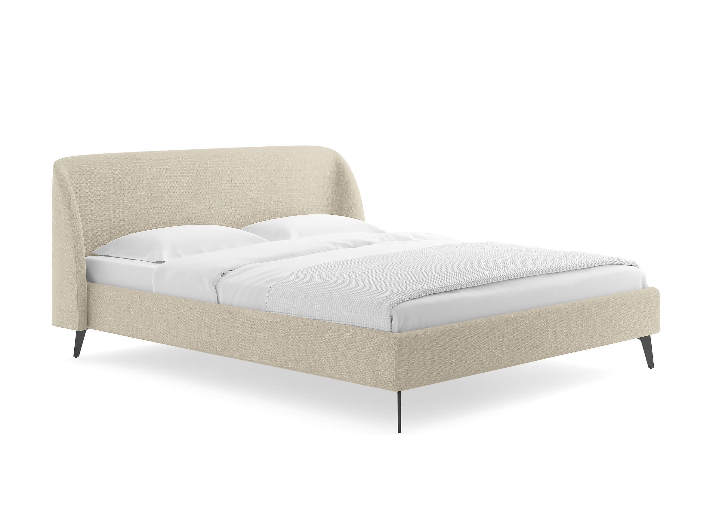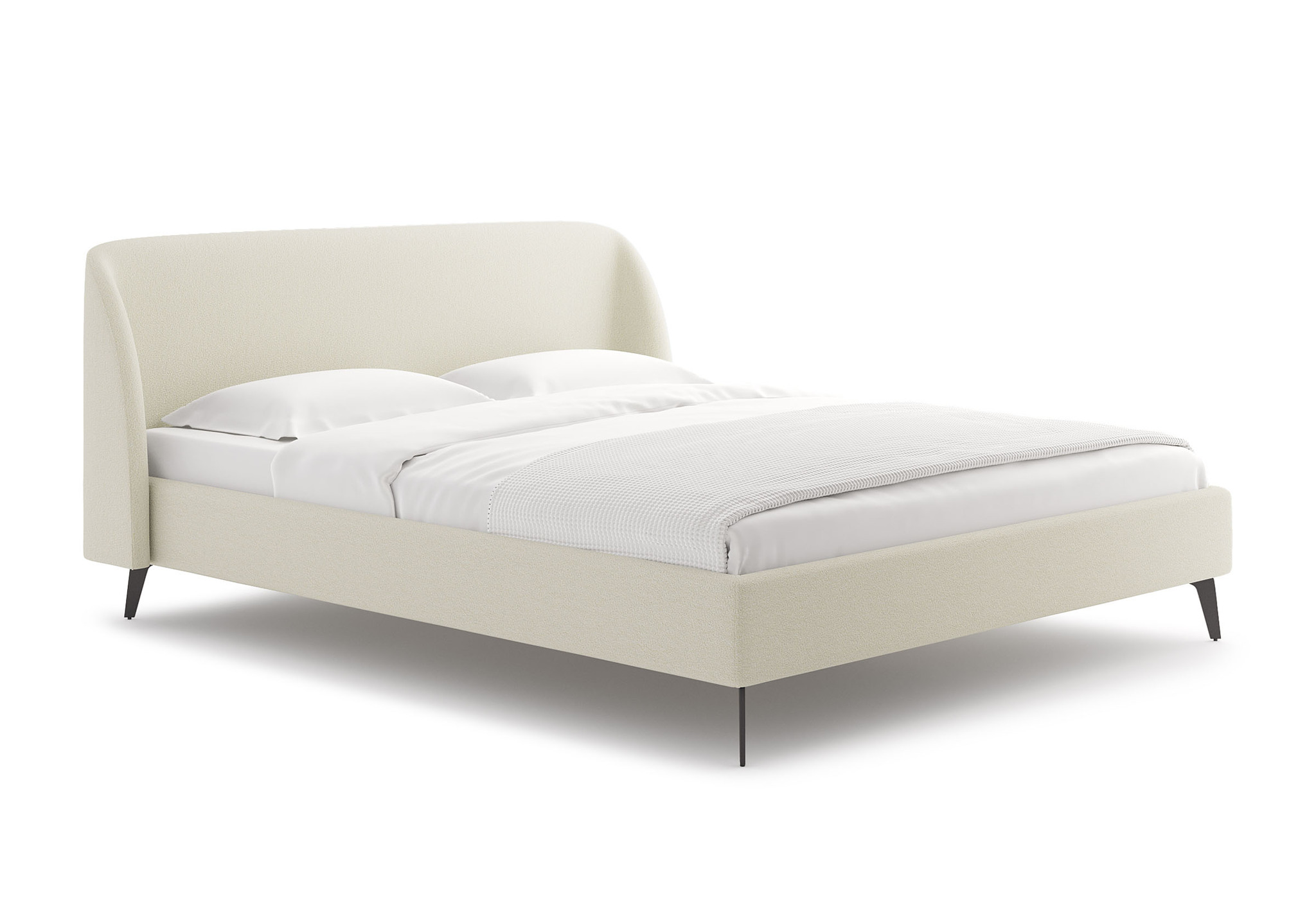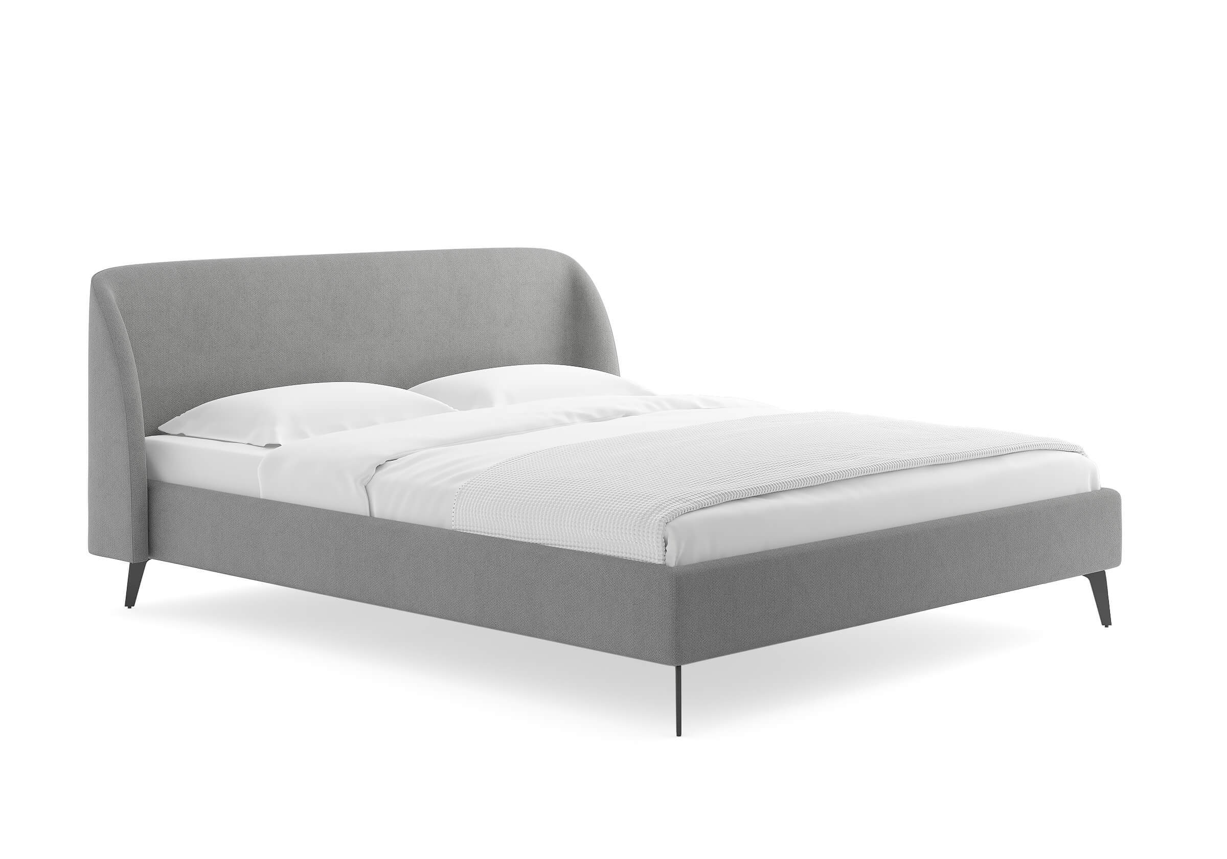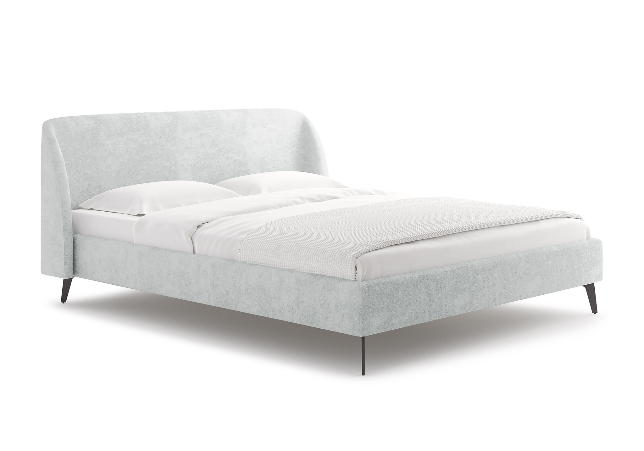 Кровать с закругленным изголовьем делает спальное место особенно уютным. Ее дизайн удачно подойдет для интерьеров в современном стиле, стиле минимализм и стиле mid-century модерн. Спинка кровати выполнена в основной ткани, благодаря этому ее можно установить в центре комнаты. Узкие царги и стильные металлические ножки делают кровать легкой и лаконичной. Кант на изголовье выступает в качестве декора, подчеркивает ее выразительность. Увеличенная прочность кровати достигается за счет металлического каркаса по периметру. Расстояние от пола до царг способствует легкой уборке под кроватью, в том числе роботом – пылесосом.