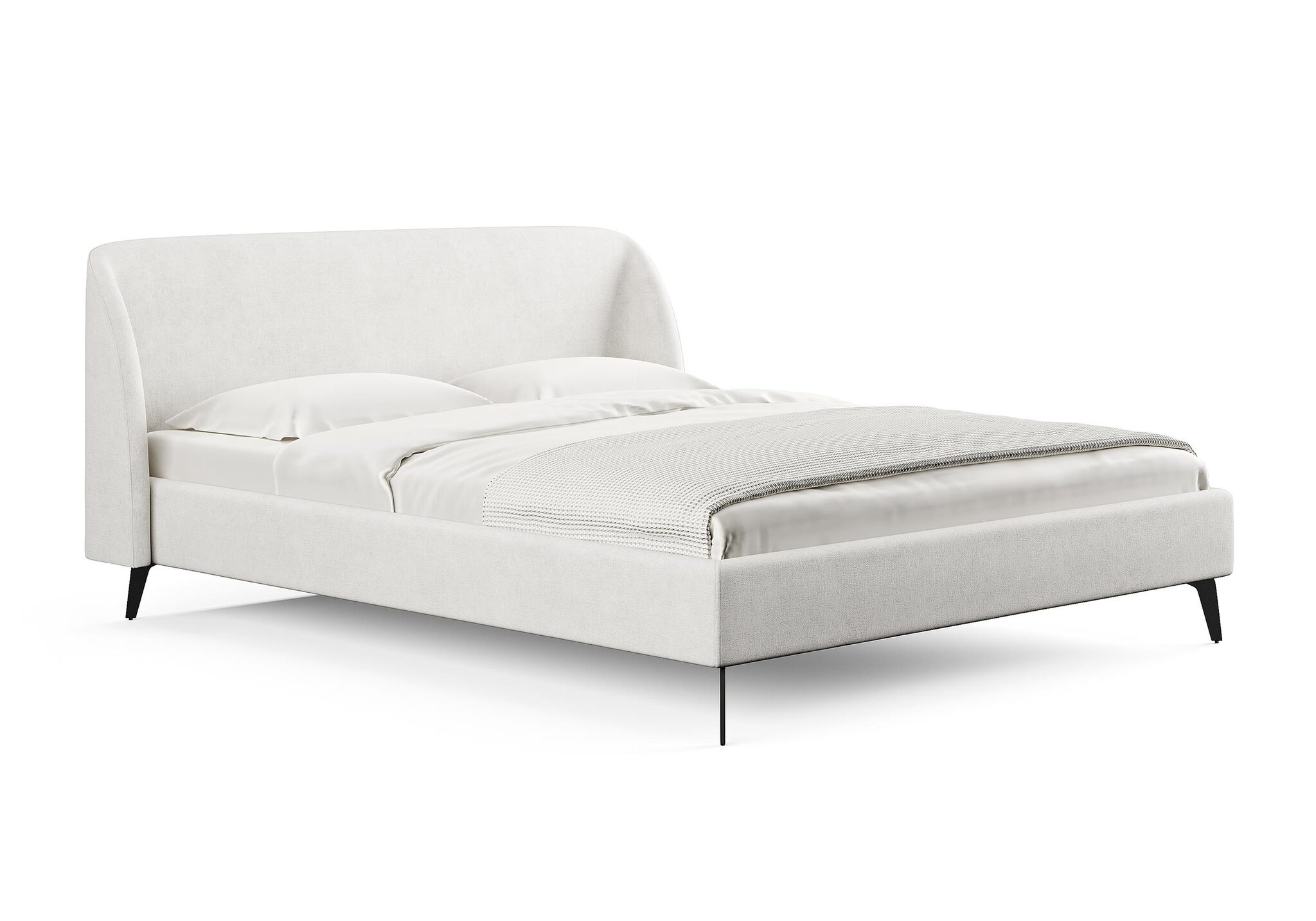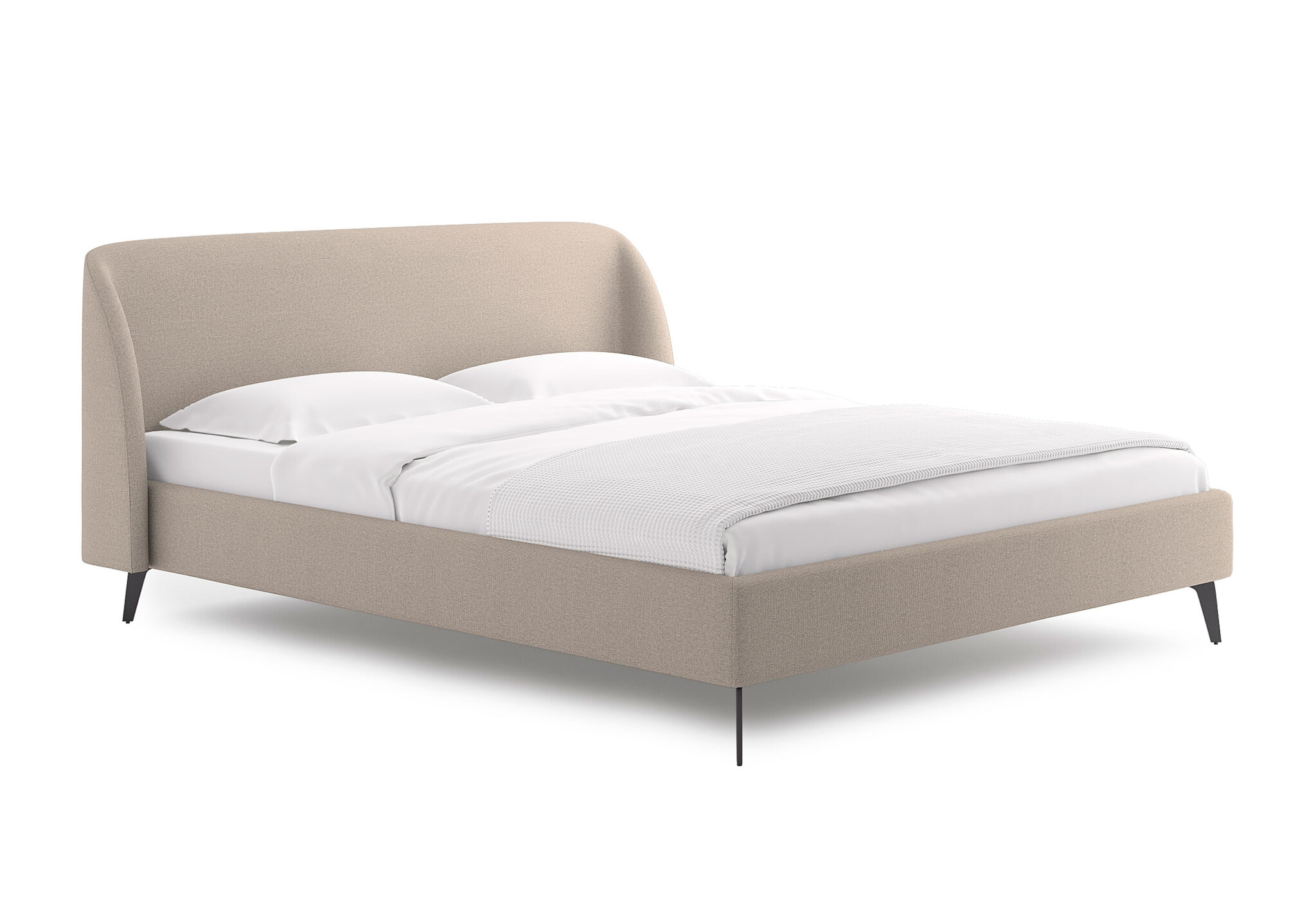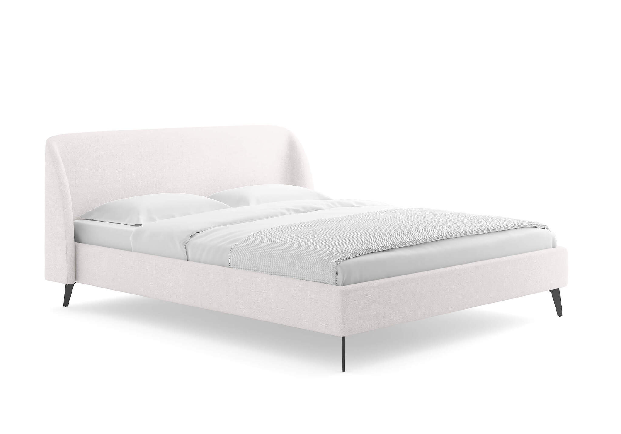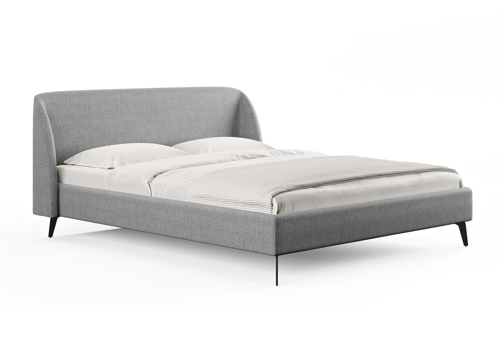 Кровать с закругленным изголовьем делает спальное место особенно уютным. Ее дизайн удачно подойдет для интерьеров в современном стиле, стиле минимализм и стиле mid-century модерн. Спинка кровати выполнена в основной ткани, благодаря этому ее можно установить в центре комнаты. Узкие царги и стильные металлические ножки делают кровать легкой и лаконичной. Кант на изголовье выступает в качестве декора, подчеркивает ее выразительность. Увеличенная прочность кровати достигается за счет металлического каркаса по периметру. Расстояние от пола до царг способствует легкой уборке под кроватью, в том числе роботом – пылесосом.