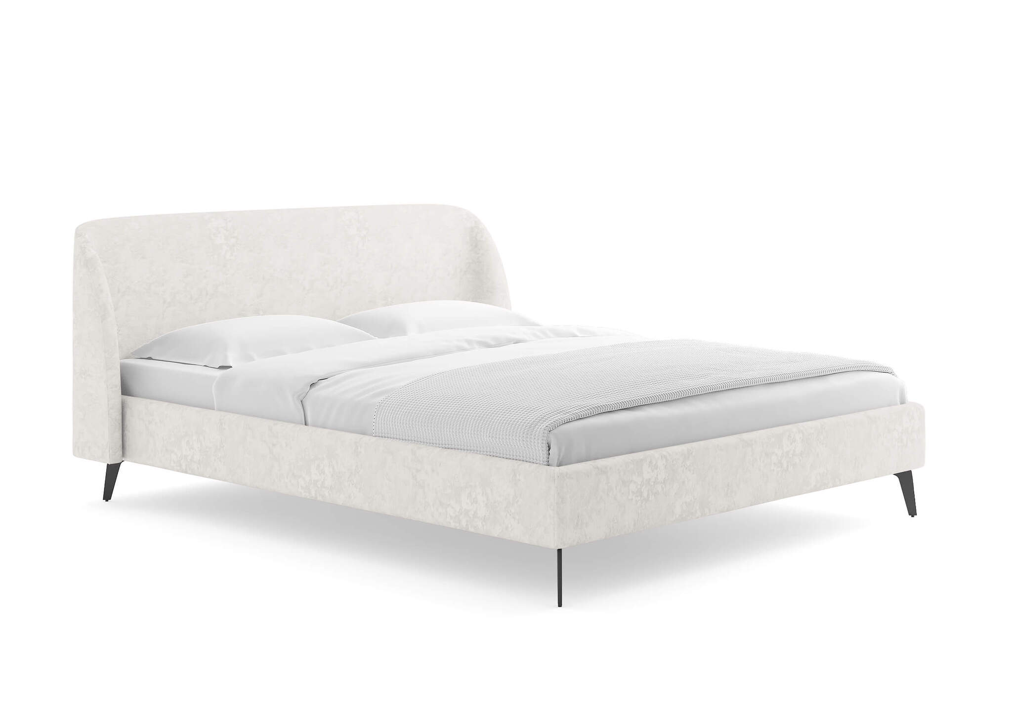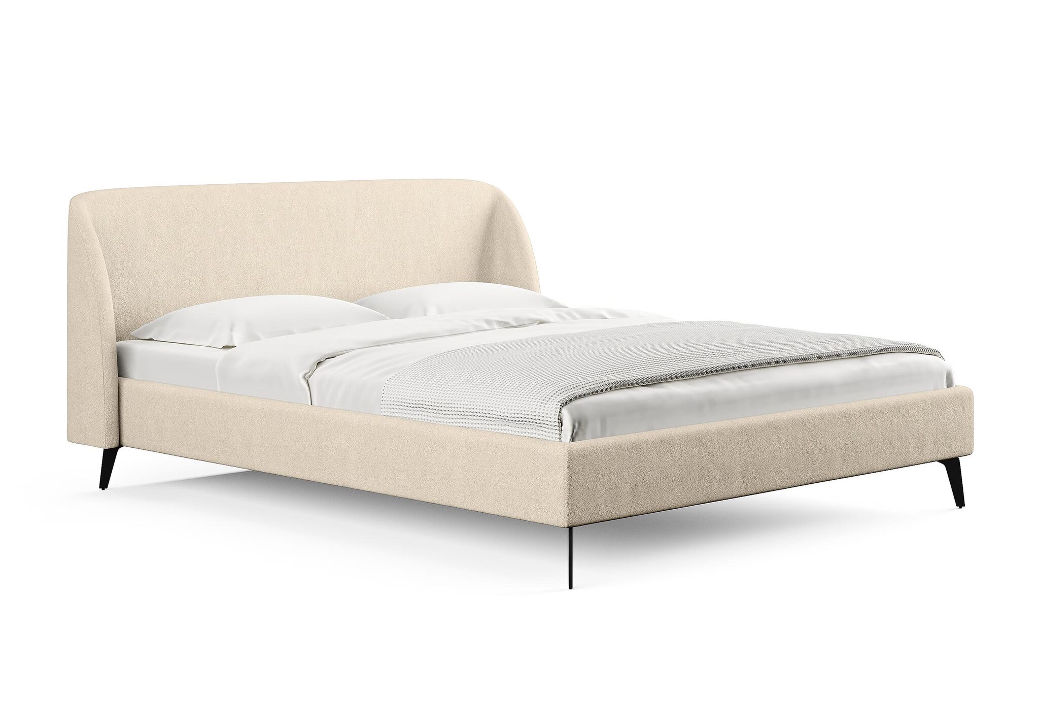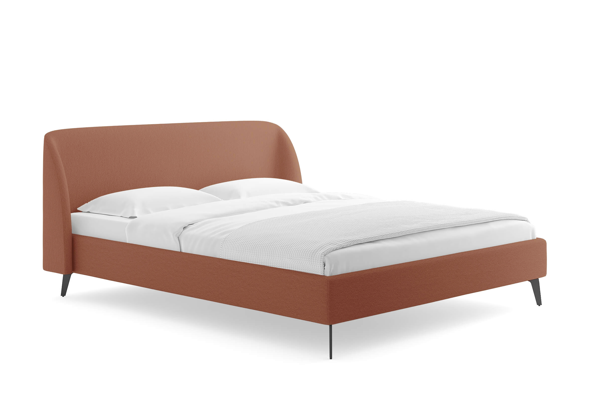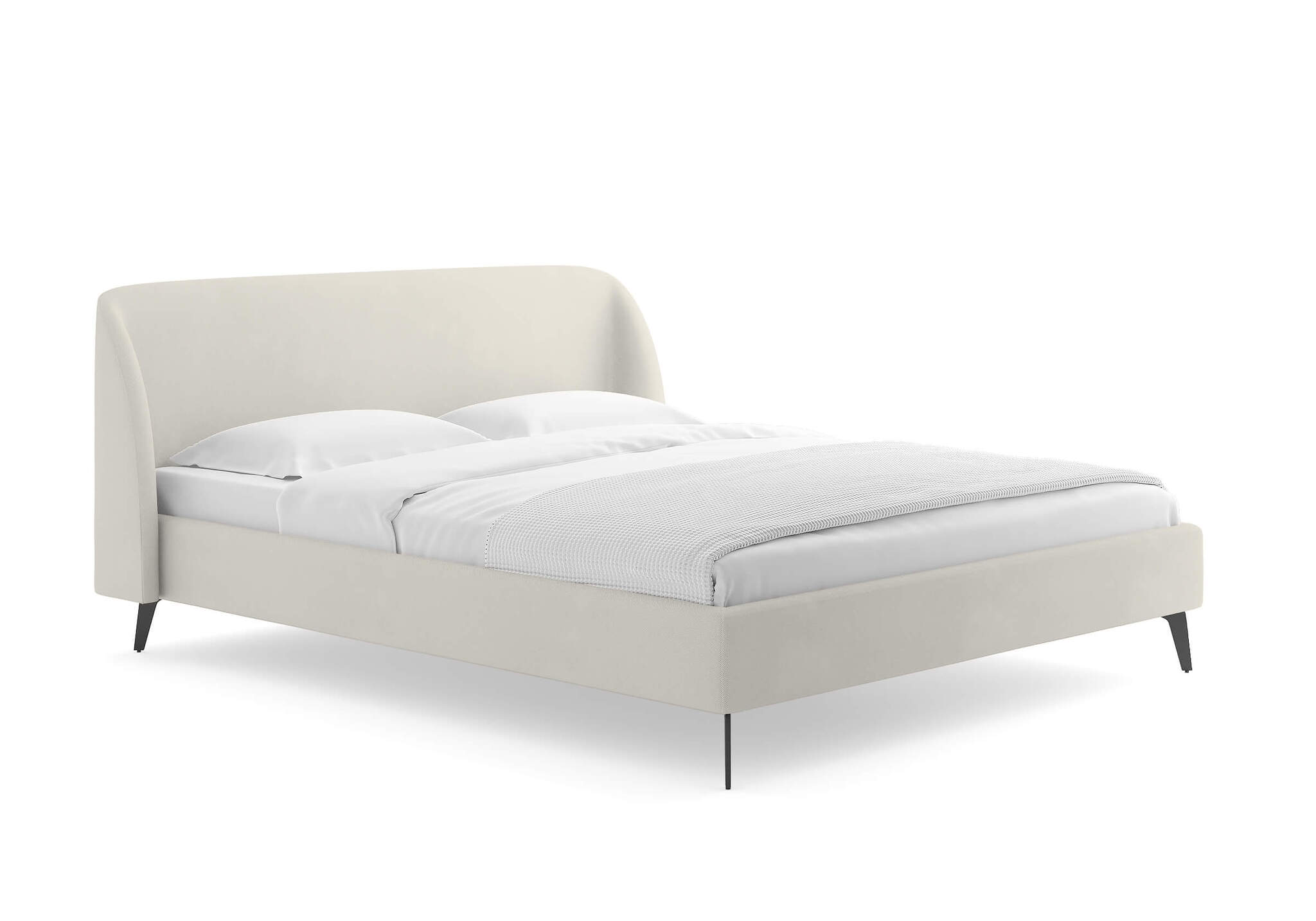 Кровать с закругленным изголовьем делает спальное место особенно уютным. Ее дизайн удачно подойдет для интерьеров в современном стиле, стиле минимализм и стиле mid-century модерн. Спинка кровати выполнена в основной ткани, благодаря этому ее можно установить в центре комнаты. Узкие царги и стильные металлические ножки делают кровать легкой и лаконичной. Кант на изголовье выступает в качестве декора, подчеркивает ее выразительность. Увеличенная прочность кровати достигается за счет металлического каркаса по периметру. Расстояние от пола до царг способствует легкой уборке под кроватью, в том числе роботом – пылесосом.