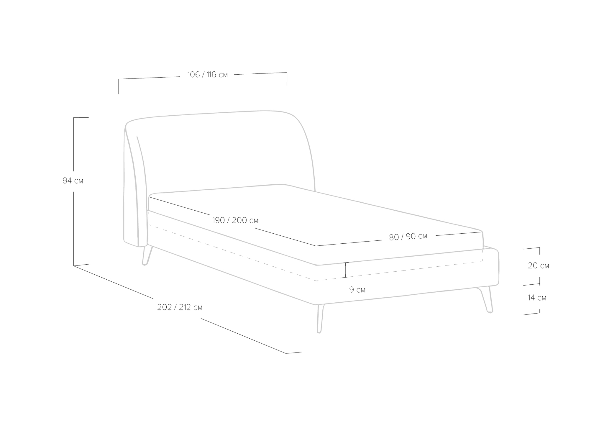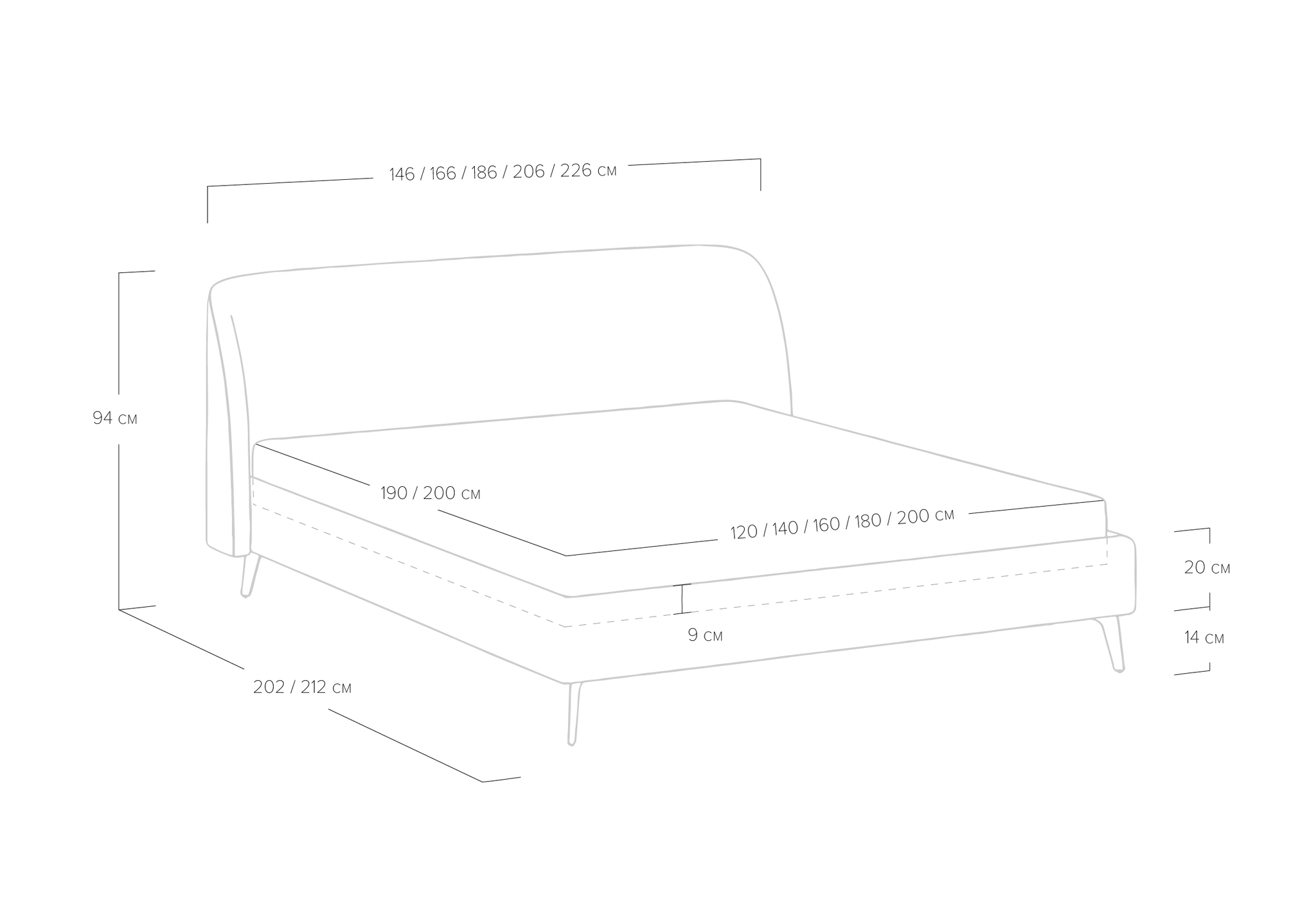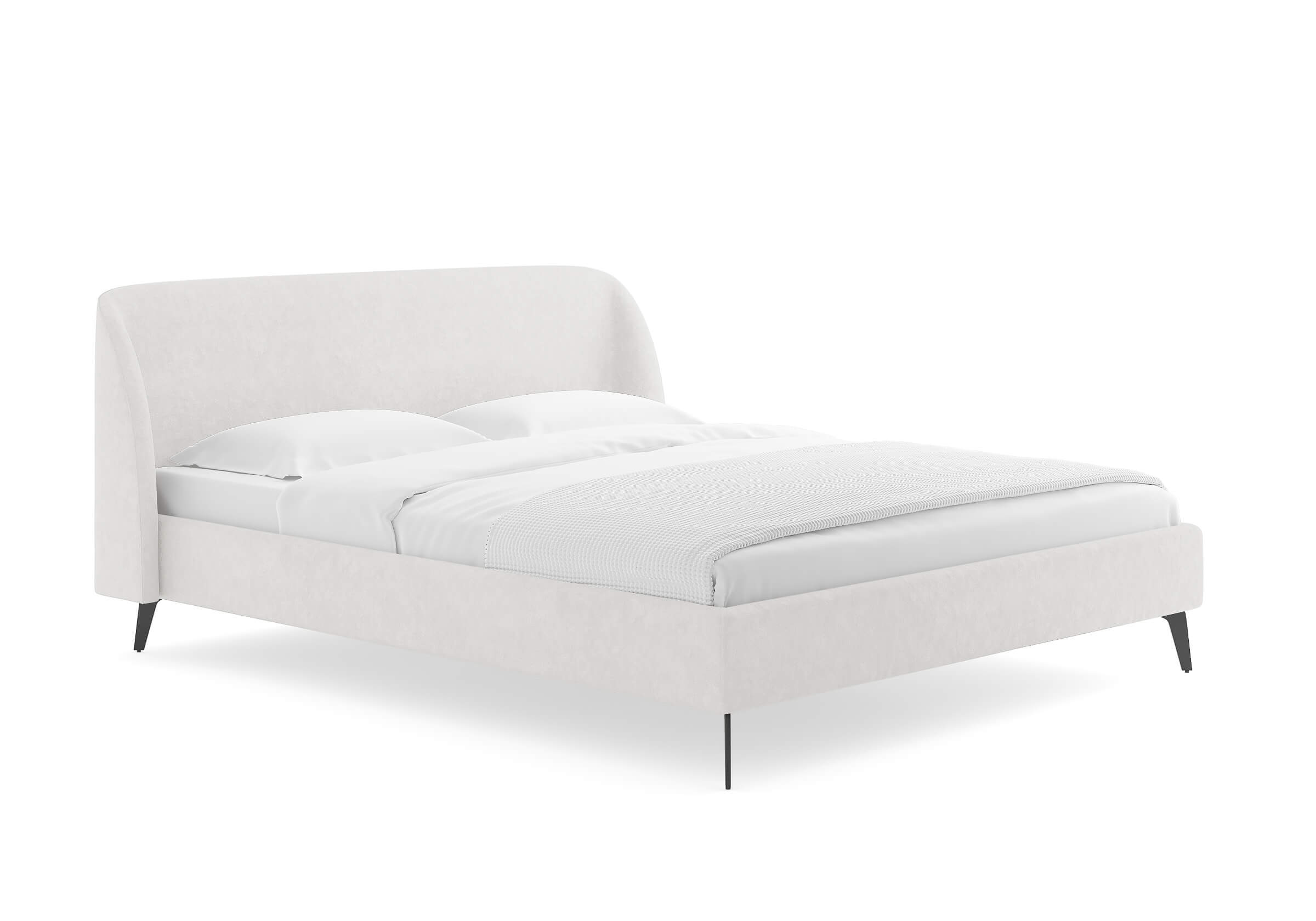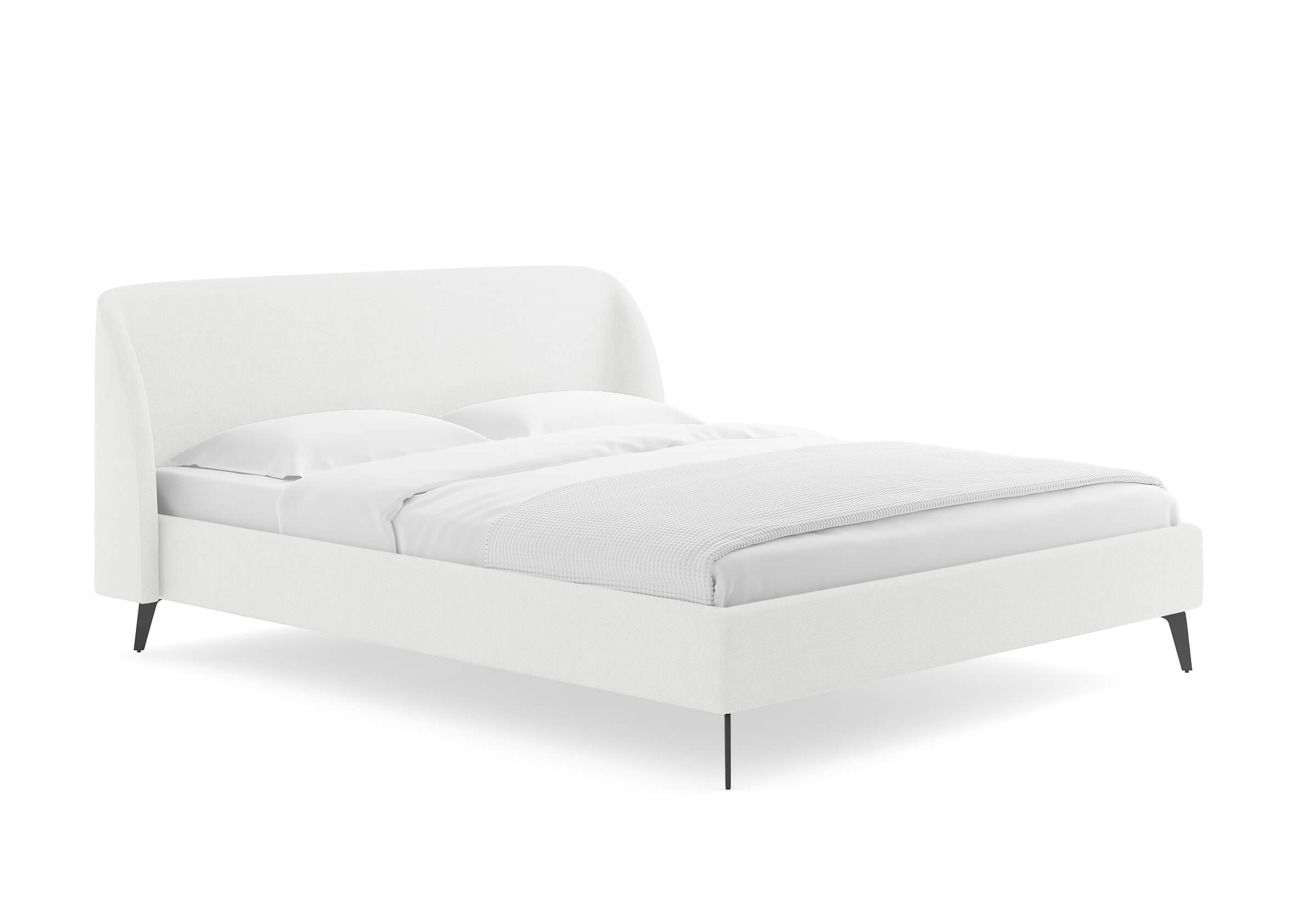 Кровать с закругленным изголовьем делает спальное место особенно уютным. Ее дизайн удачно подойдет для интерьеров в современном стиле, стиле минимализм и стиле mid-century модерн. Спинка кровати выполнена в основной ткани, благодаря этому ее можно установить в центре комнаты. Узкие царги и стильные металлические ножки делают кровать легкой и лаконичной. Кант на изголовье выступает в качестве декора, подчеркивает ее выразительность. Увеличенная прочность кровати достигается за счет металлического каркаса по периметру. Расстояние от пола до царг способствует легкой уборке под кроватью, в том числе роботом – пылесосом.
