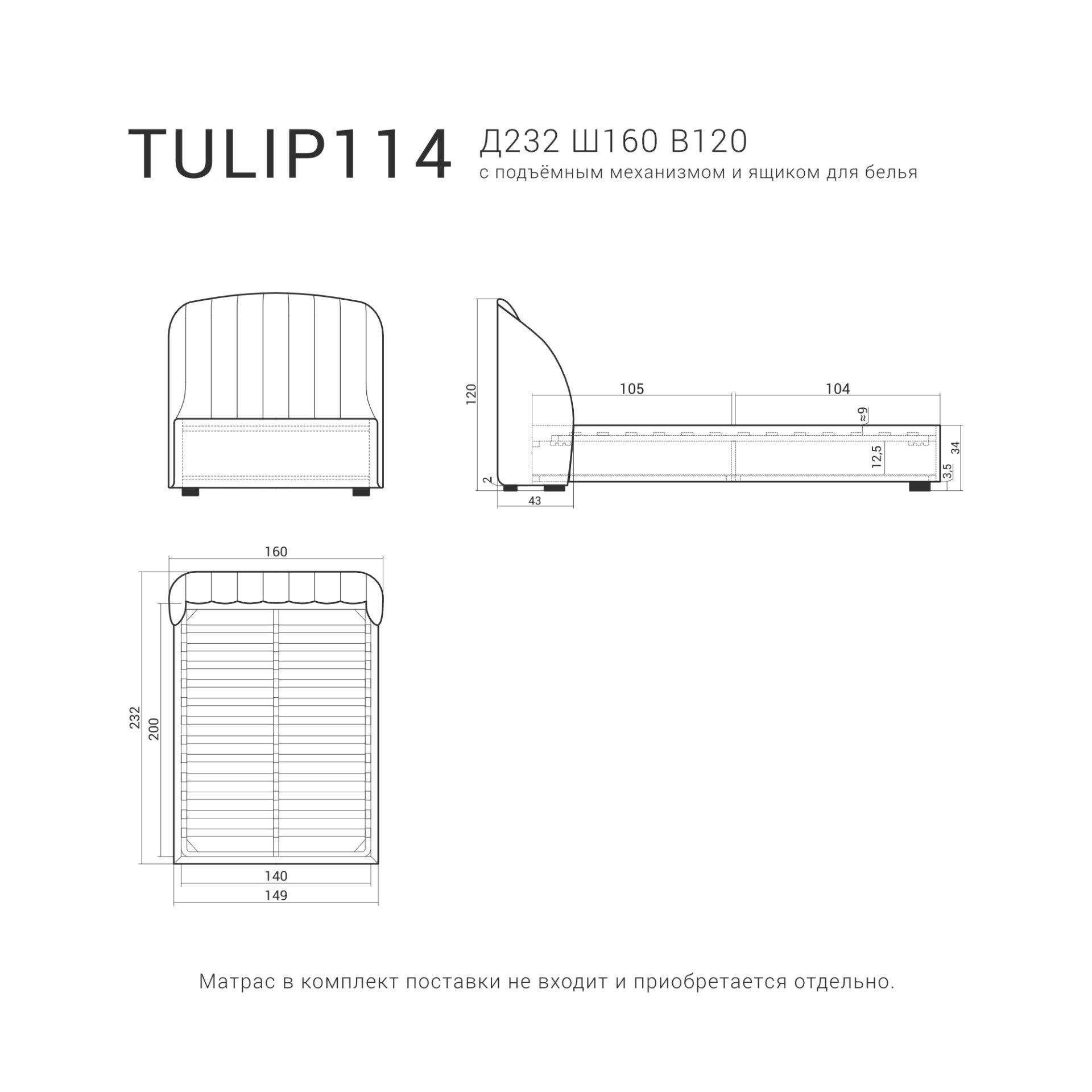 Кровать Tulip 1 с подъемным механизмом на матрас размером 1400*2000