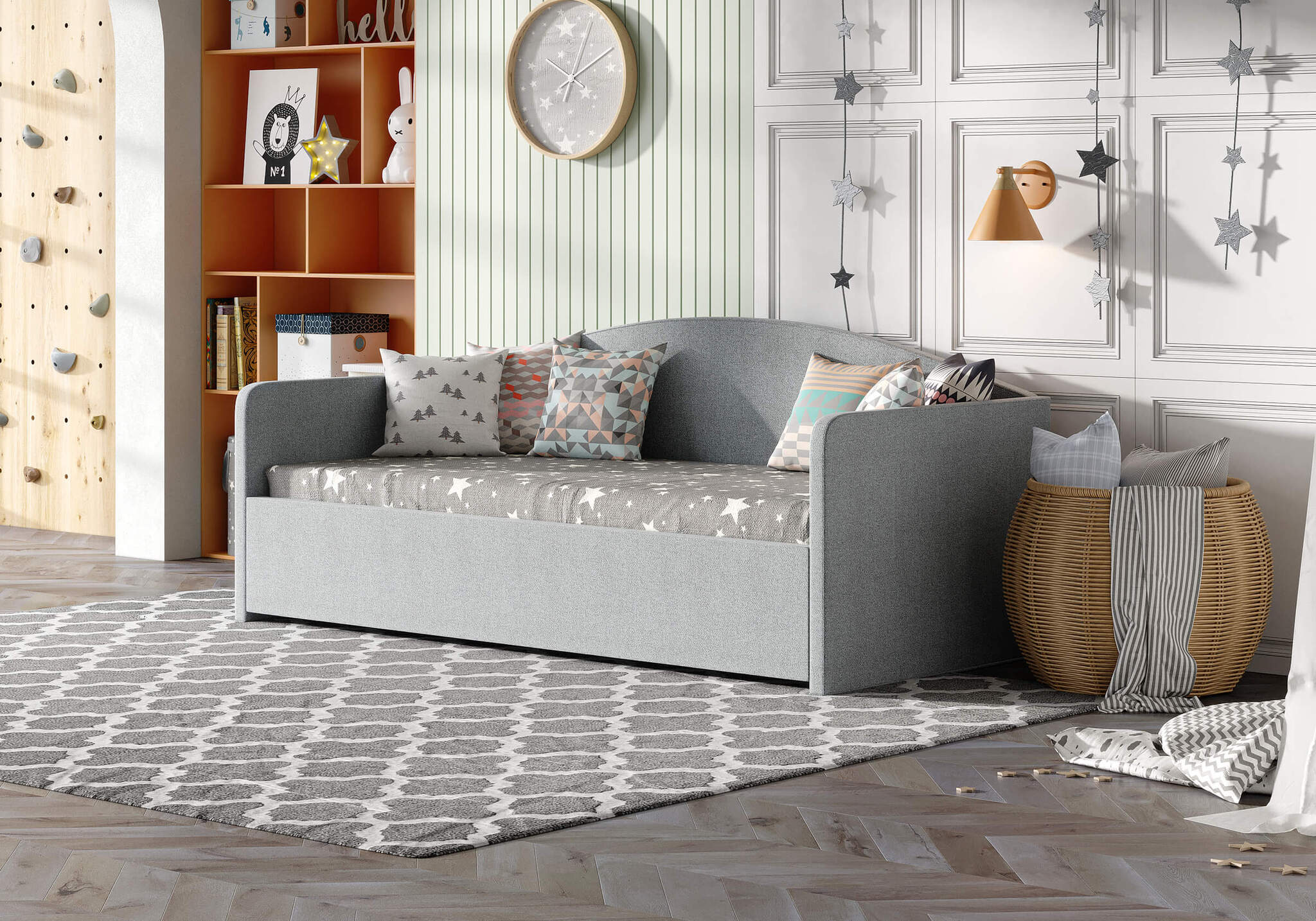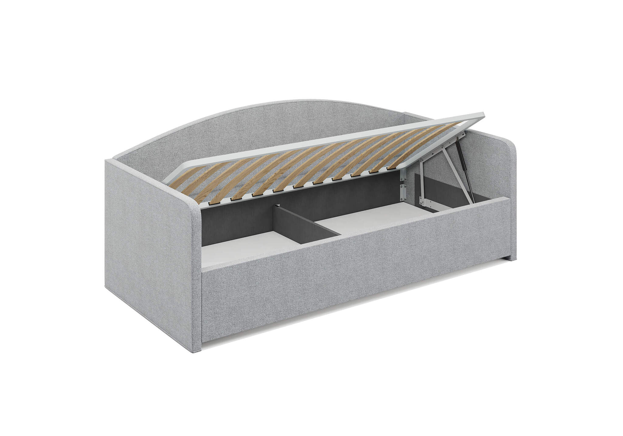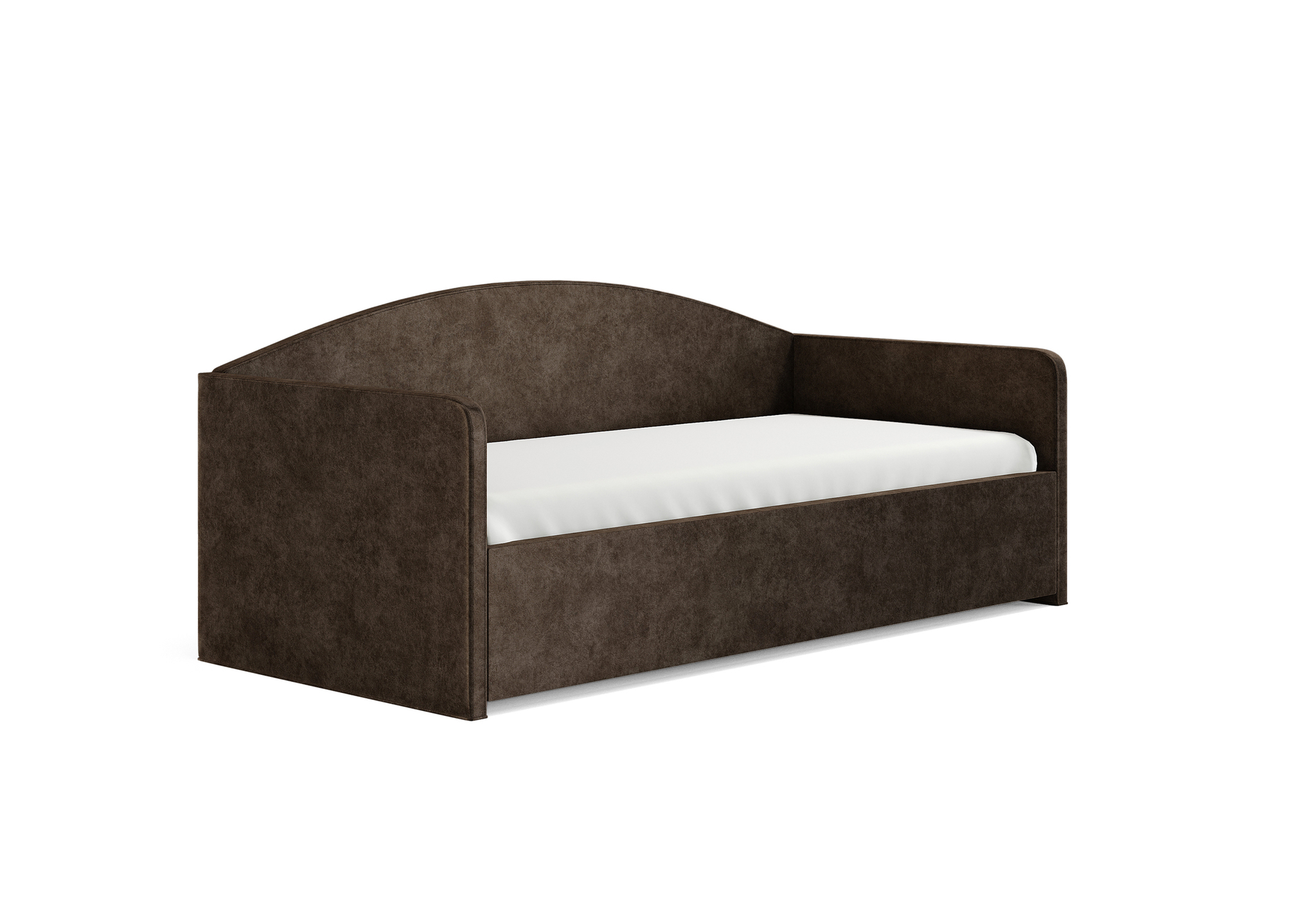 Недорогая односпальная кровать для ребенка или подростка. Модель изготовлена из ДСП. При необходимости кровать может быть укомплектована разборным или неразборным металлическим основанием с ламелями, подъемным механизмом с бельевым ящиком.